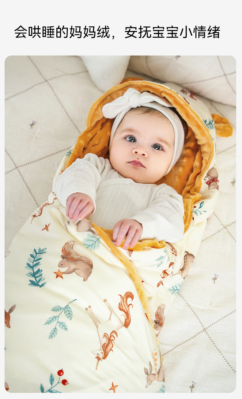 【有味生活家专属】EMXEE嫚熙豆豆绒包被初生婴儿秋冬新生婴儿包被襁褓包单