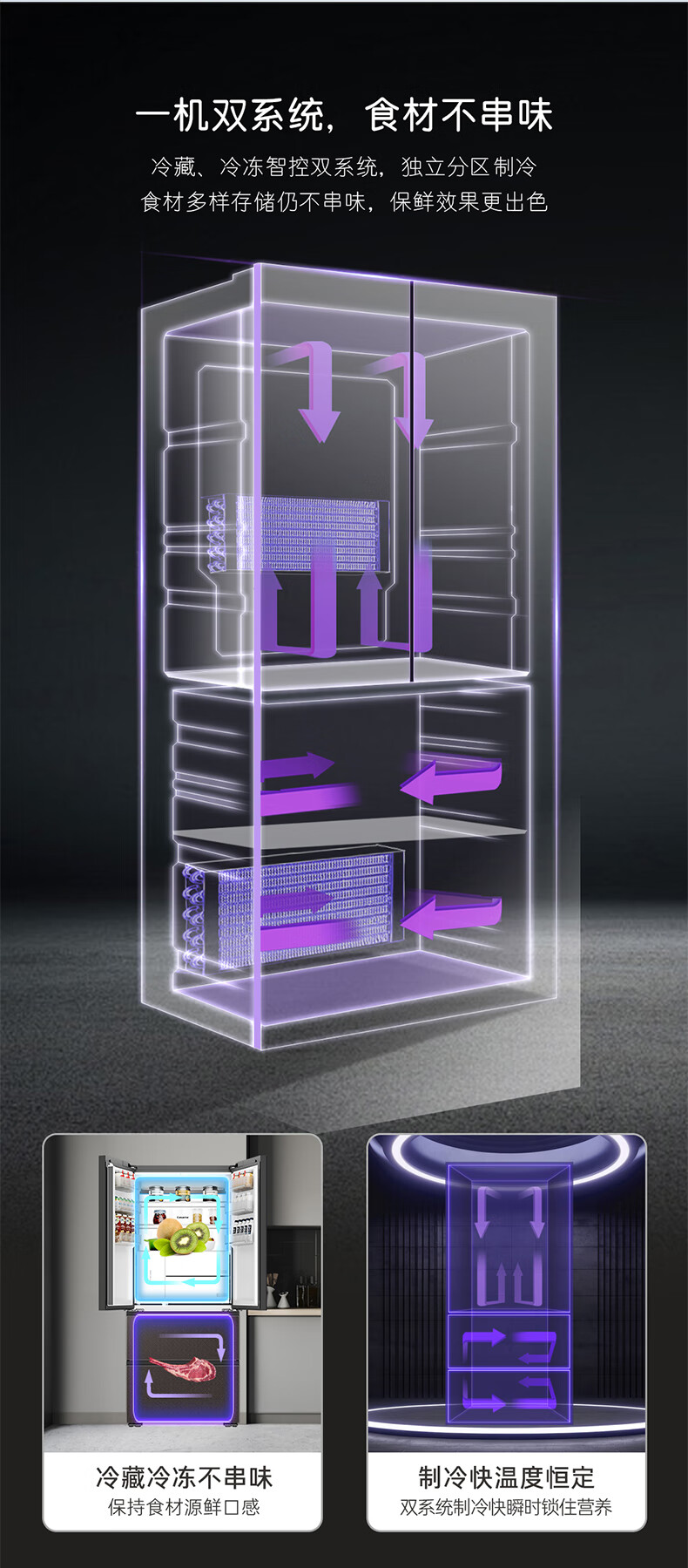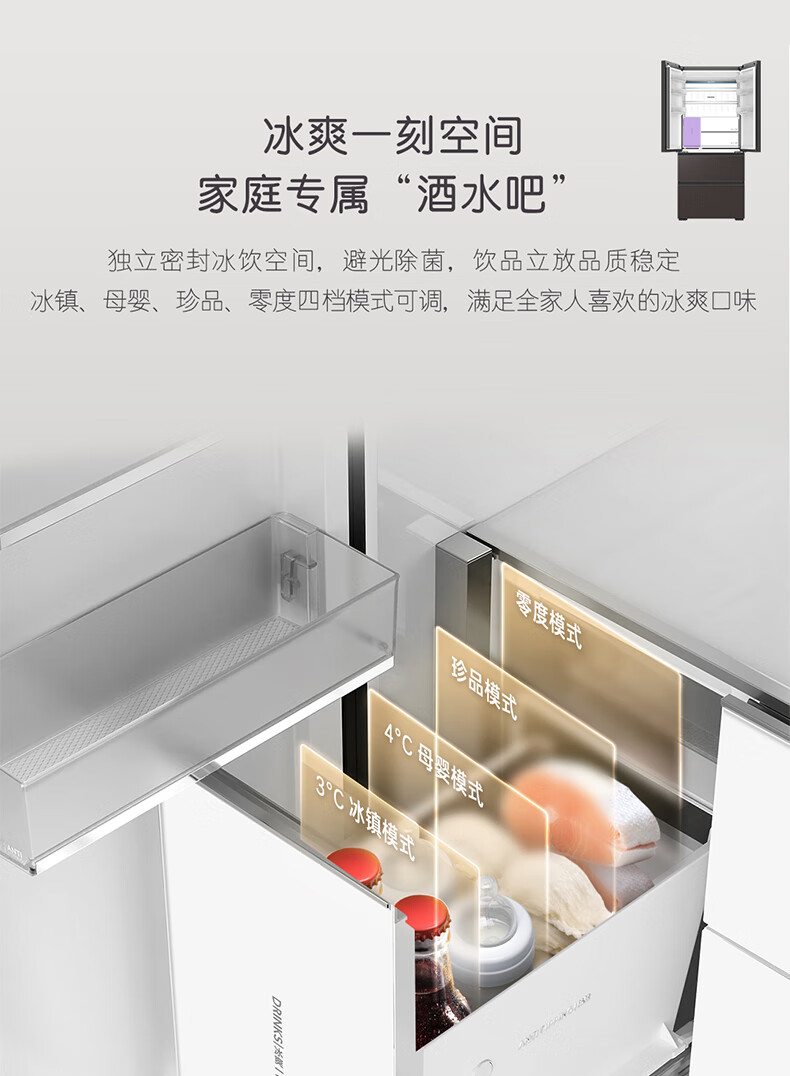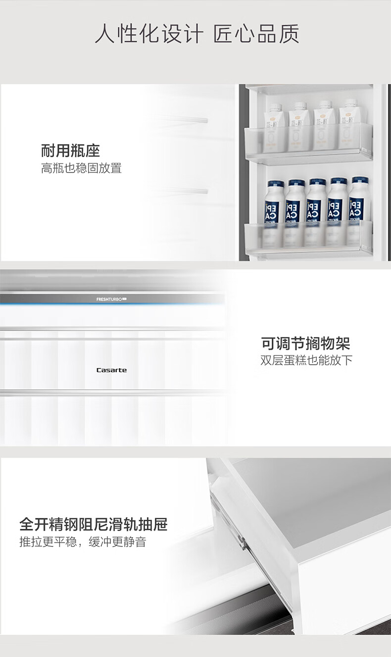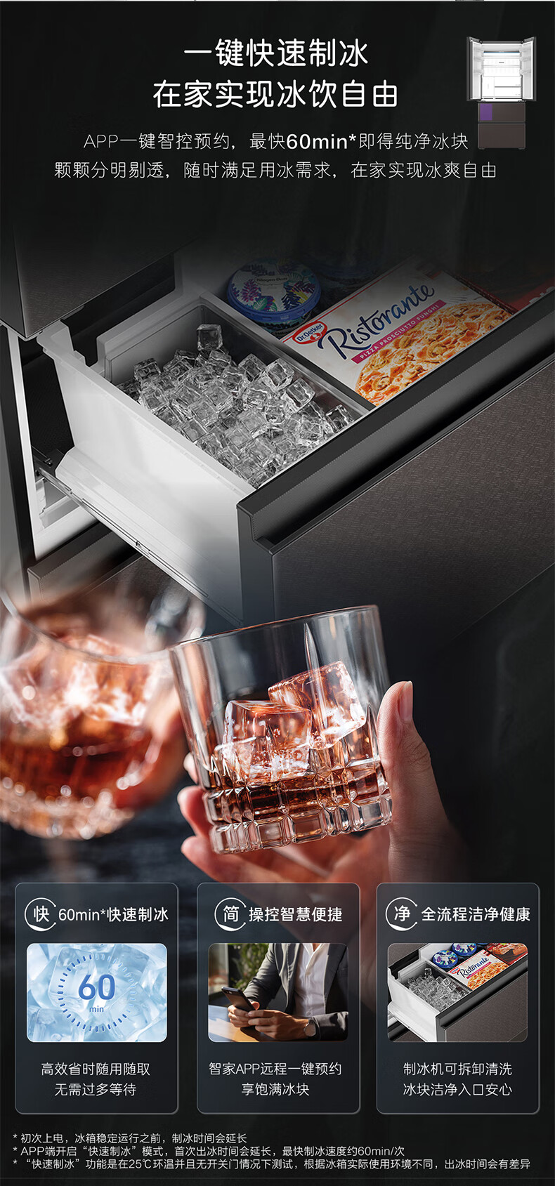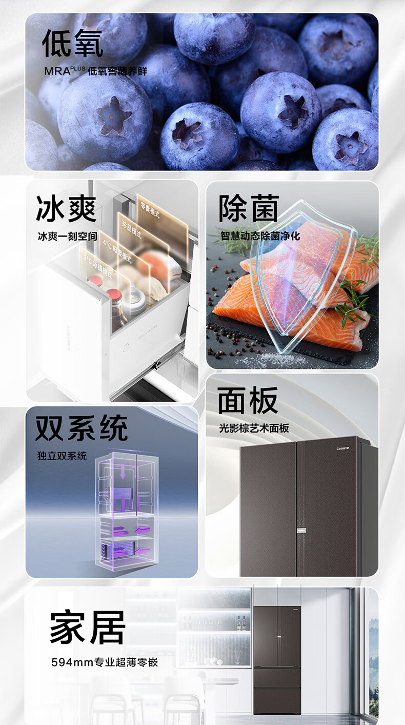 卡萨帝(Casarte)冰箱550升594mm全自动制冰超薄零嵌入式双系统法式多门一级能效冰箱 BCD-550WGCFDMGZHU1棕