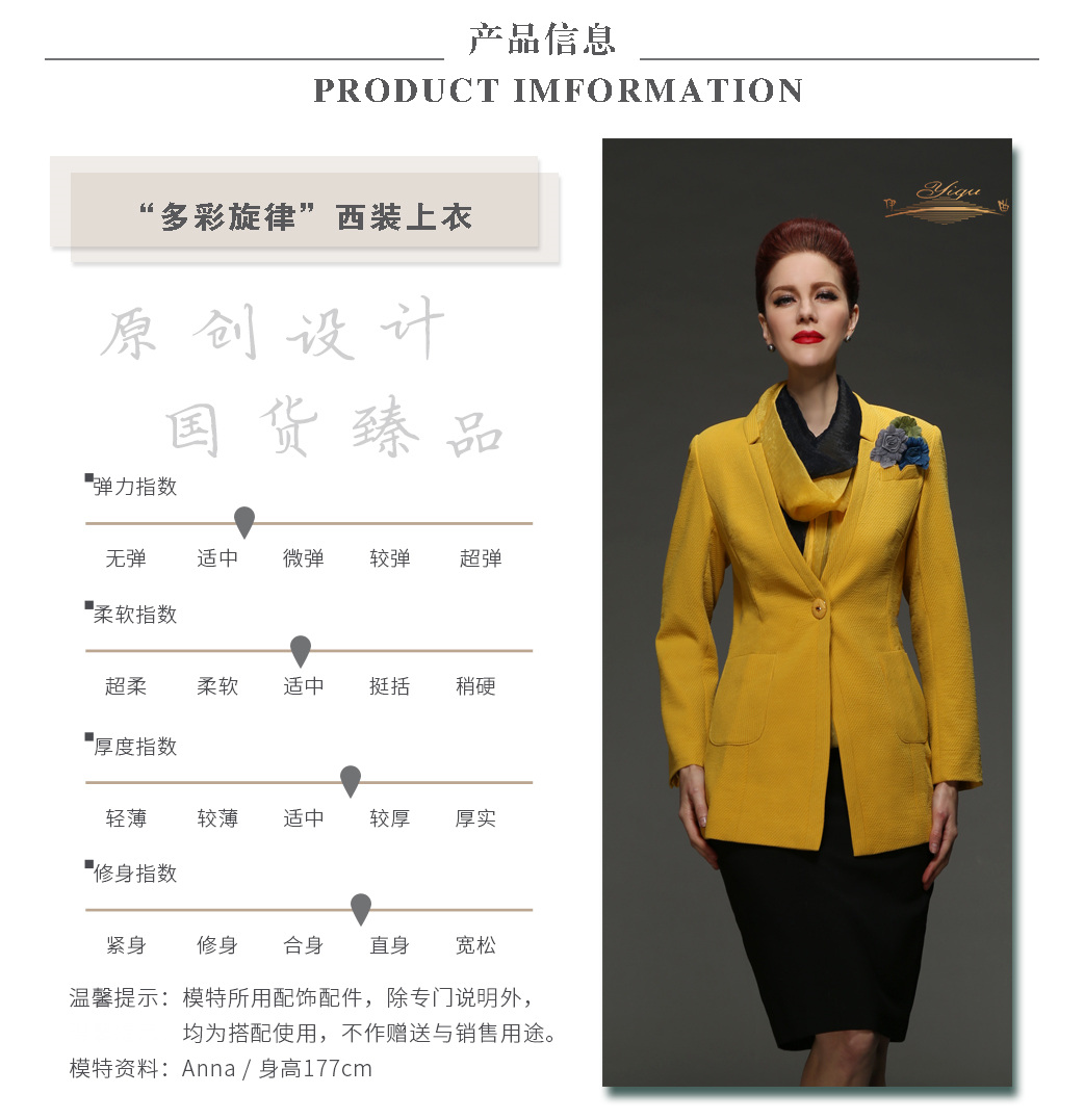 【特惠】YIQU |“多彩旋律”西装上衣(明黄)P