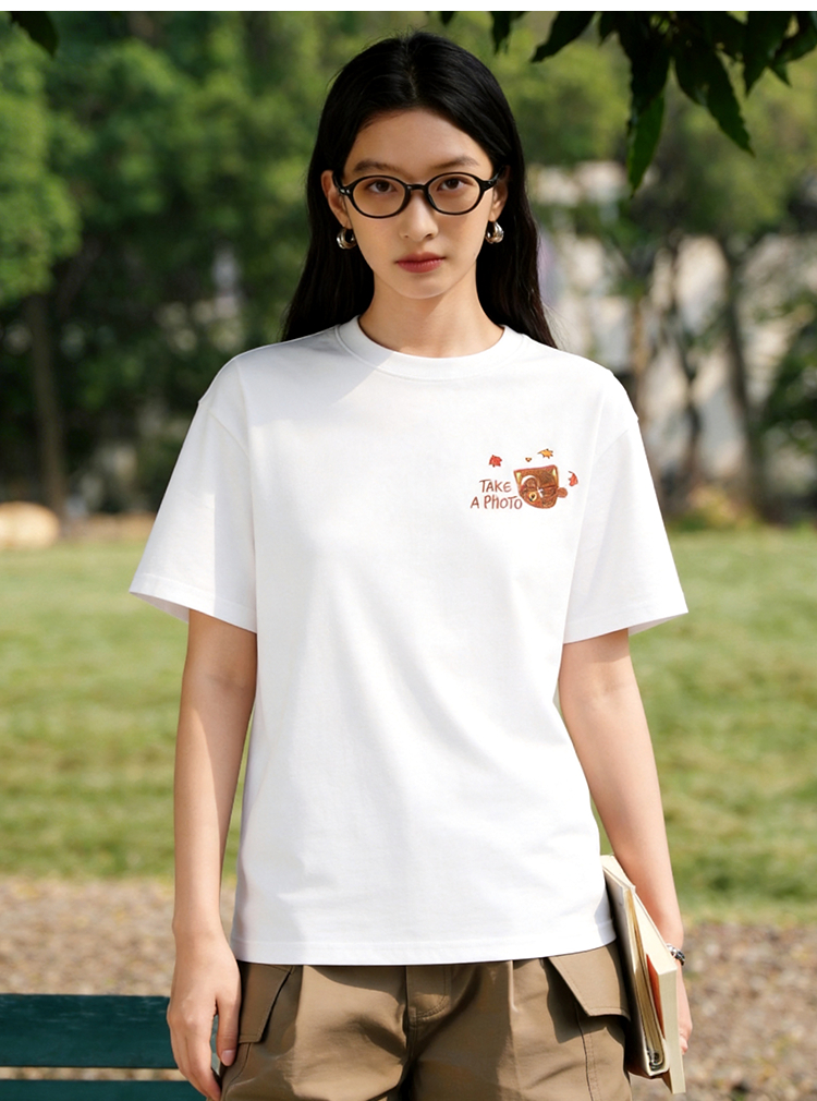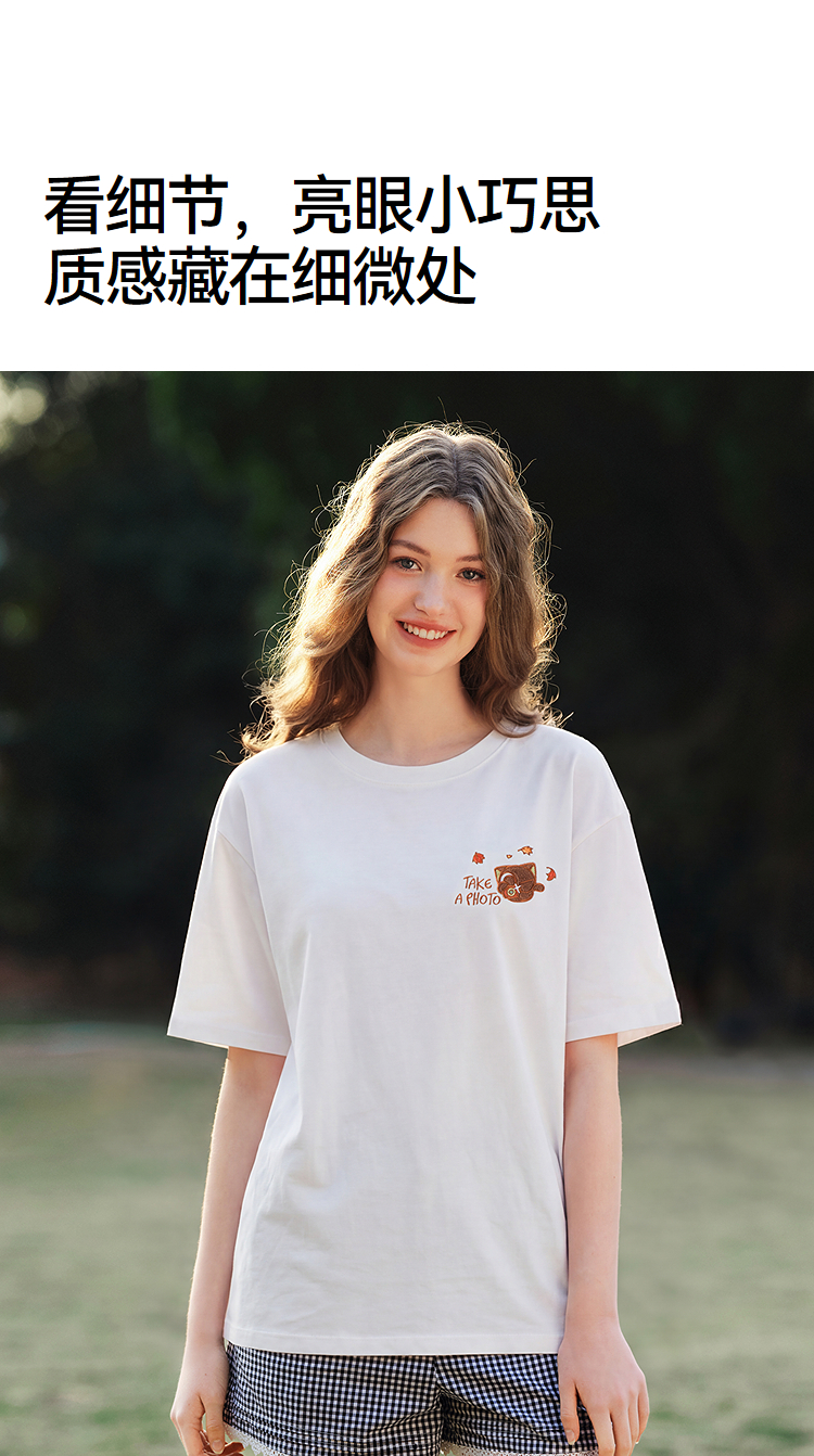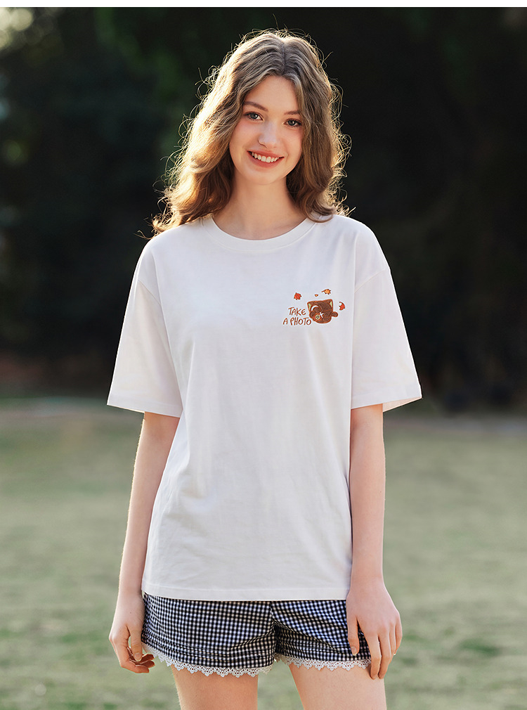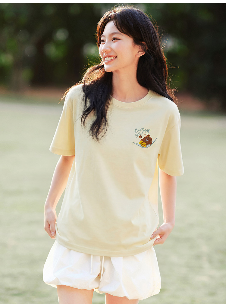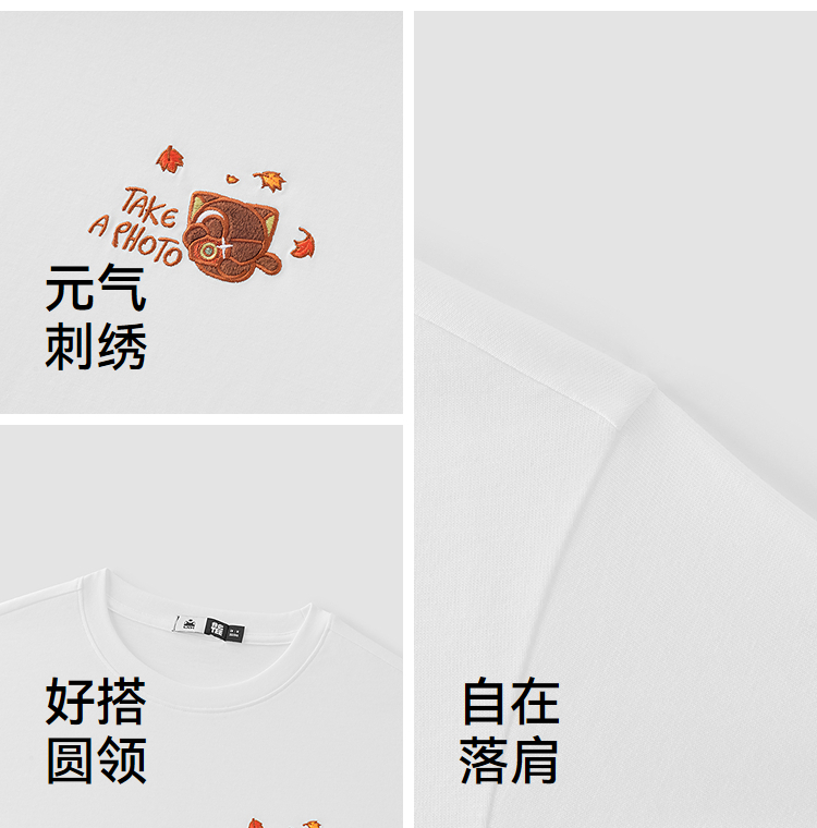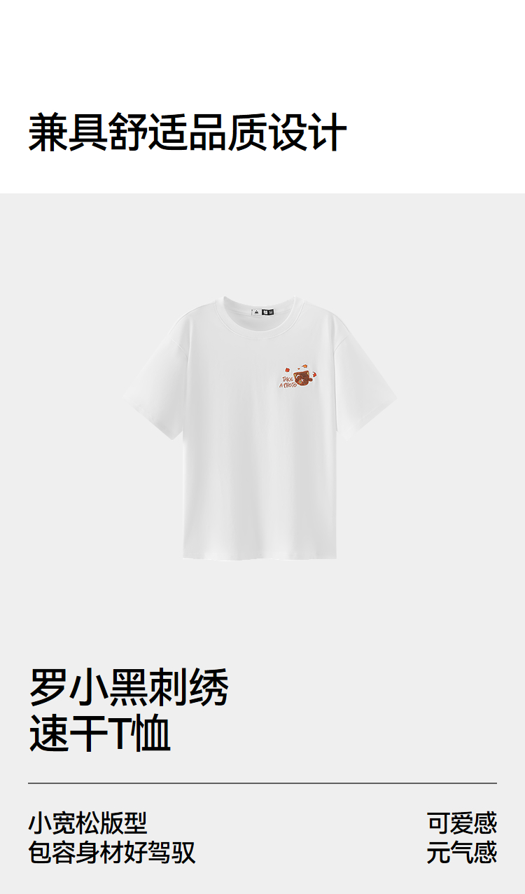 森马罗小黑短袖T恤女夏季吸湿速干卡通刺绣落肩2026新款可爱上衣