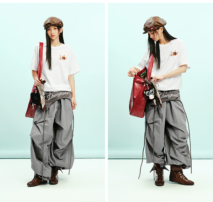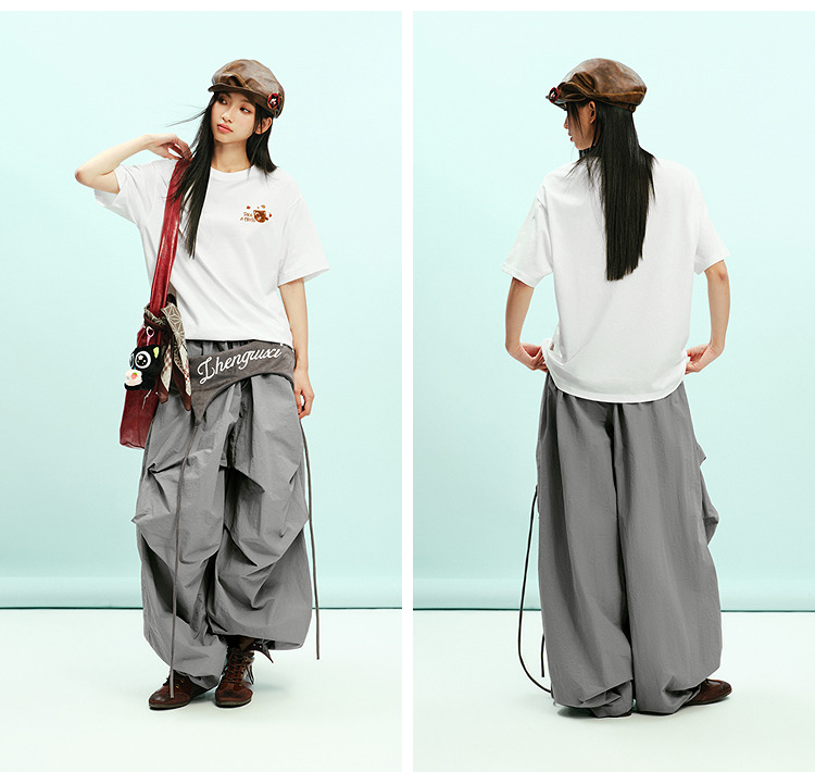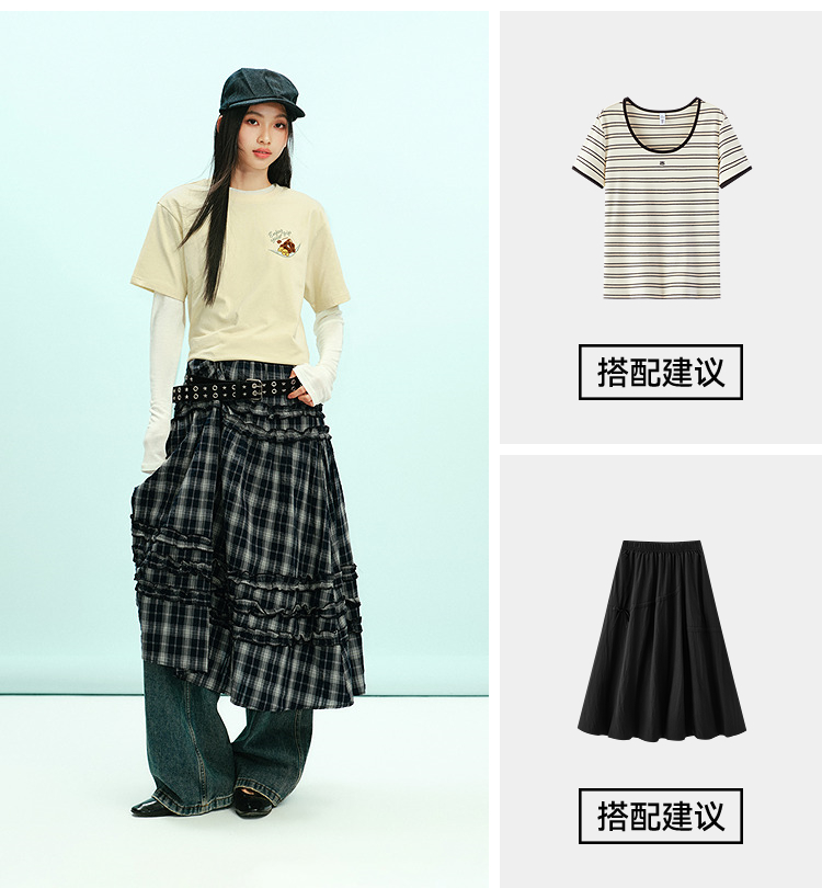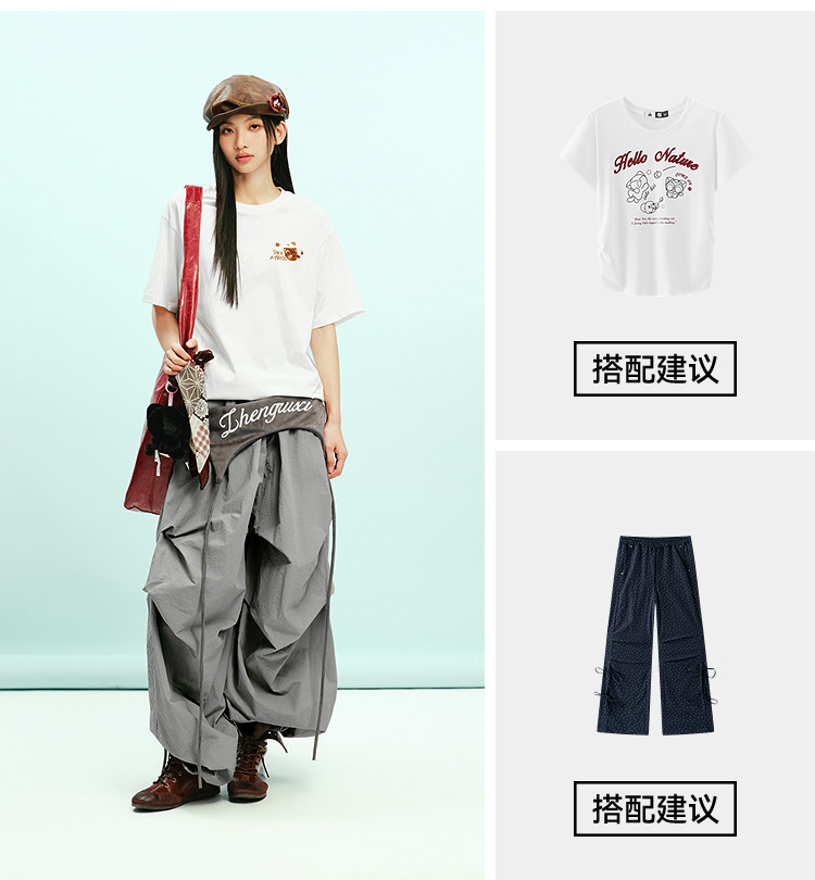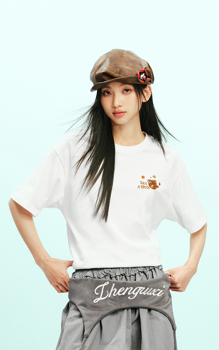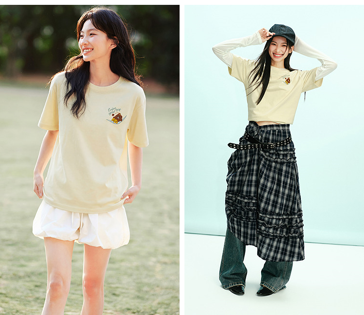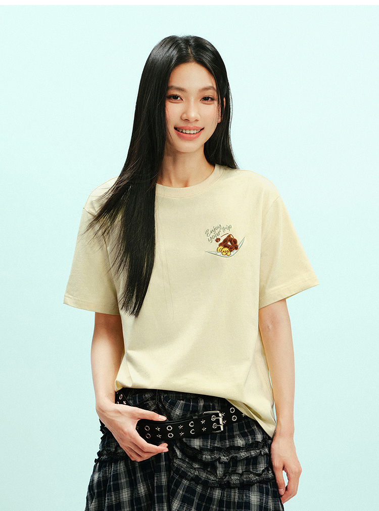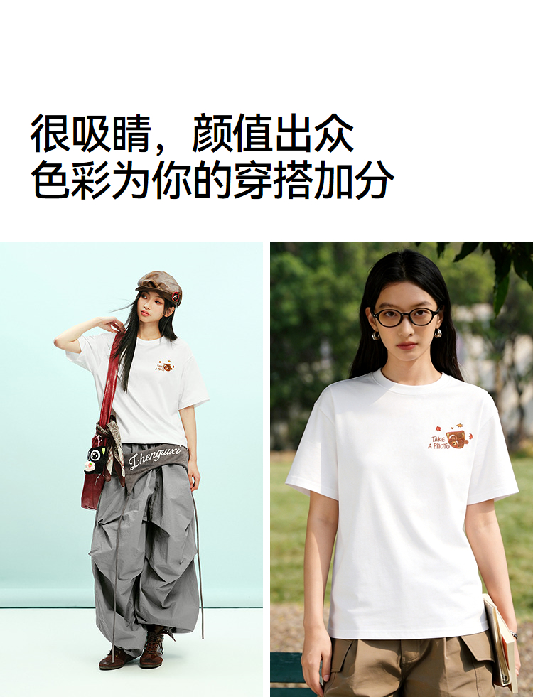 森马罗小黑短袖T恤女夏季吸湿速干卡通刺绣落肩2026新款可爱上衣
