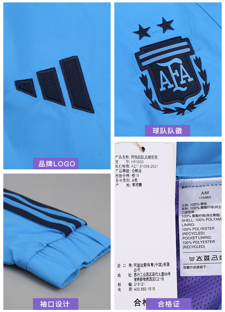 ADIDAS/阿迪达斯AFA PRE JKT阿根廷队足球夹克HF3933