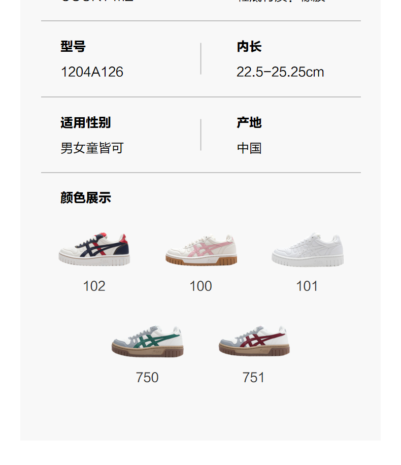 Asics/亚瑟士童鞋经典复古板鞋7-12岁中大童 36-40码