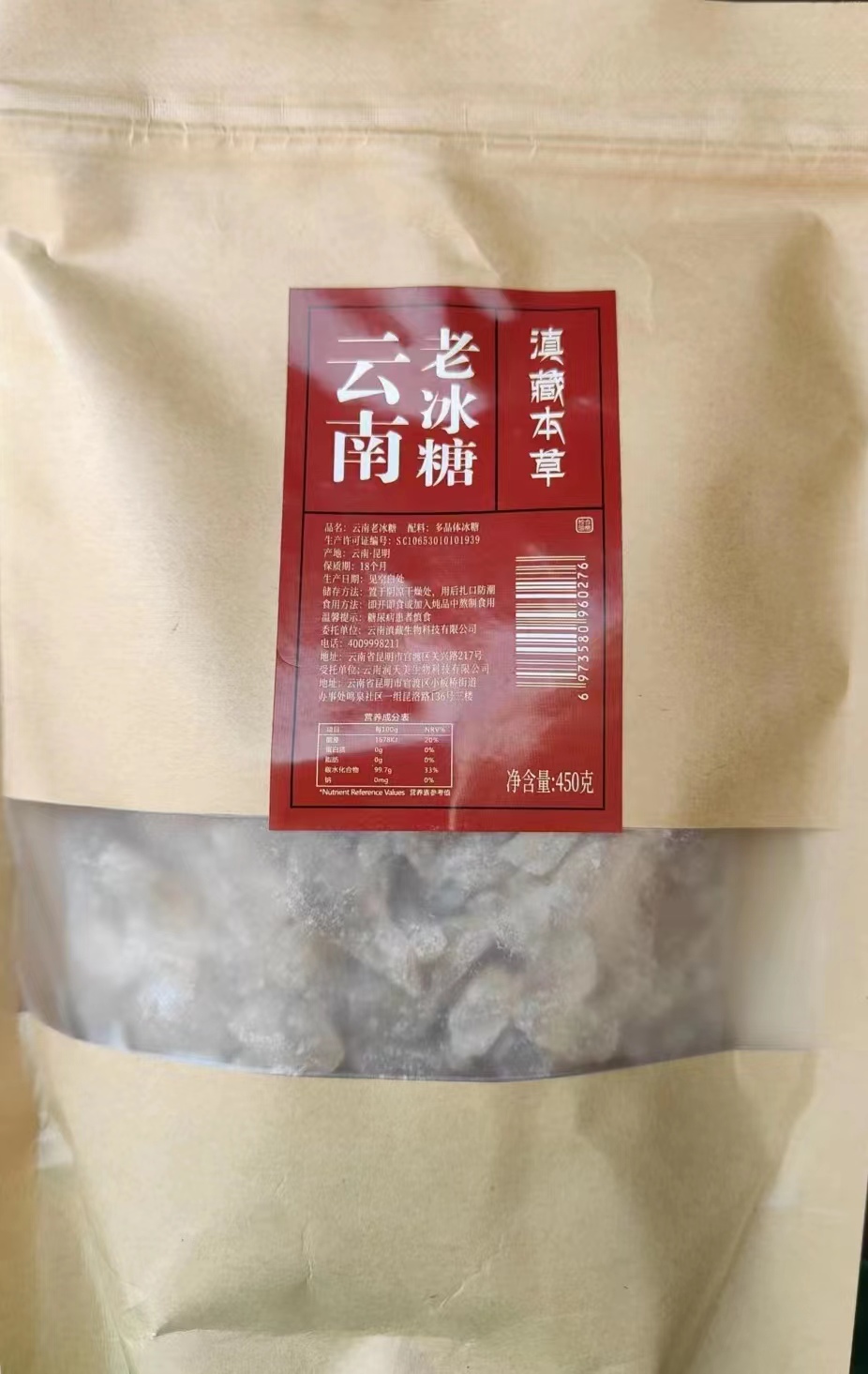 老冰糖由于容易吸水受潮,我们采用了密封袋包装,保持其质地干燥与空气中的水分隔离,平时放在阴凉干燥通风处,即可便于长期保存。