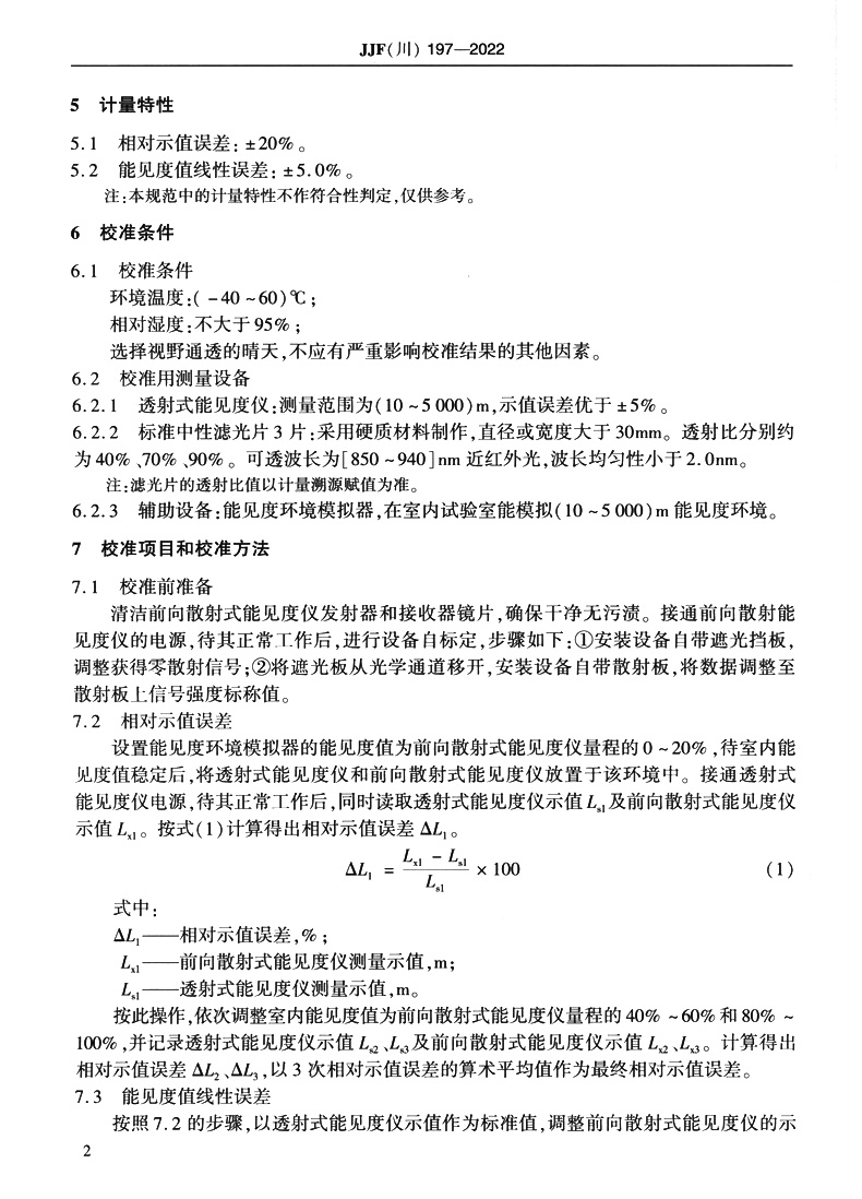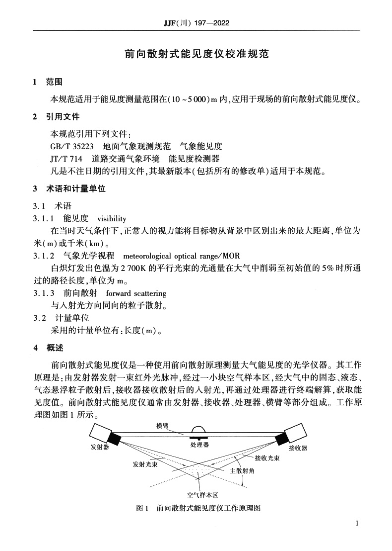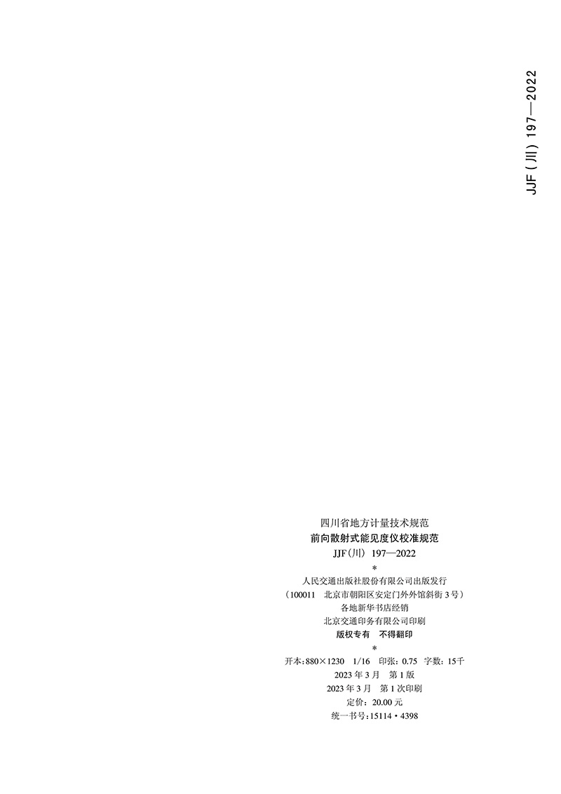 书名:前向散射式能见度仪校准规范 JJF(川) 197—2022