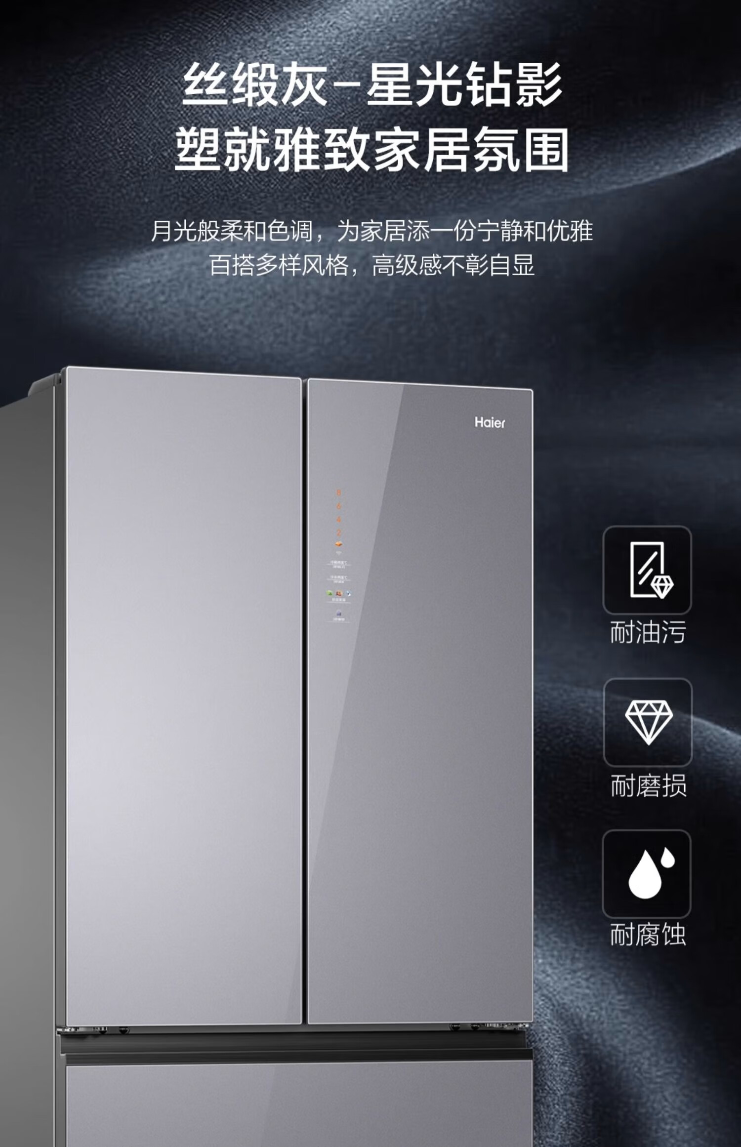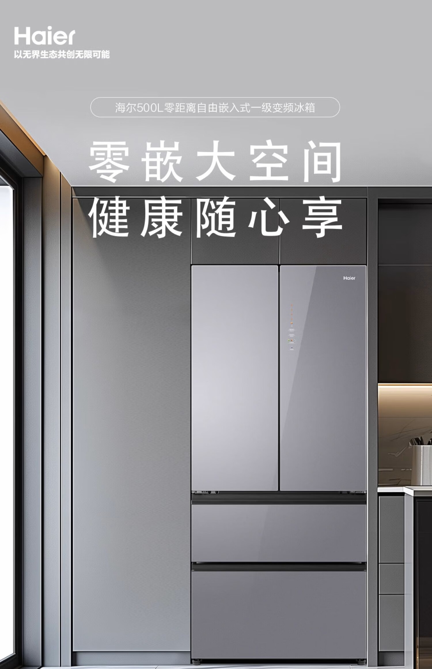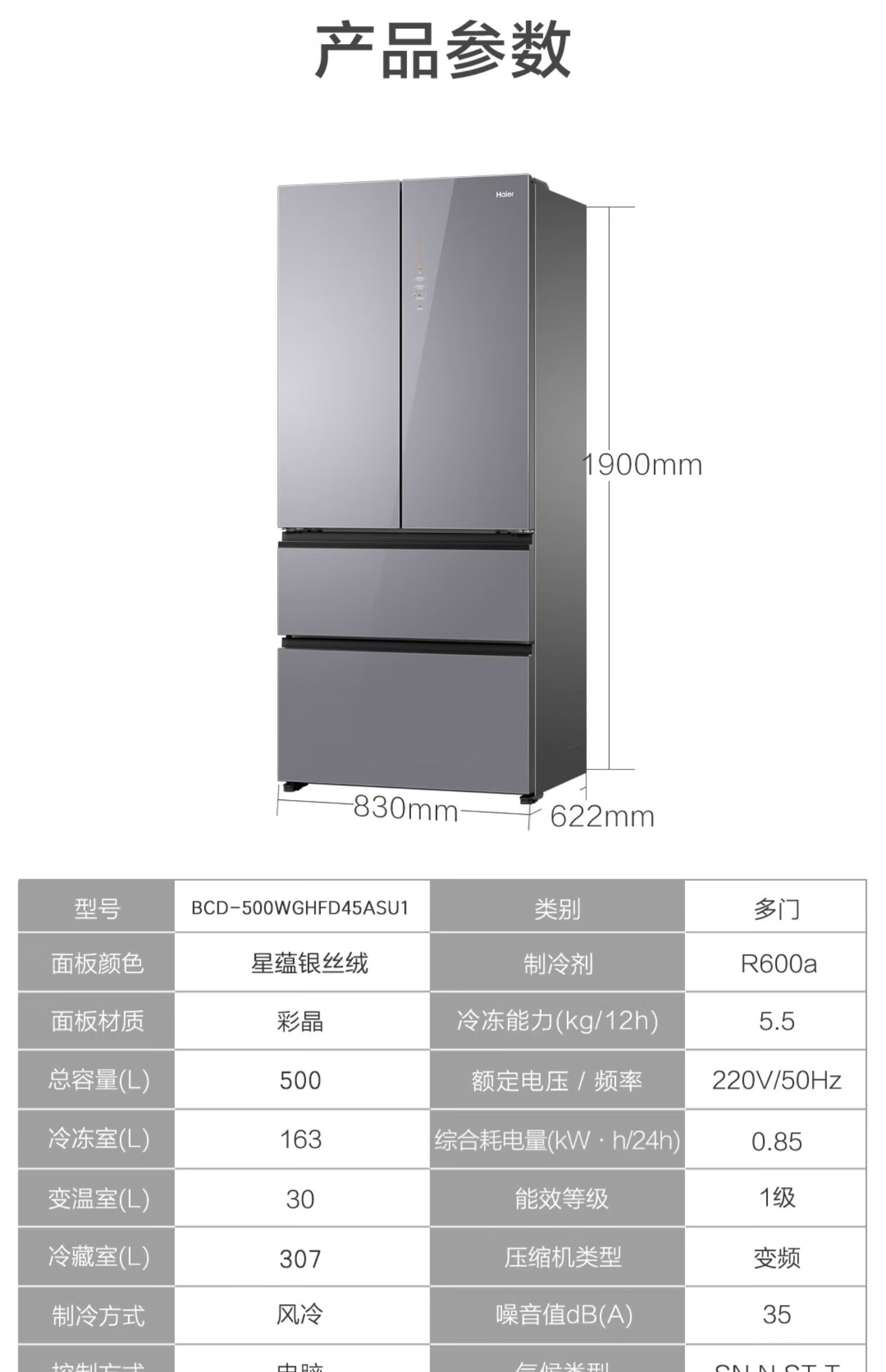 海尔(Haier)500L法式多门零距离自由嵌入黑金净化抗菌除异味一级双变频节能大容量冰箱BCD-500WGHFD45ASU1