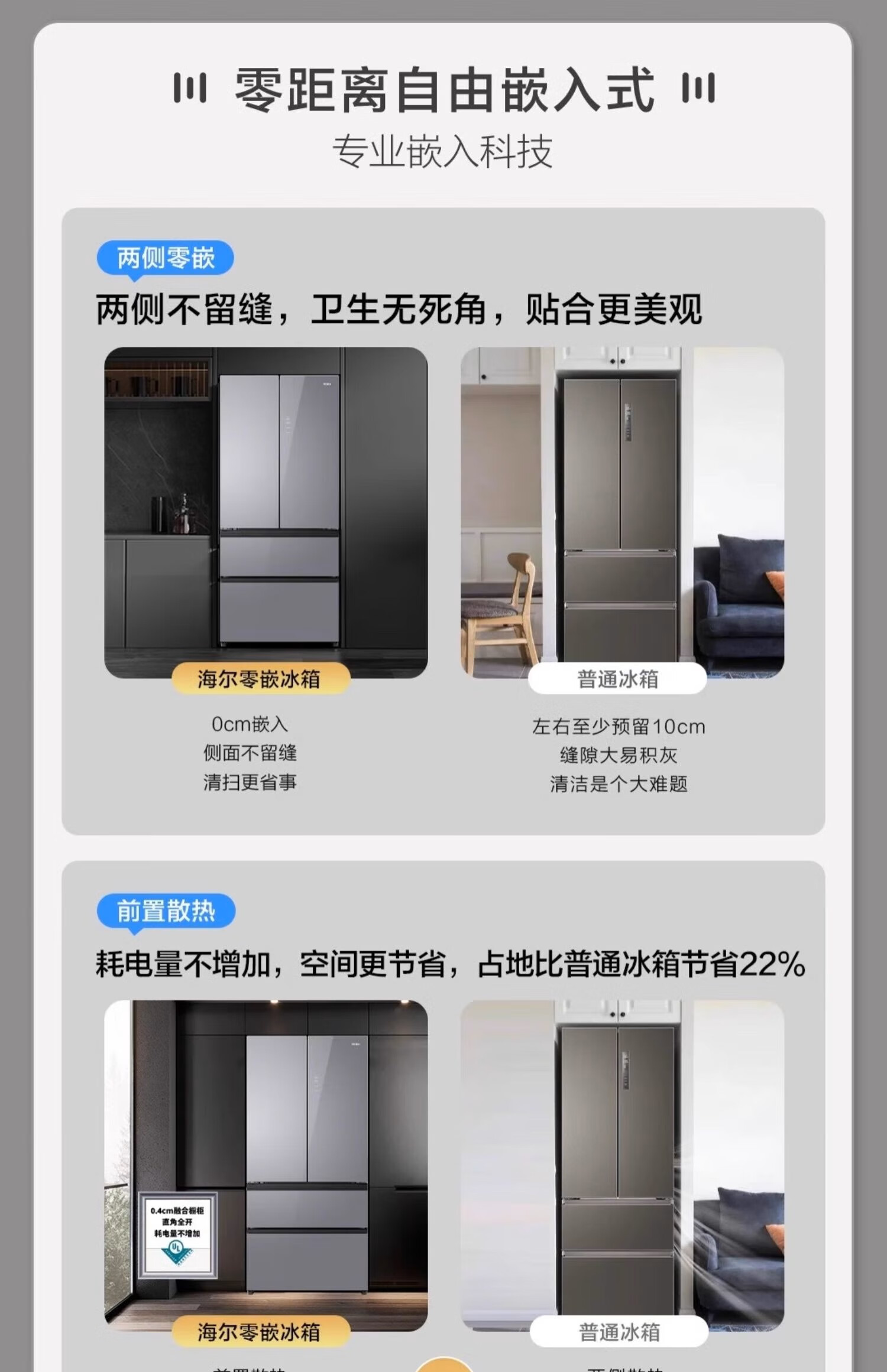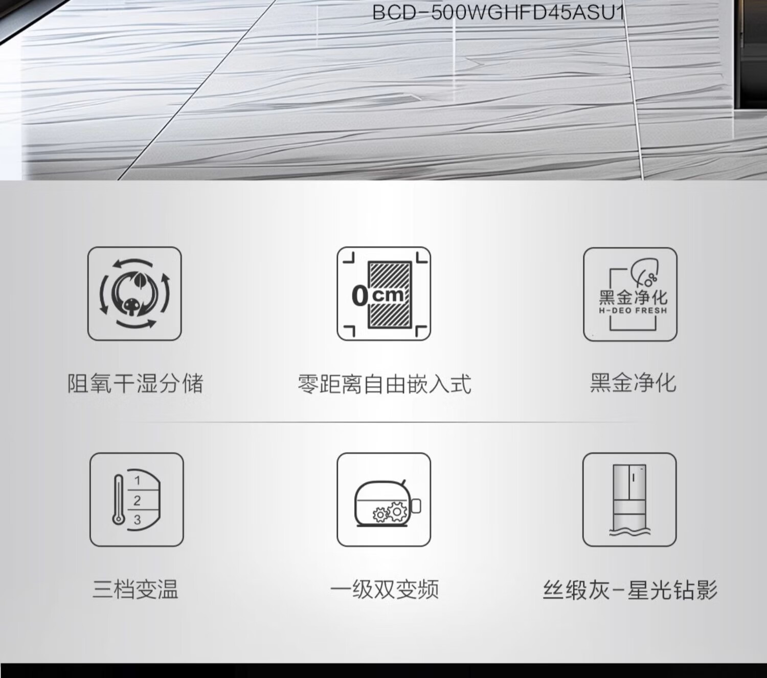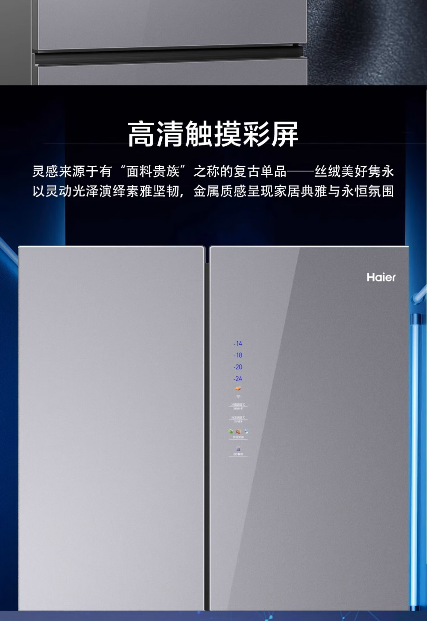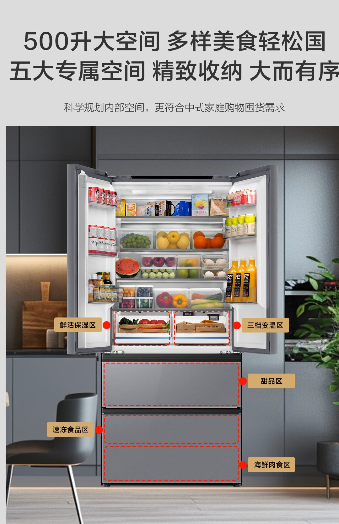 海尔(Haier)500L法式多门零距离自由嵌入黑金净化抗菌除异味一级双变频节能大容量冰箱BCD-500WGHFD45ASU1