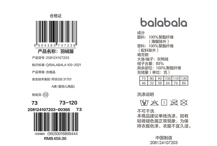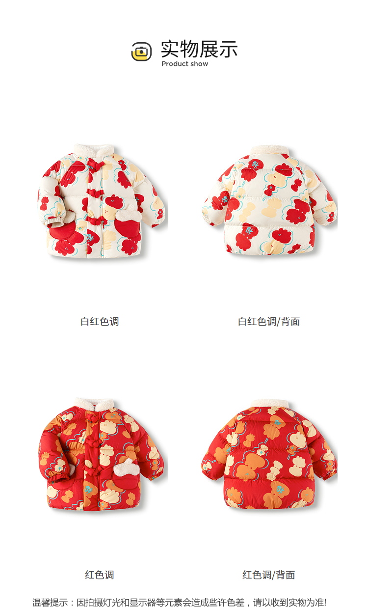 巴拉巴拉婴儿羽绒服男童秋冬童装女童短款外套新款保暖新年季