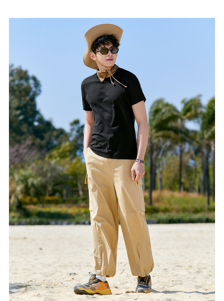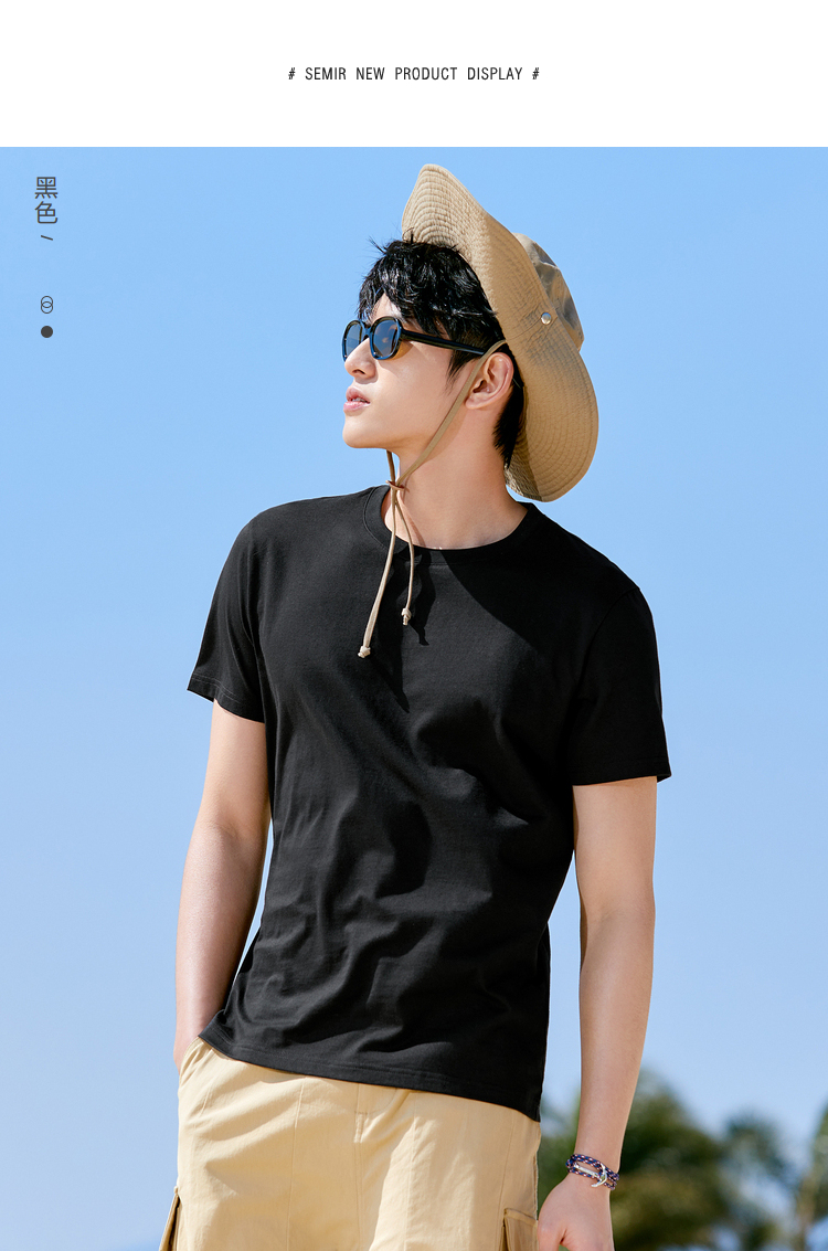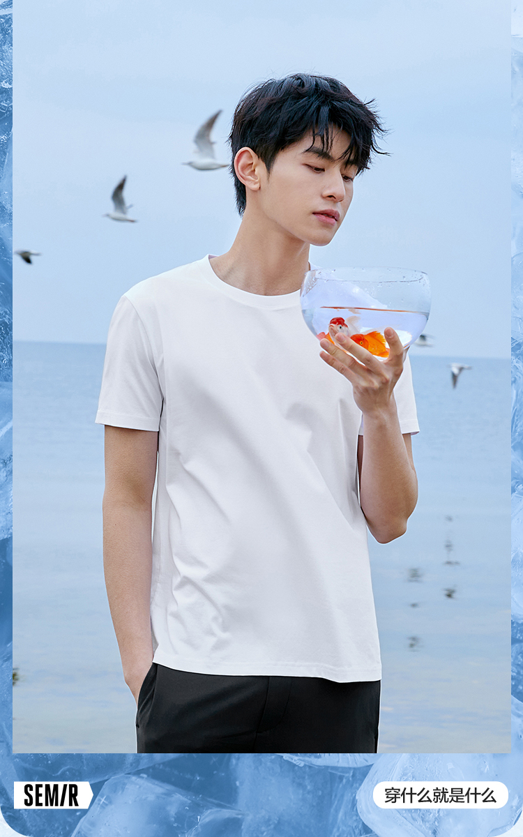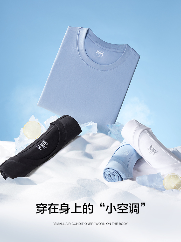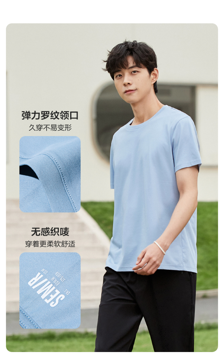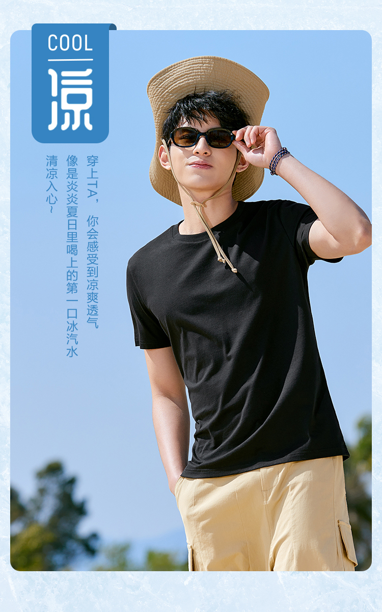 森马短袖T恤男凉感科技2022夏季新款纯色简约风弹力针织男士上装-TDS