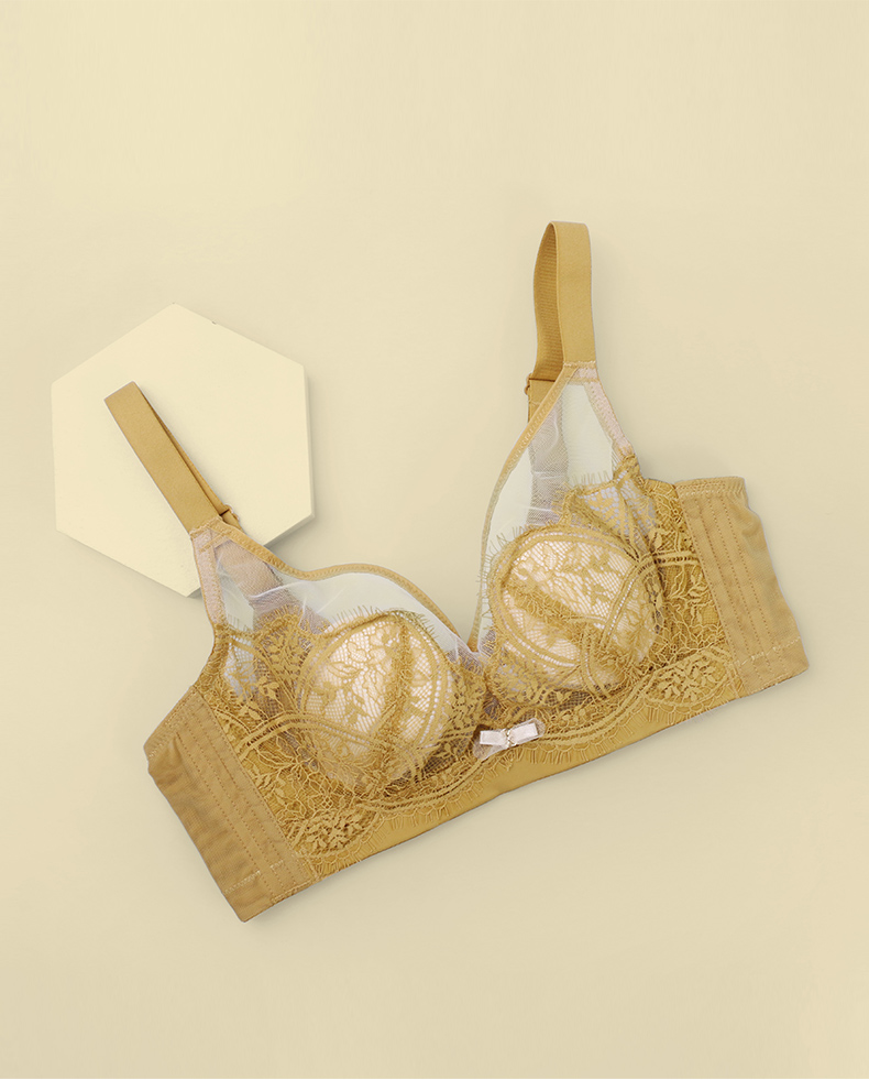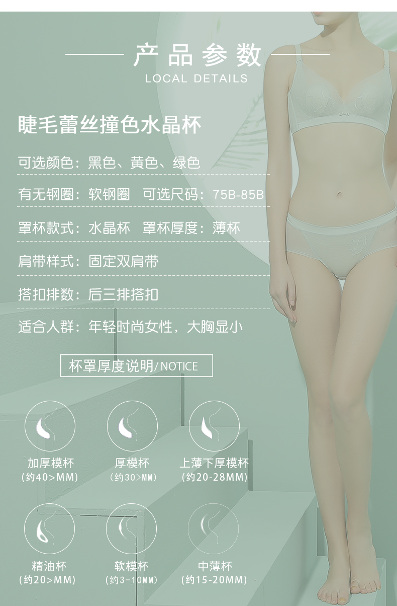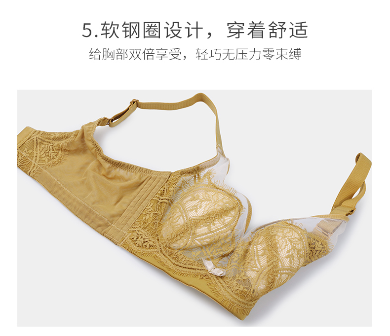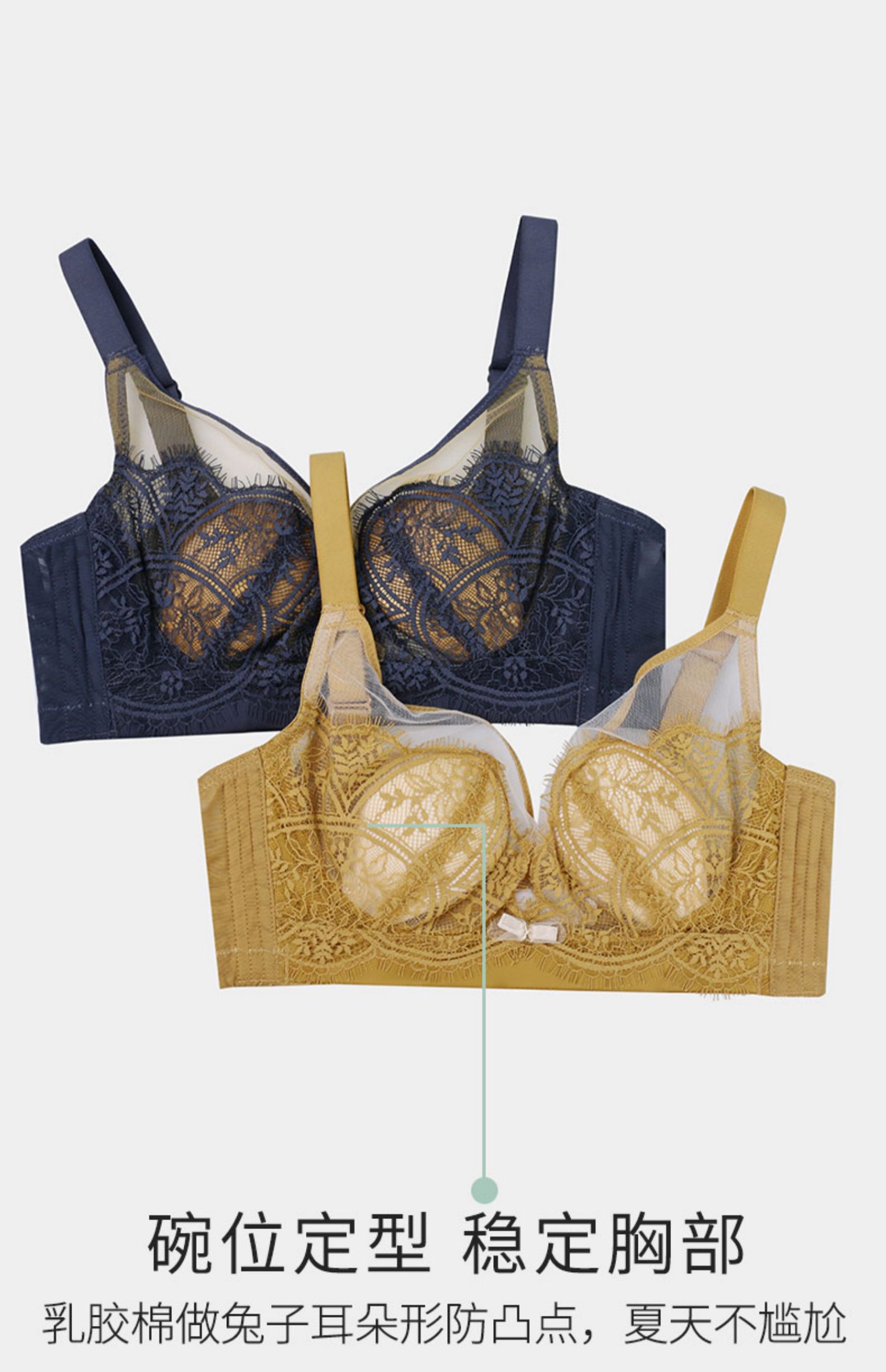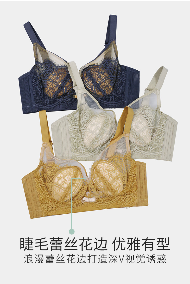 W151B10美季美优睫毛蕾丝撞色薄款大胸显小透气性感水晶杯