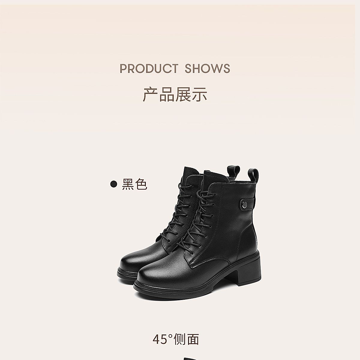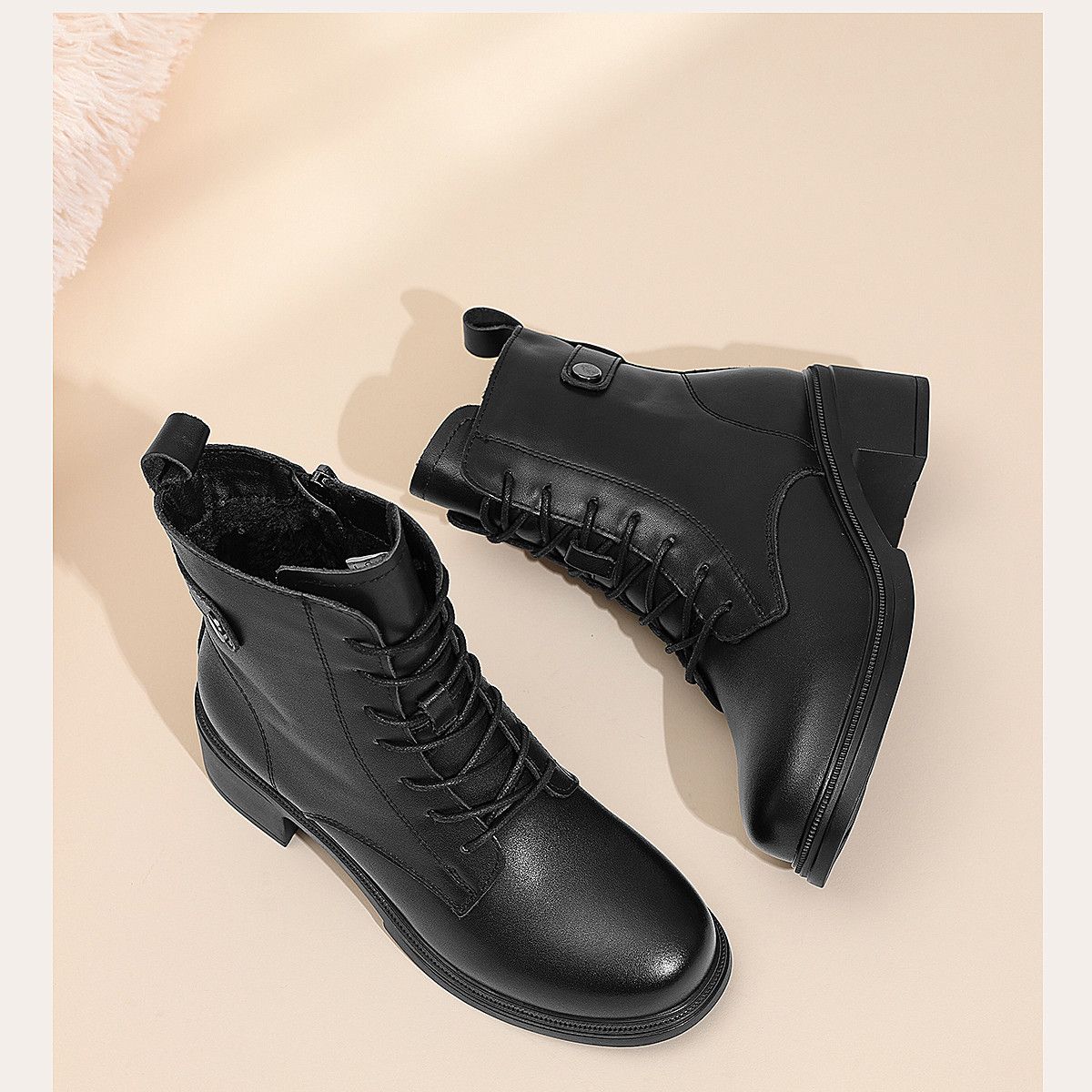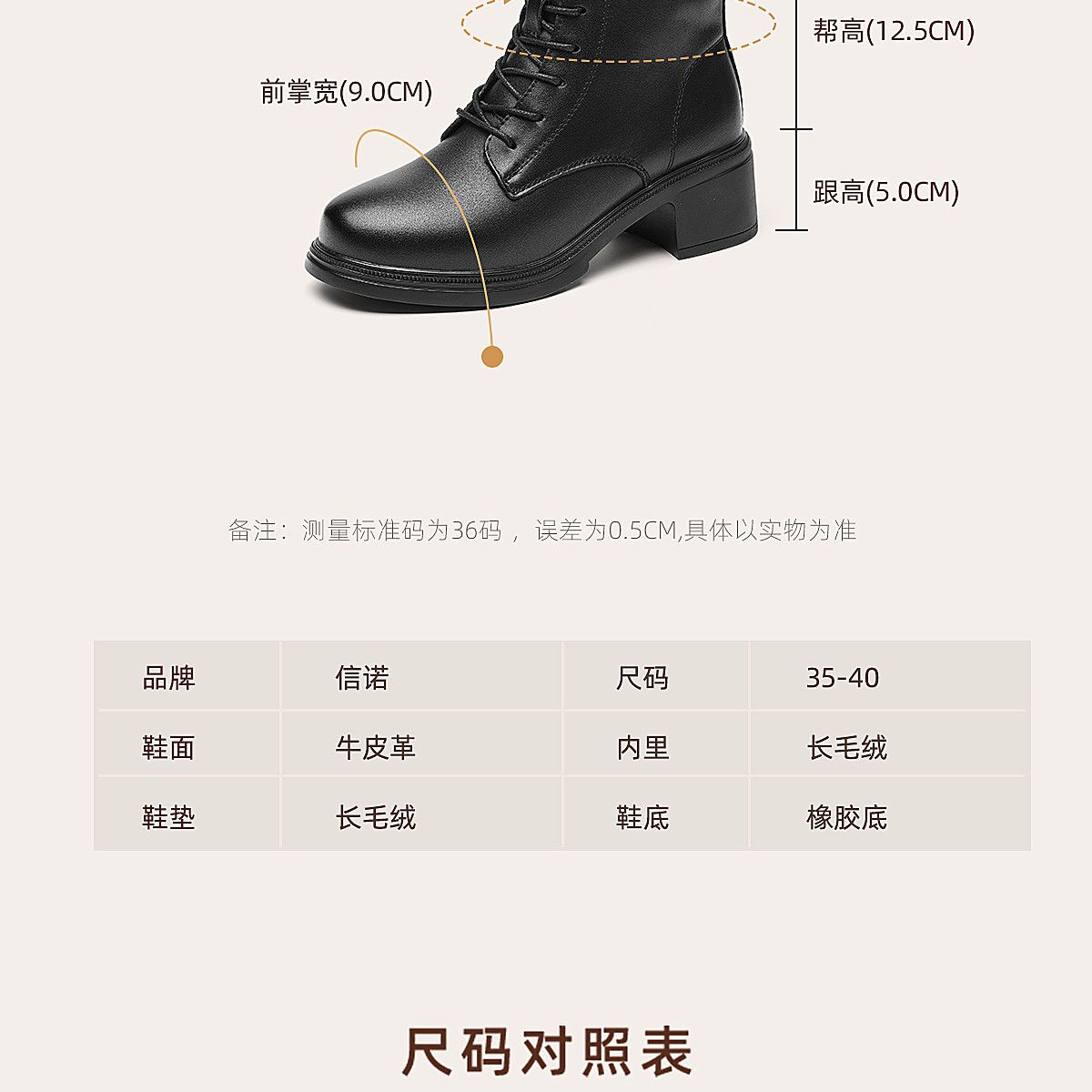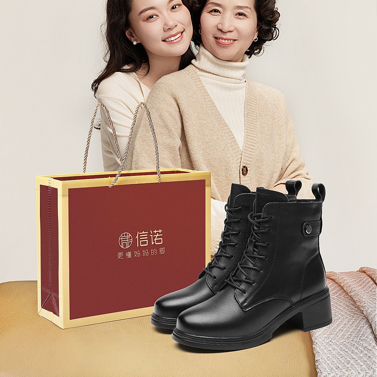 信诺妈妈鞋真皮软底舒适女鞋2025冬季新款加绒保暖棉鞋马丁靴短靴X5M124-205