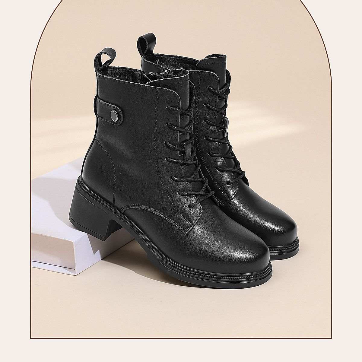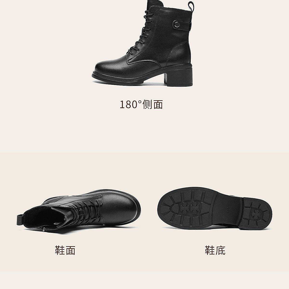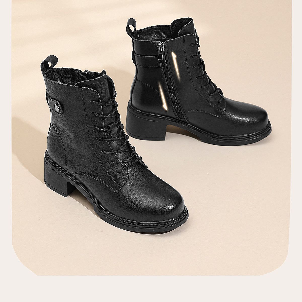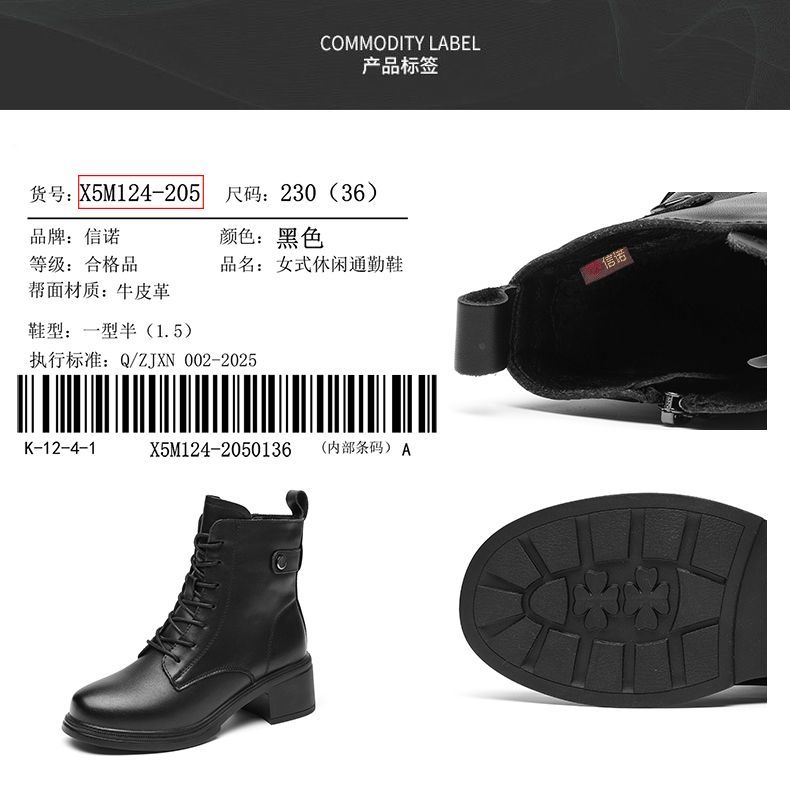 信诺妈妈鞋真皮软底舒适女鞋2025冬季新款加绒保暖棉鞋马丁靴短靴X5M124-205