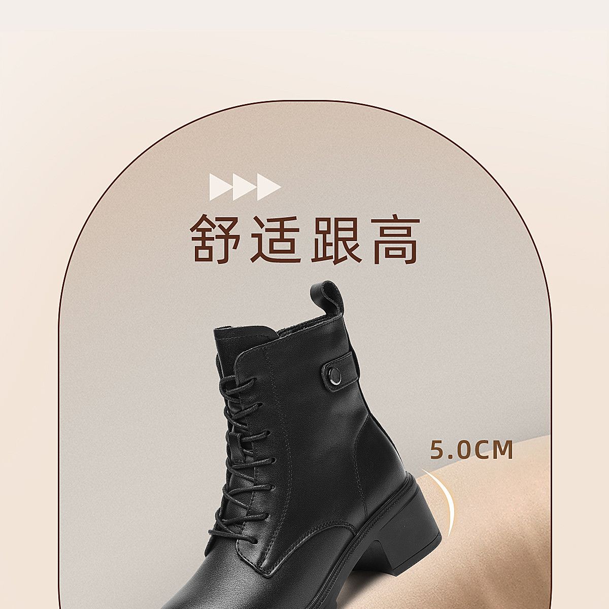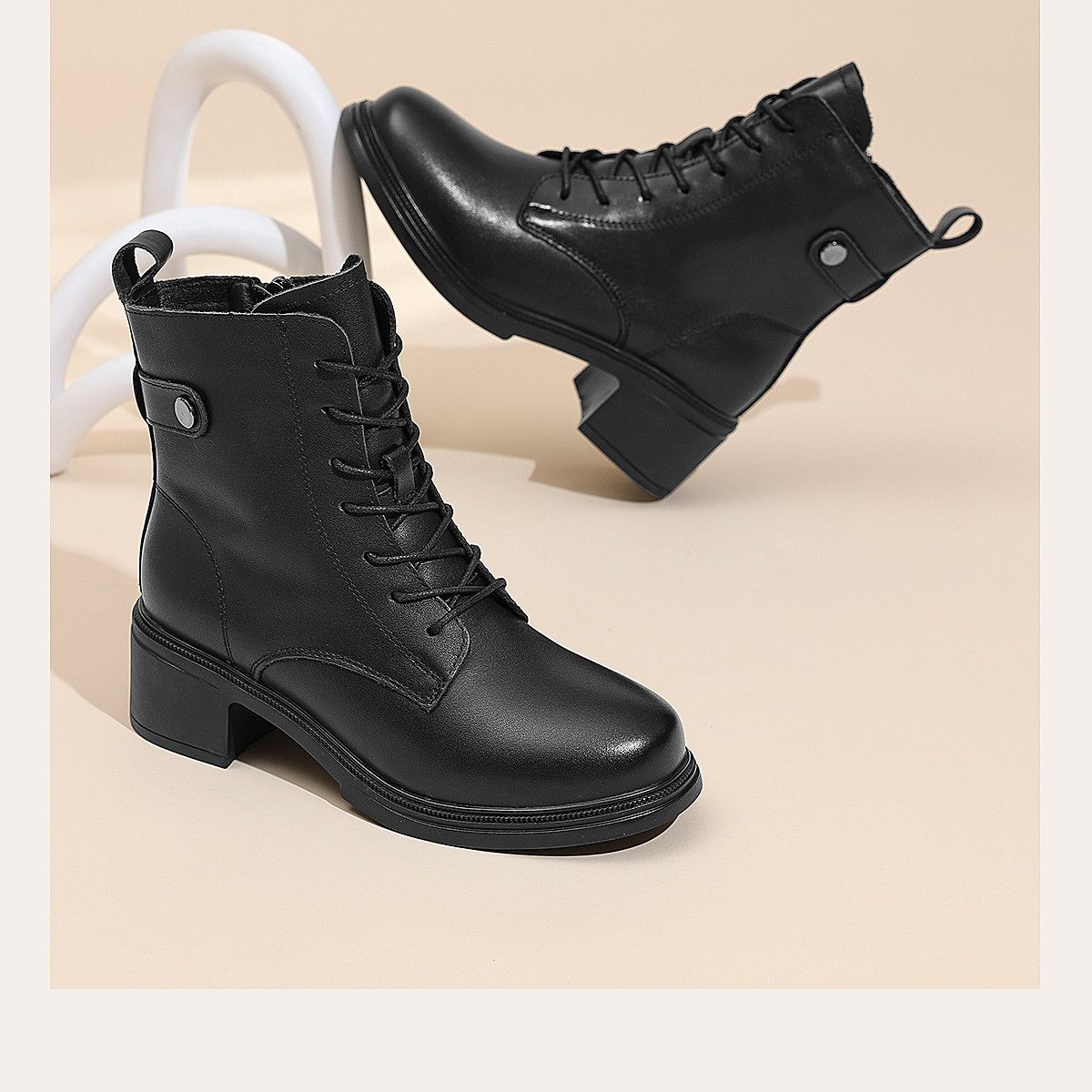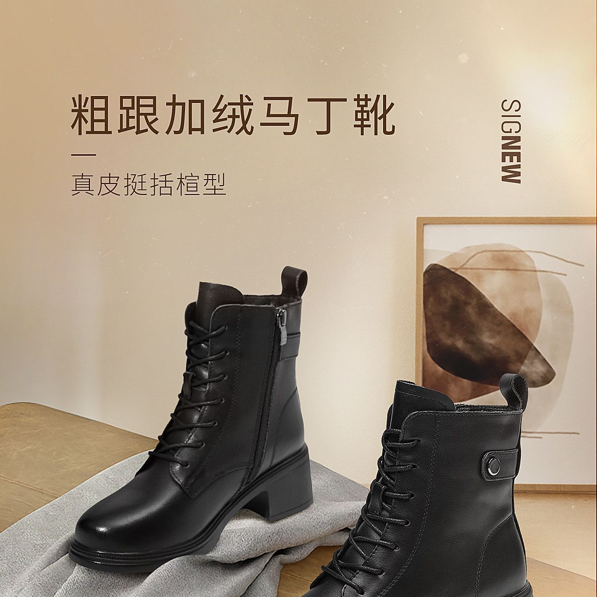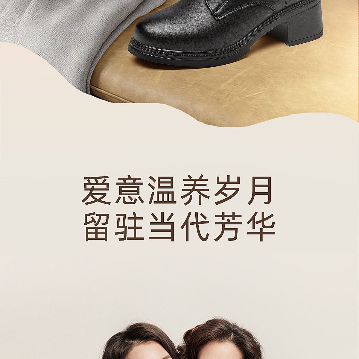 信诺妈妈鞋真皮软底舒适女鞋2025冬季新款加绒保暖棉鞋马丁靴短靴X5M124-205