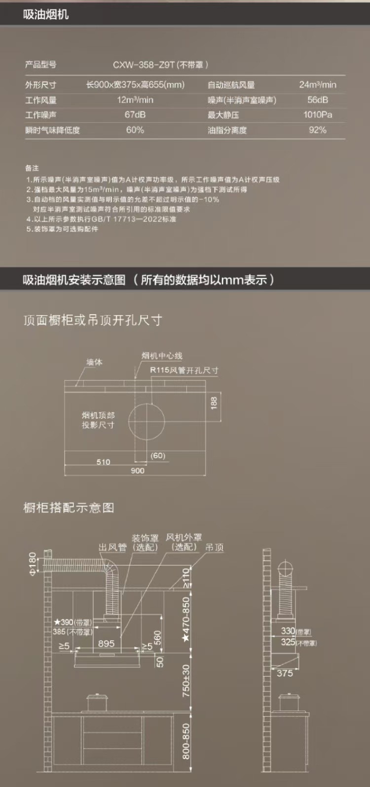方太油烟机 CXW-358-Z9T 顶侧(不带罩)