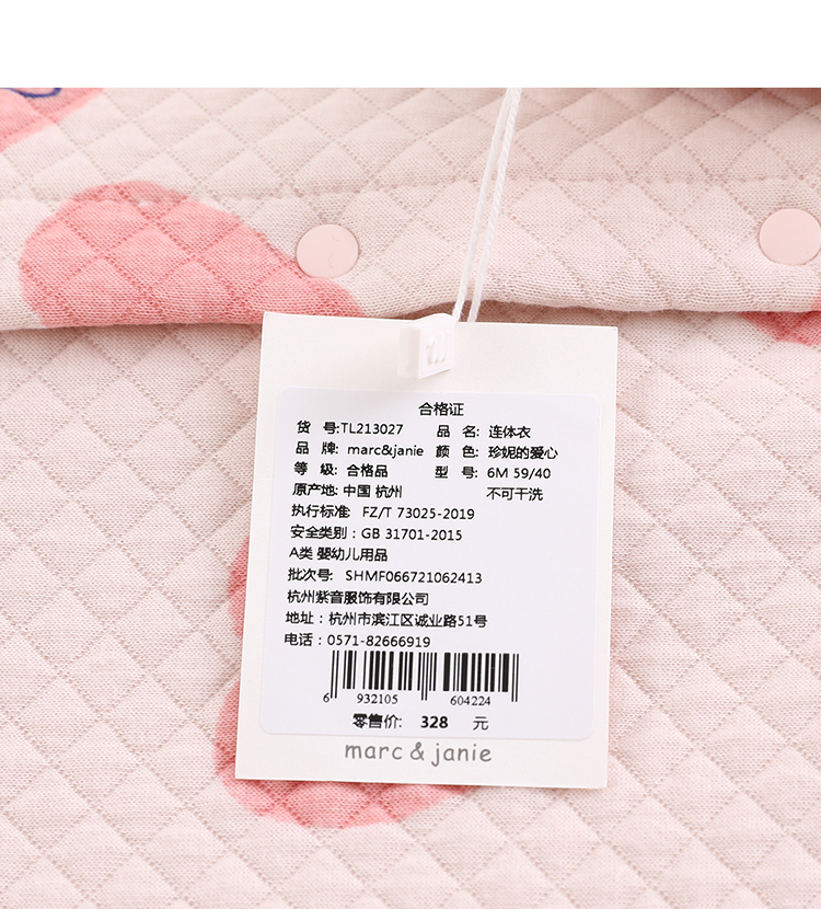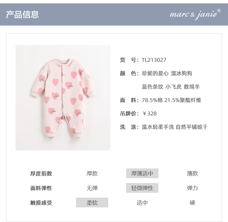 马克珍妮秋装 男女宝宝空气层连体衣 婴儿外出服213027