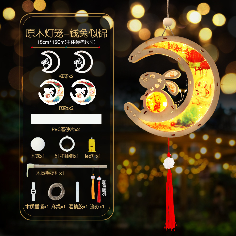 【39元/2手提木框原木花灯】木质中秋节兔子手提灯笼 儿童手工DIY灯笼材料包发光兔 古风汉服花灯