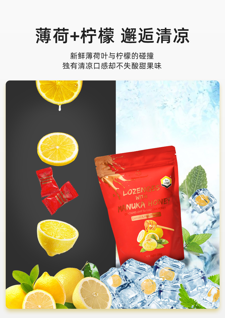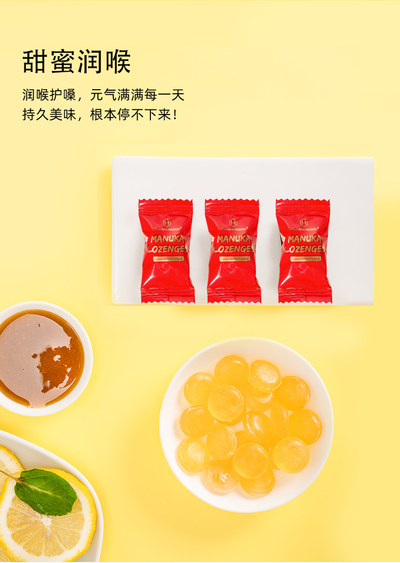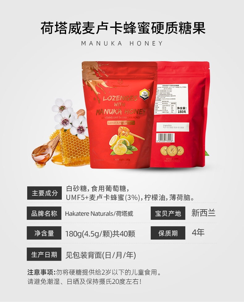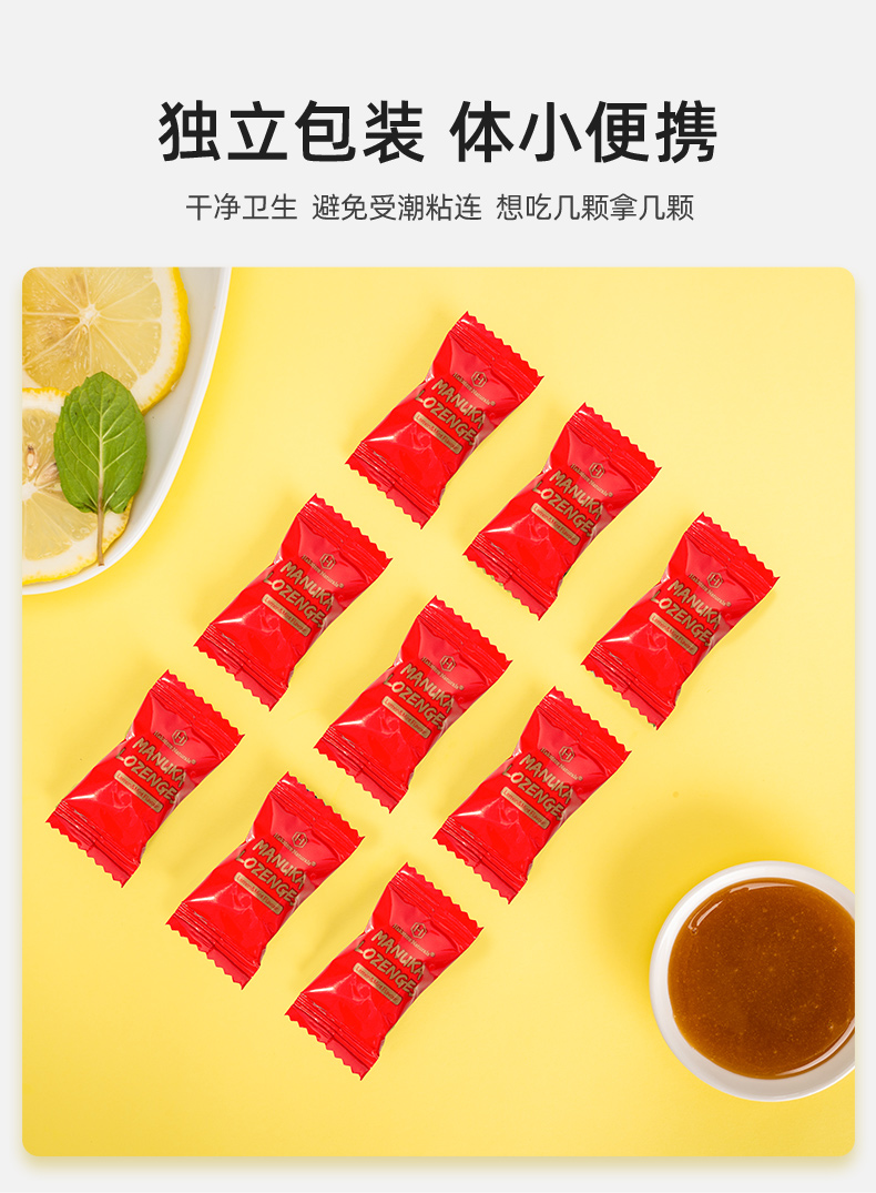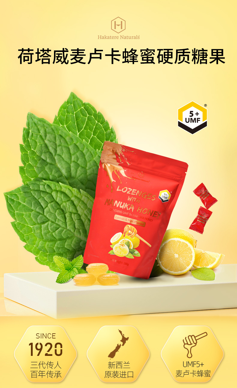 荷塔威麦卢卡蜂蜜糖果 5+硬质糖果麦卢卡润喉糖180g(薄荷柠檬味)