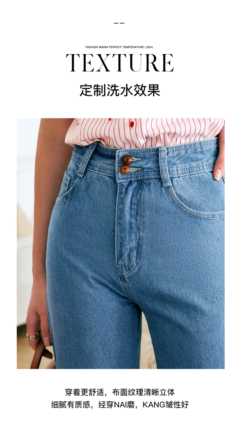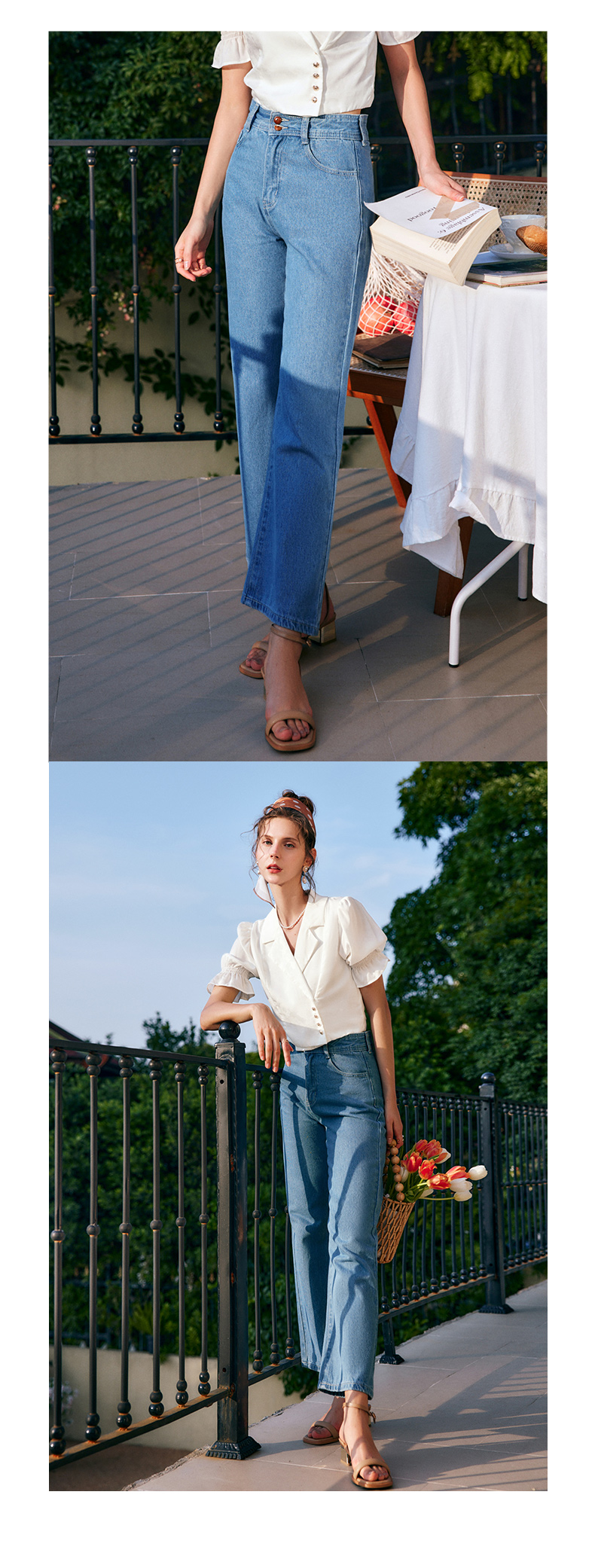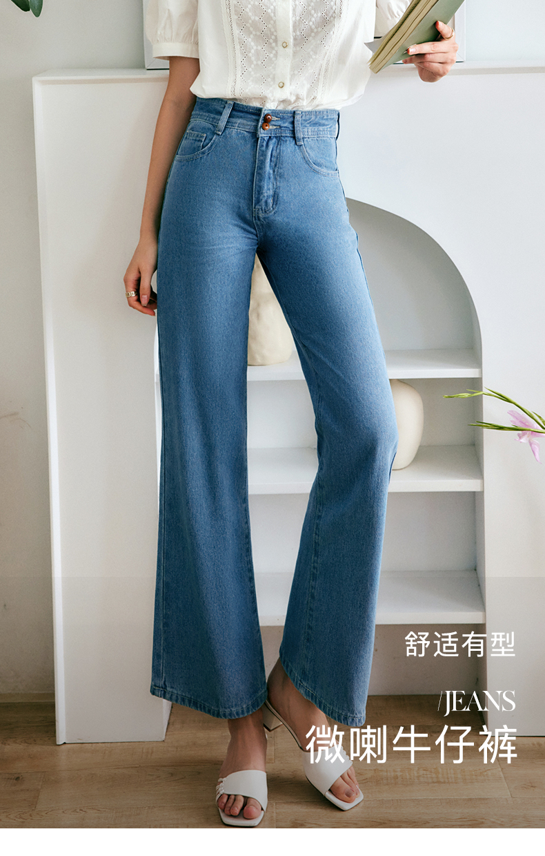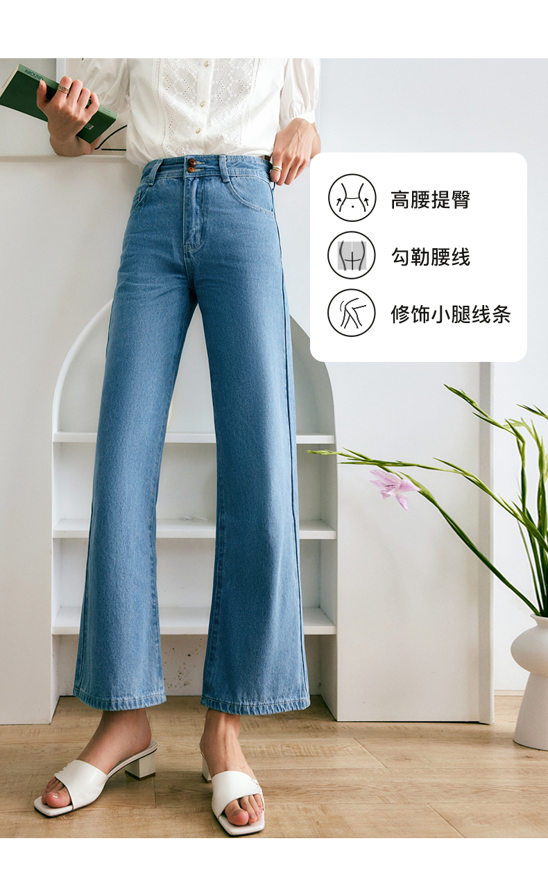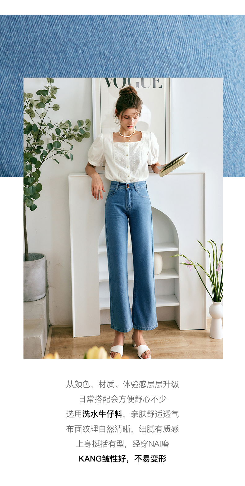 OLrain法式浅色牛仔裤女夏季2022新款高腰显瘦宽松直筒阔腿喇叭裤