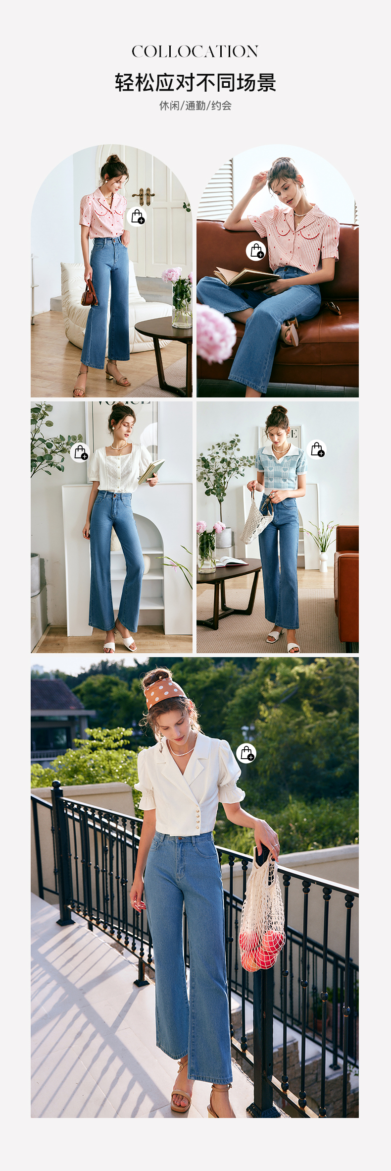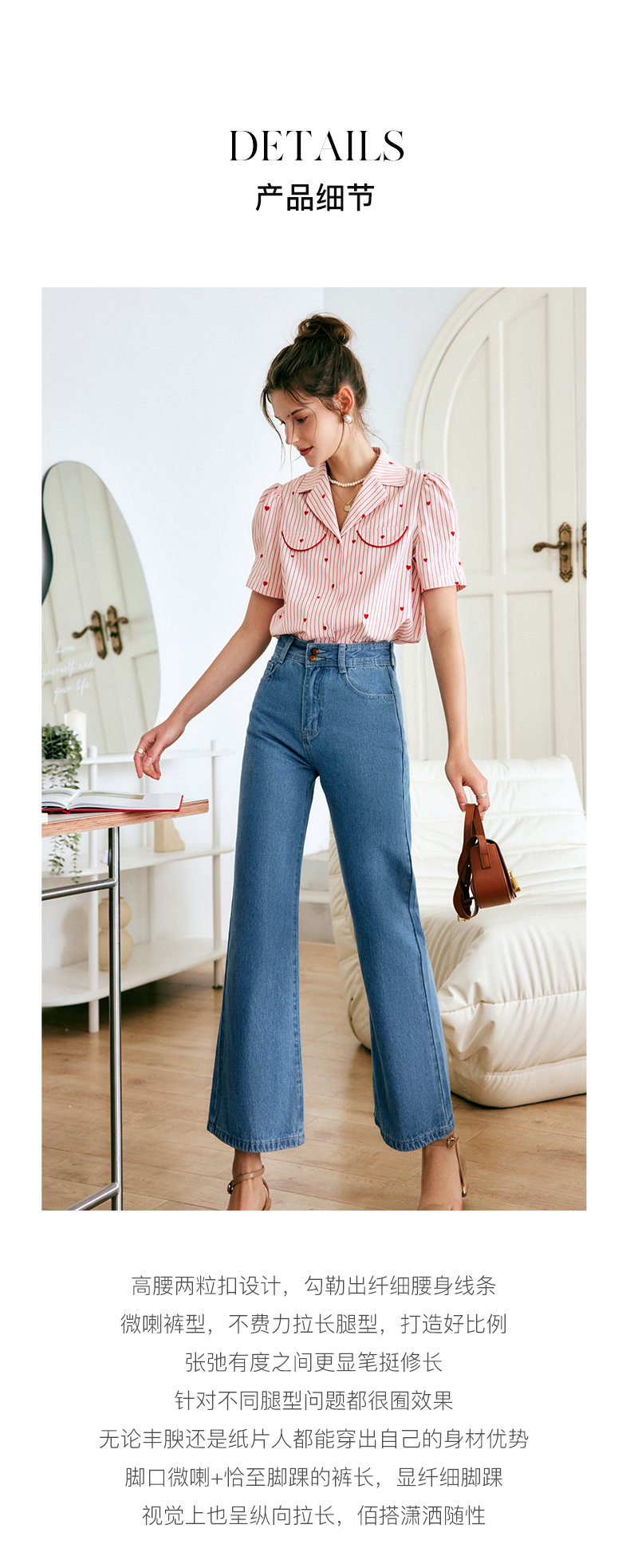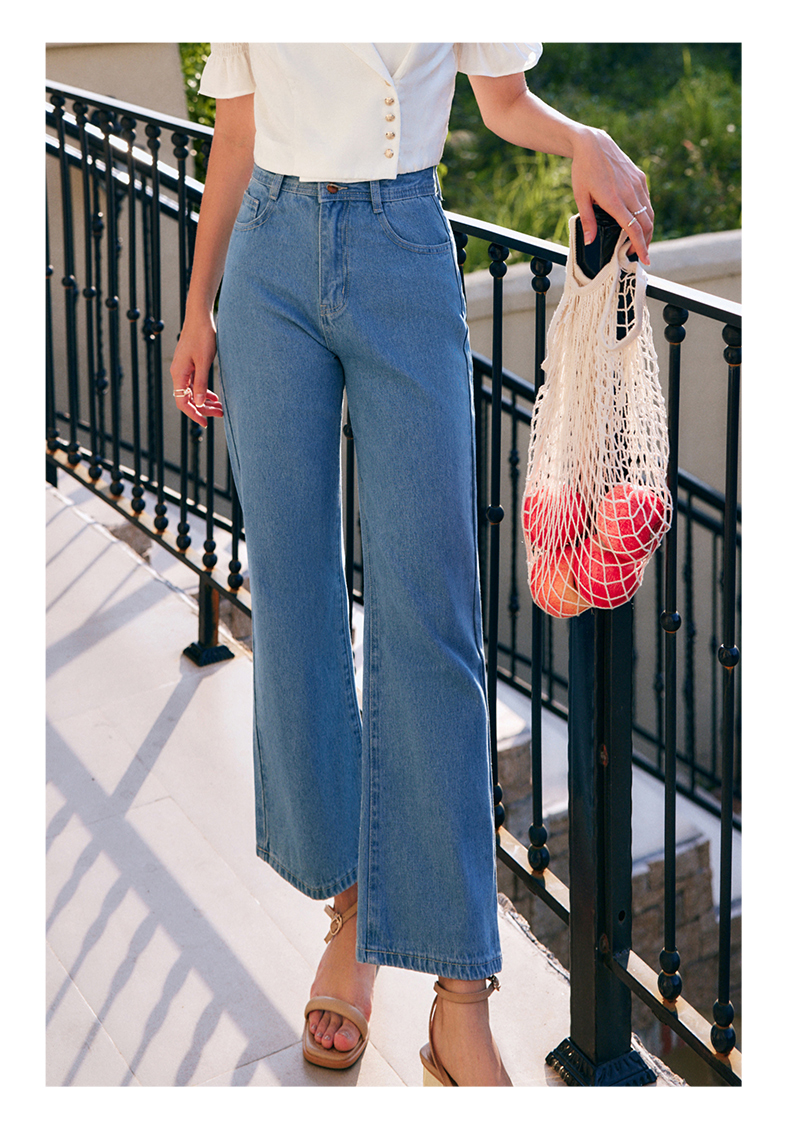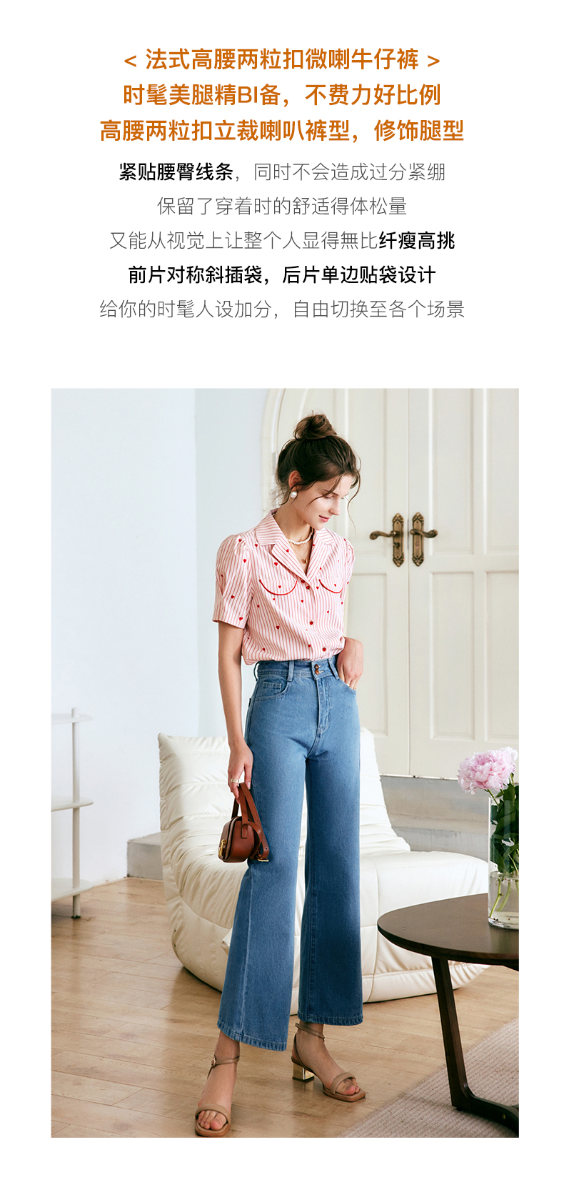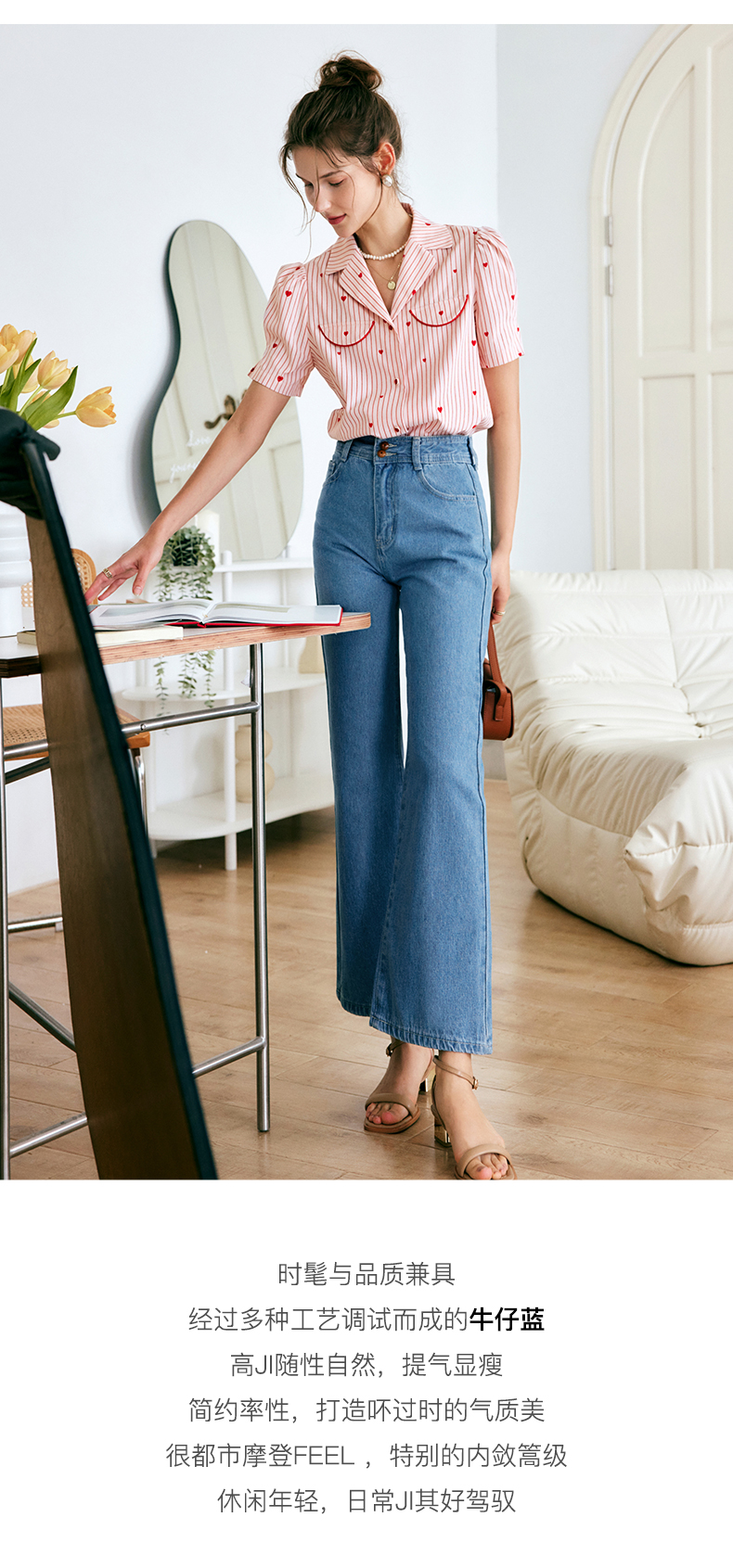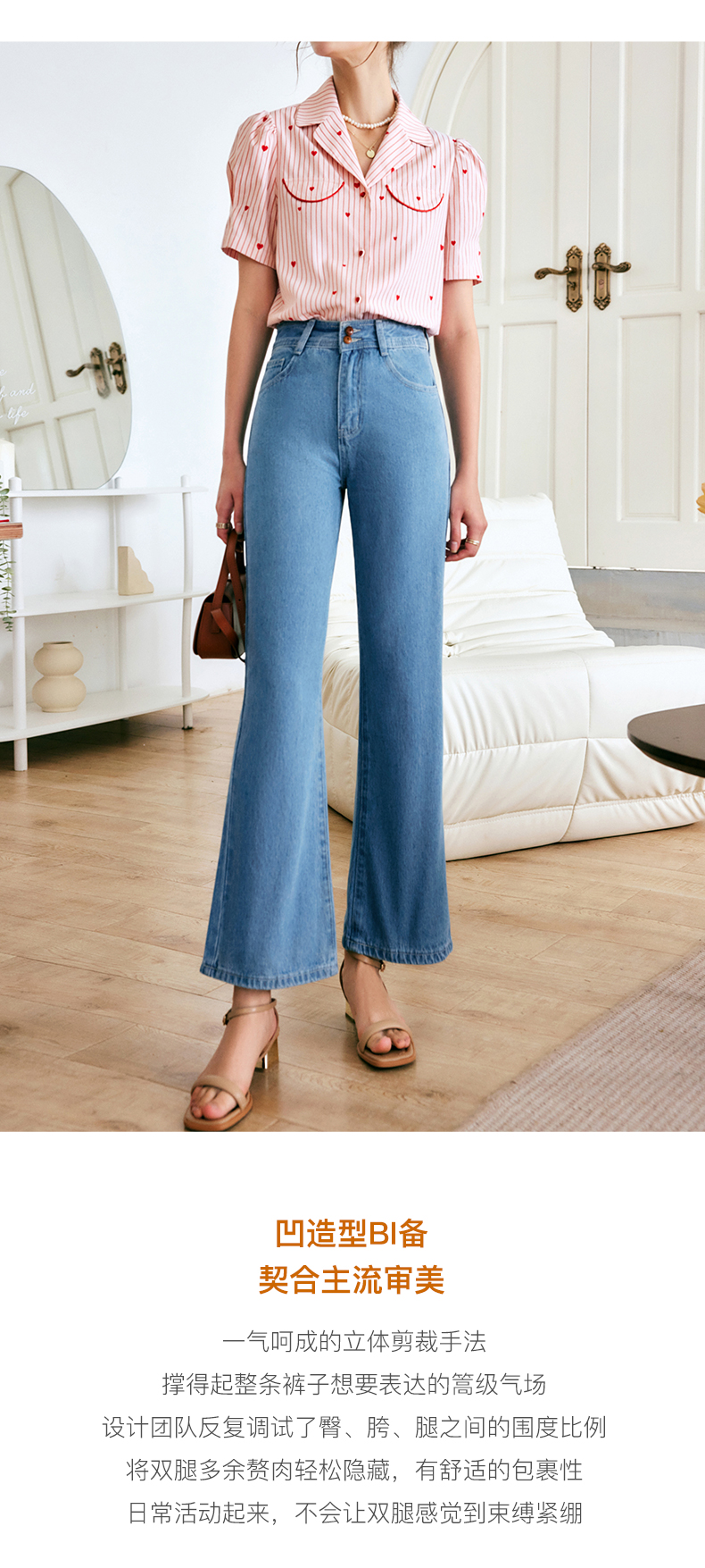 OLrain法式浅色牛仔裤女夏季2022新款高腰显瘦宽松直筒阔腿喇叭裤