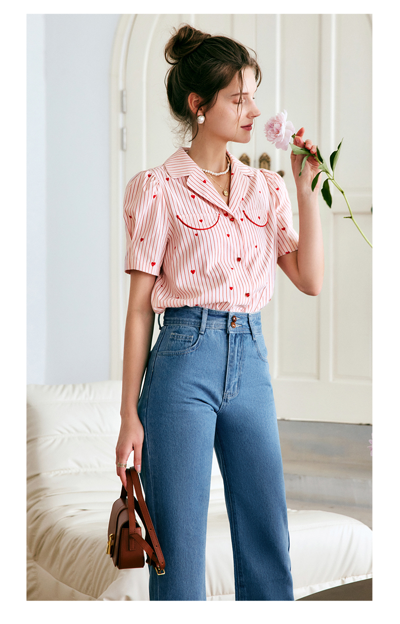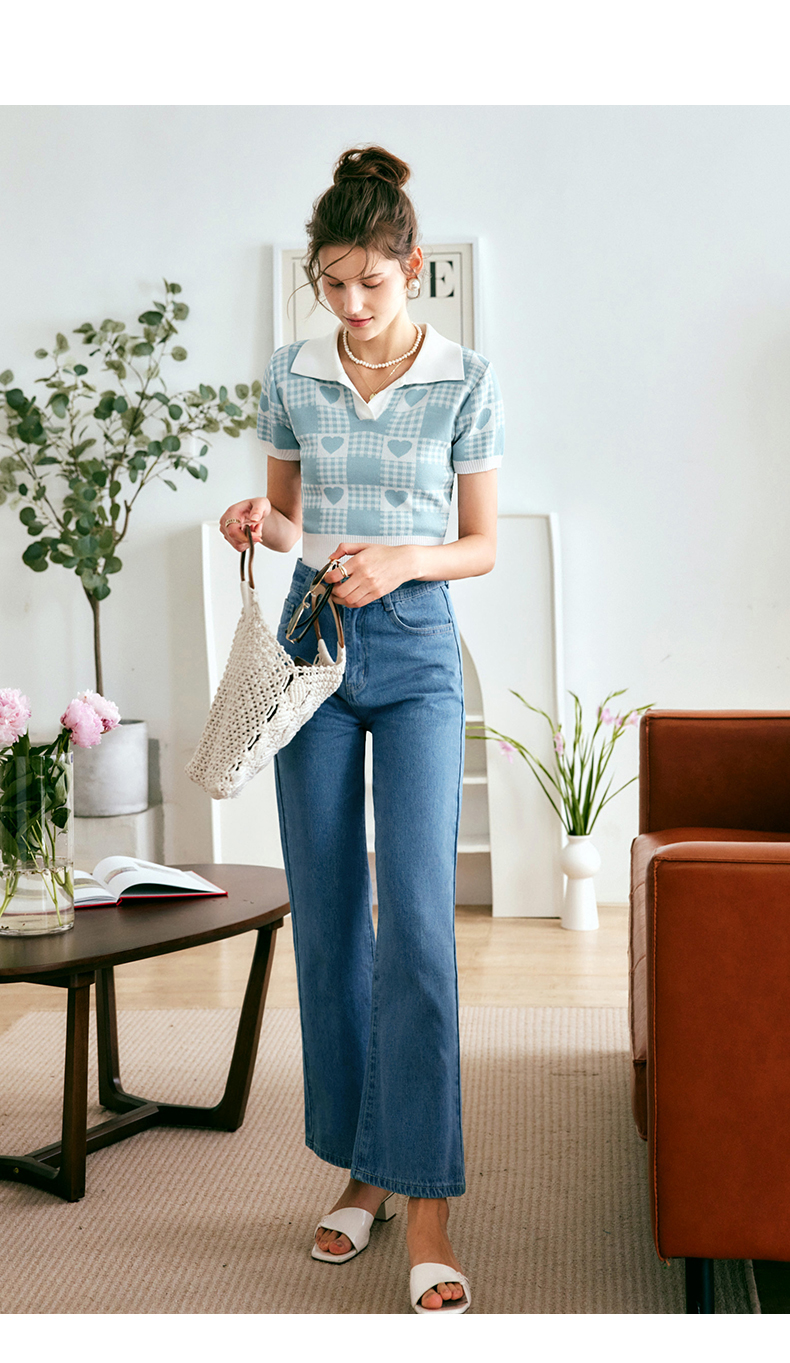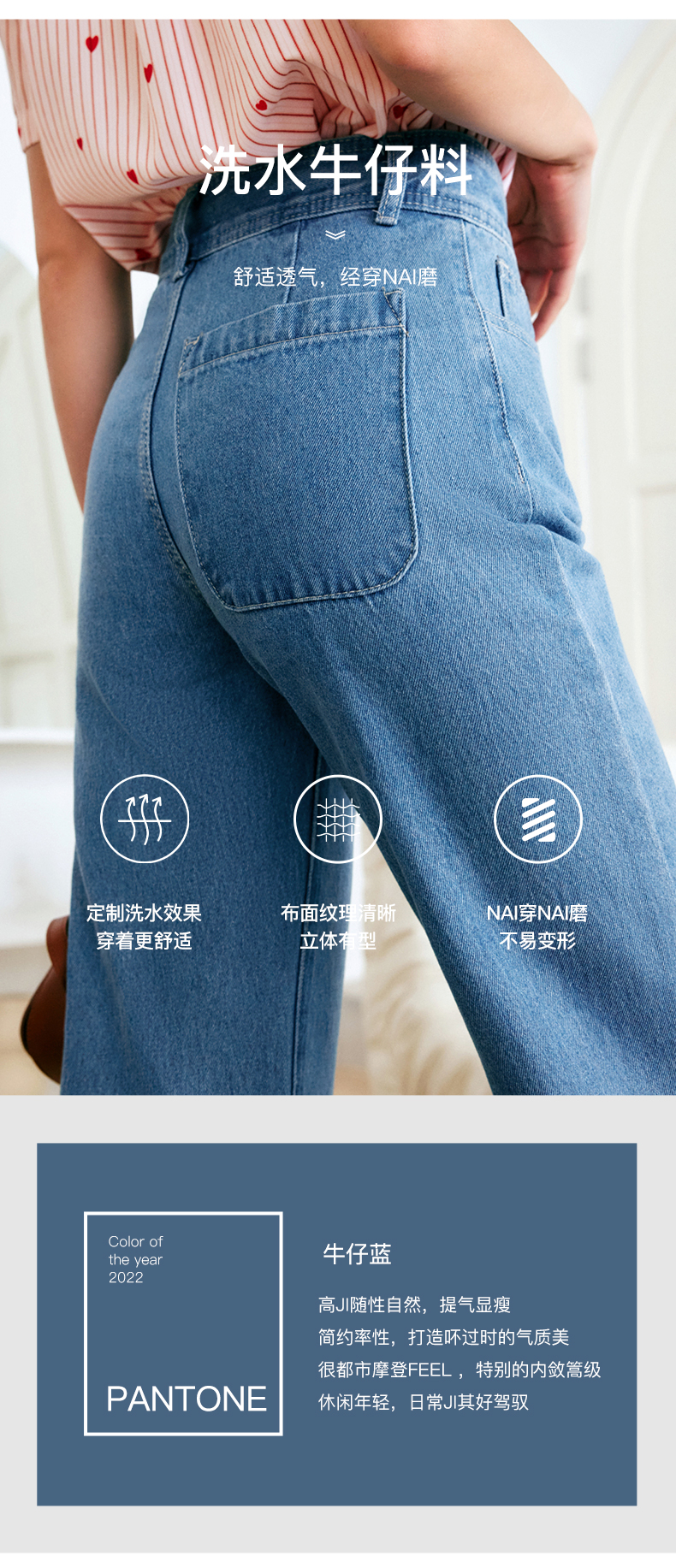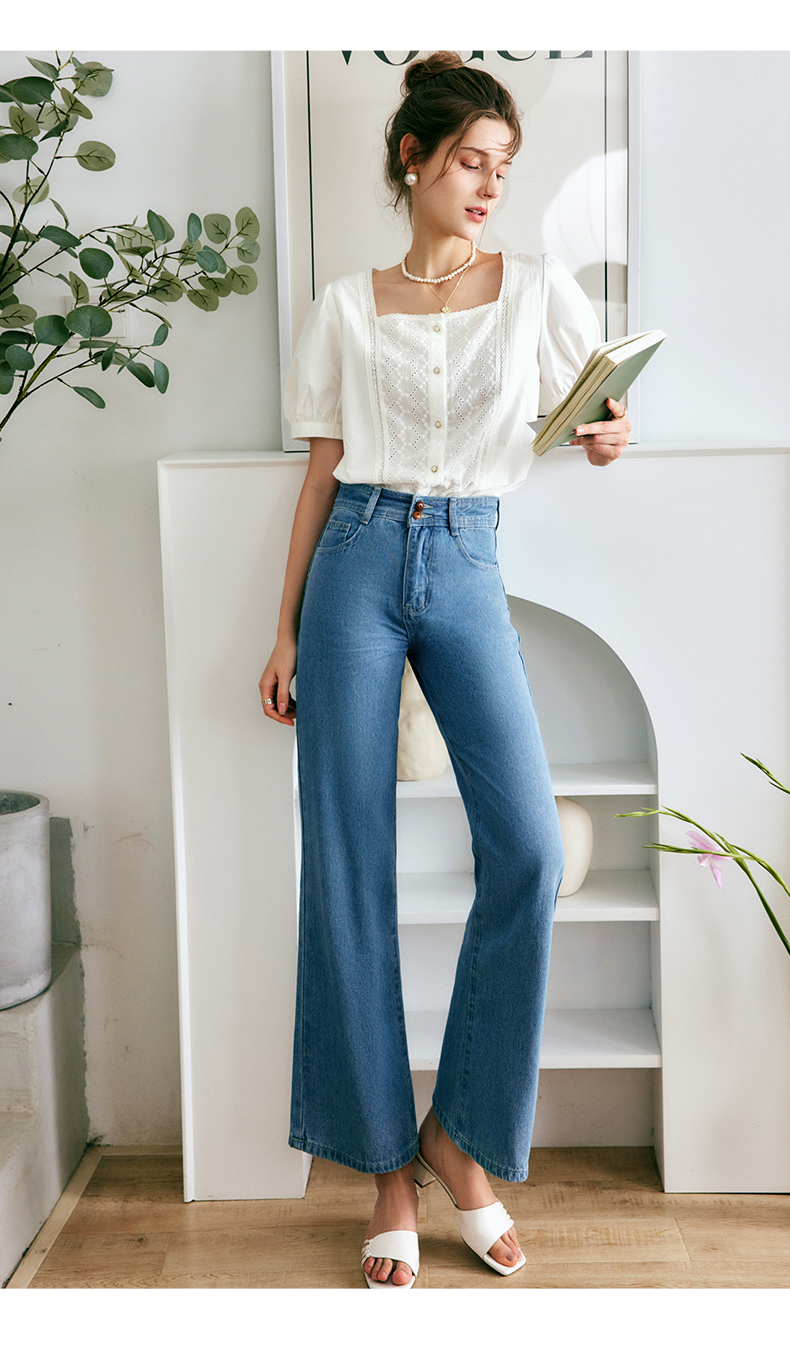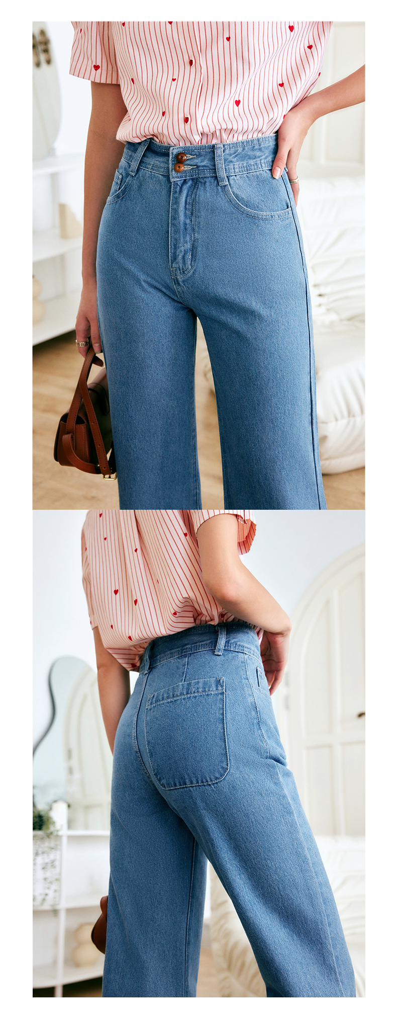 OLrain法式浅色牛仔裤女夏季2022新款高腰显瘦宽松直筒阔腿喇叭裤