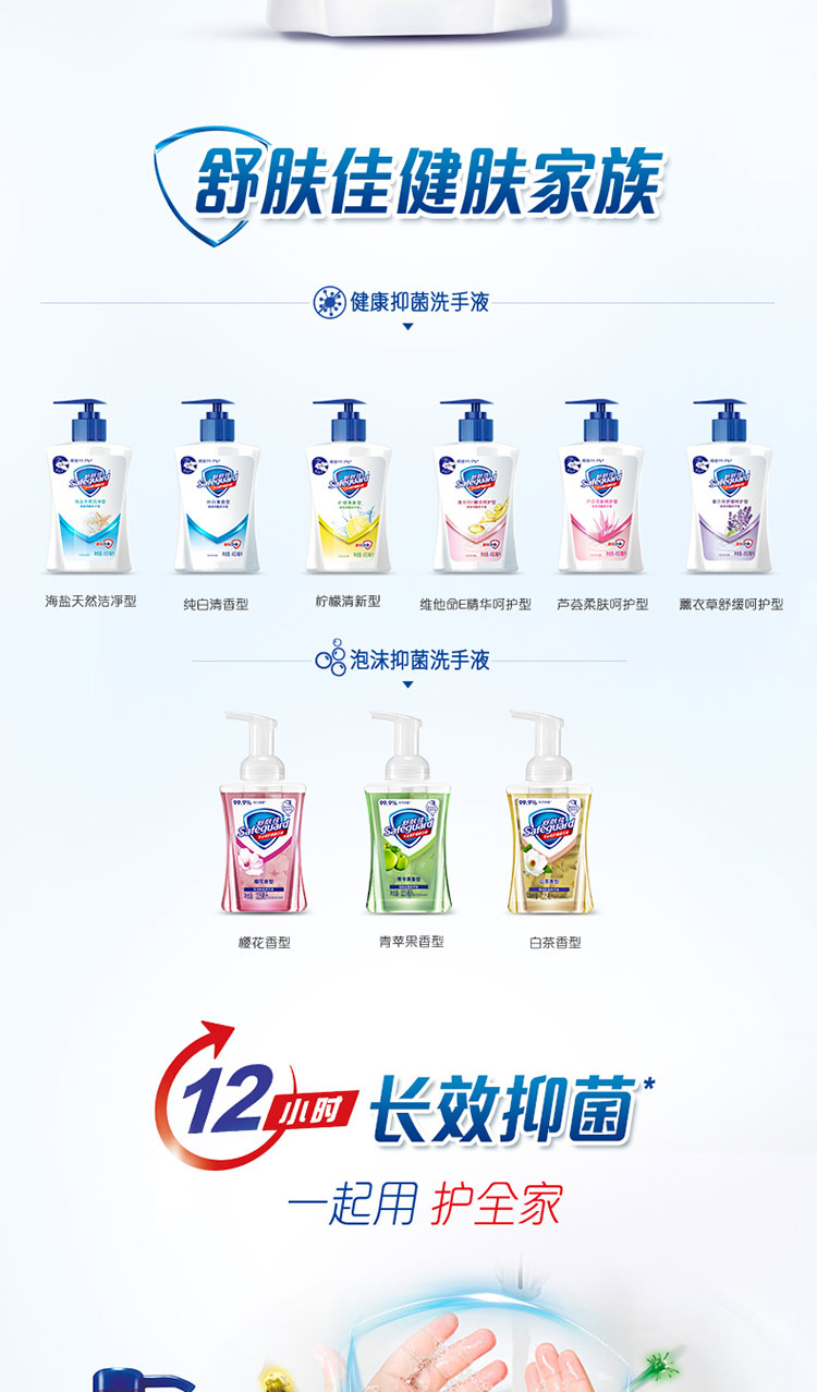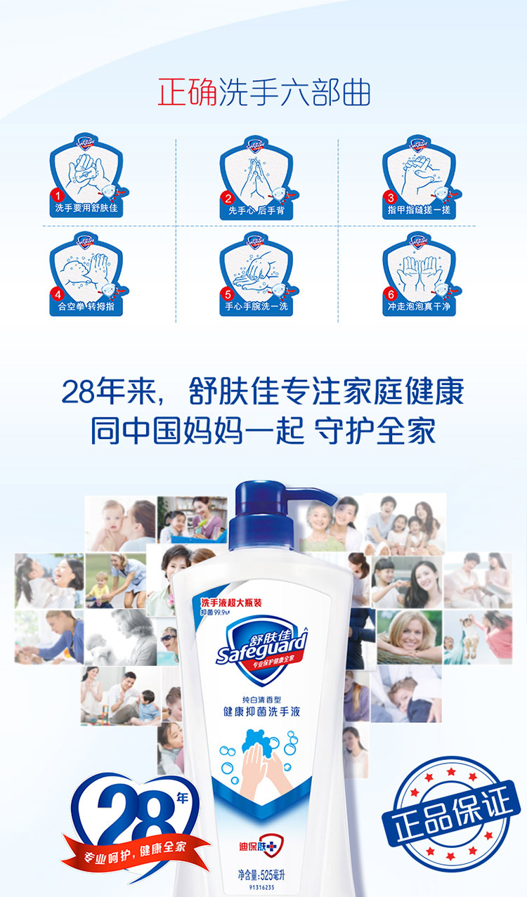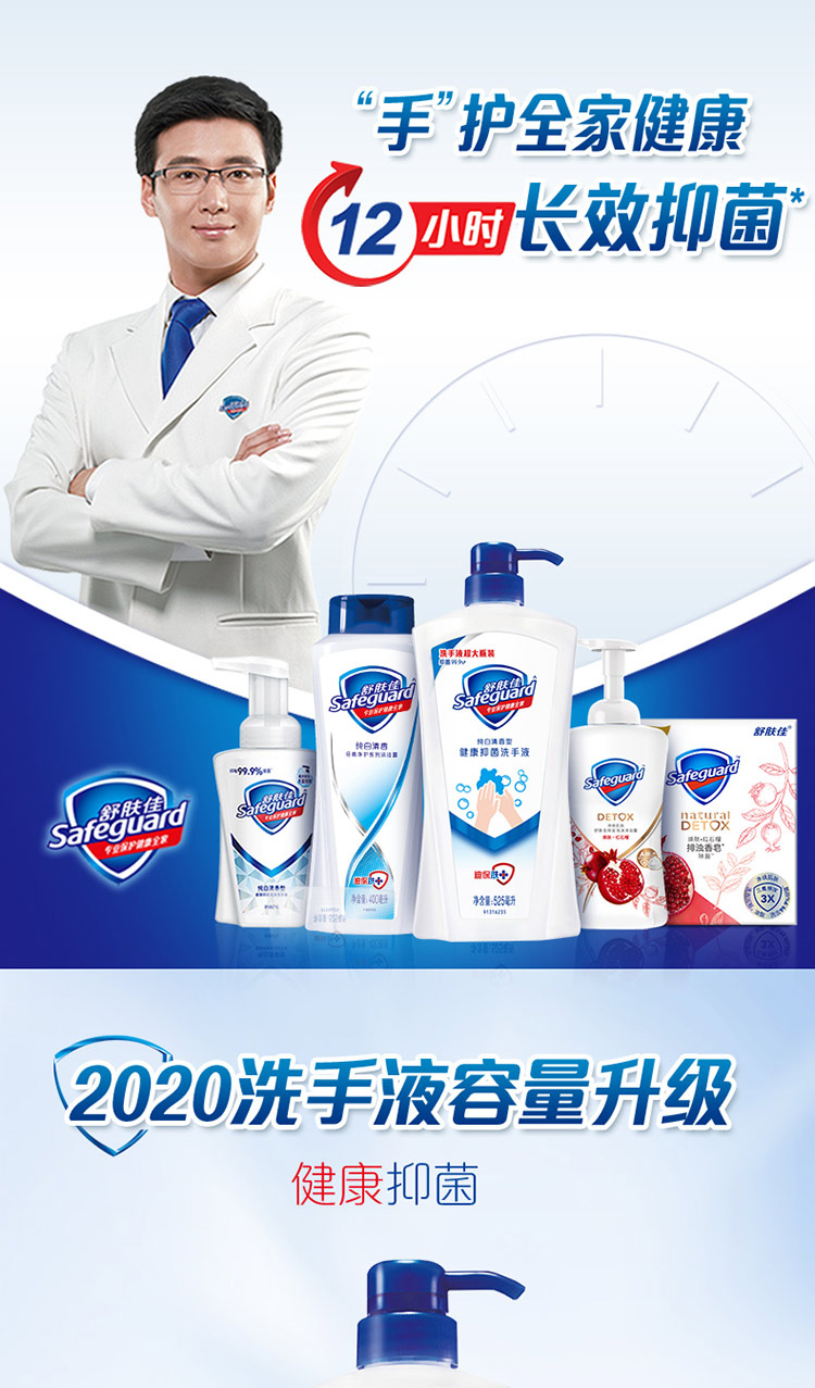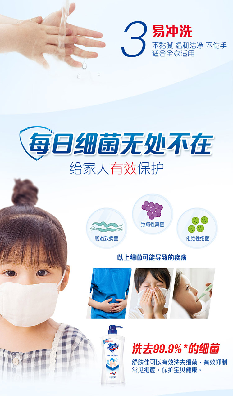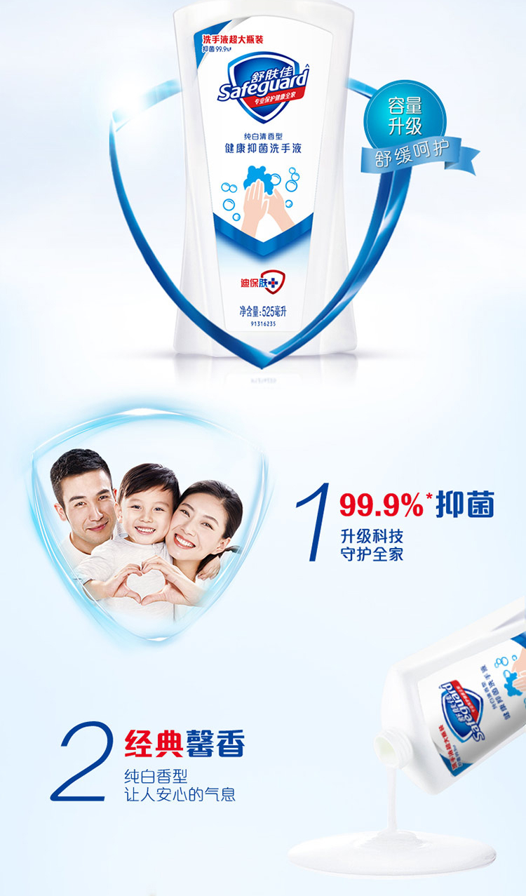 舒肤佳抑菌洗手液纯白525ml超大容量 家庭装(抑菌99.9% 温和洁净)
