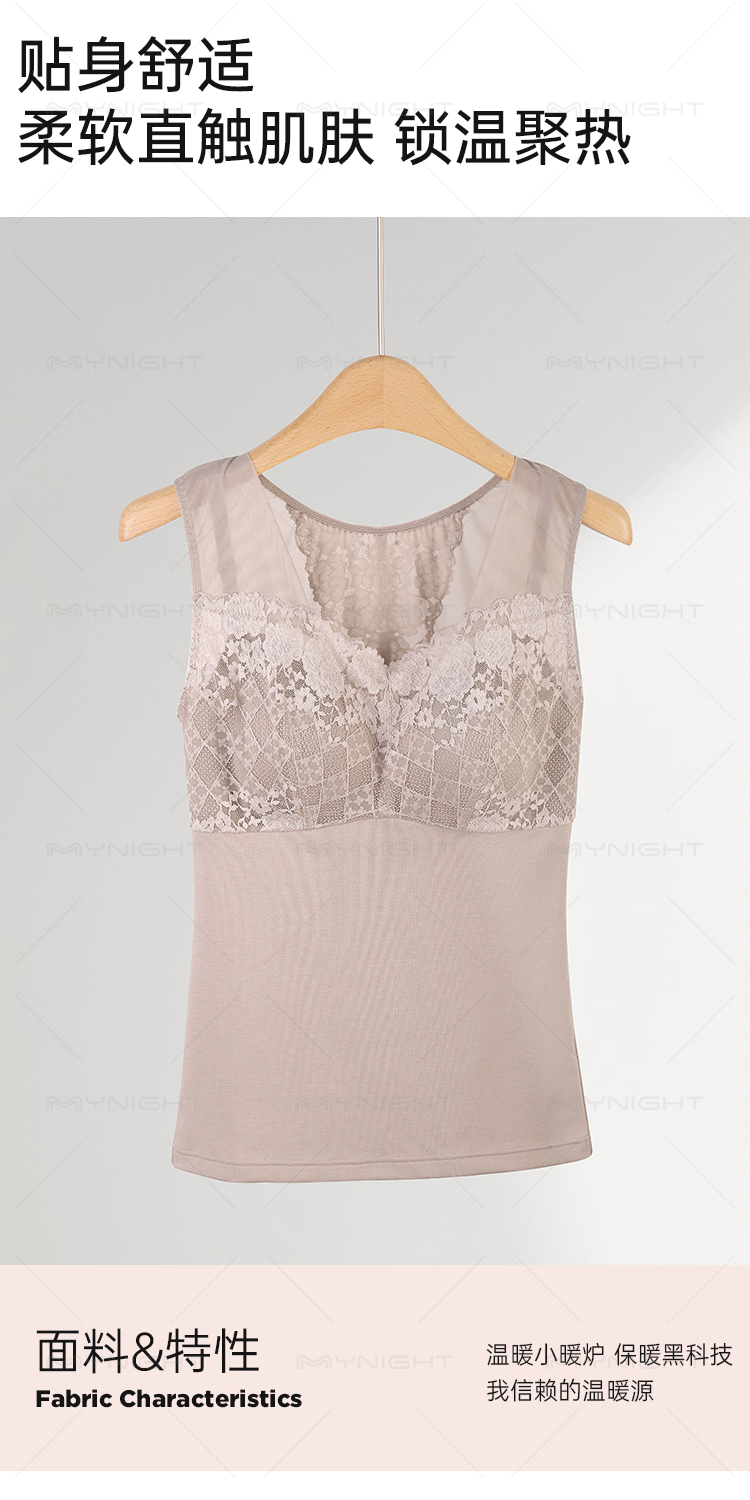 美奈川 蕾丝桑蚕丝带杯 保暖背心DD5655 商品图3