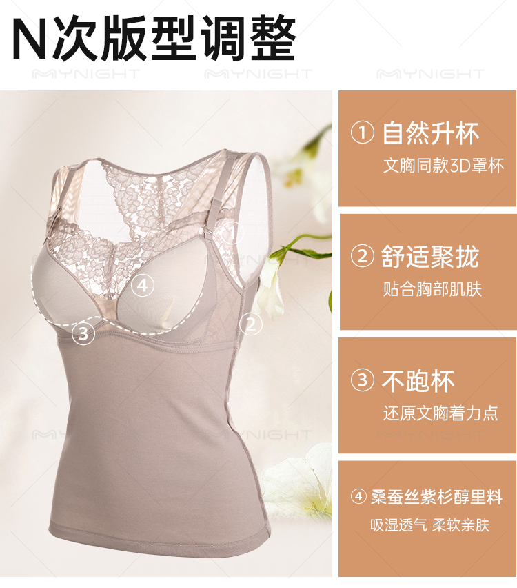 美奈川 蕾丝桑蚕丝带杯 保暖背心DD5655 商品图1