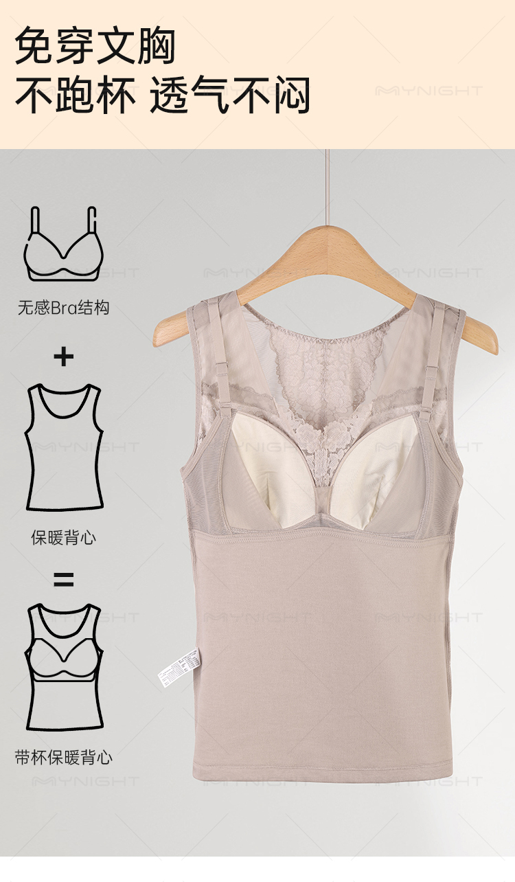 美奈川 蕾丝桑蚕丝带杯 保暖背心DD5655 商品图0