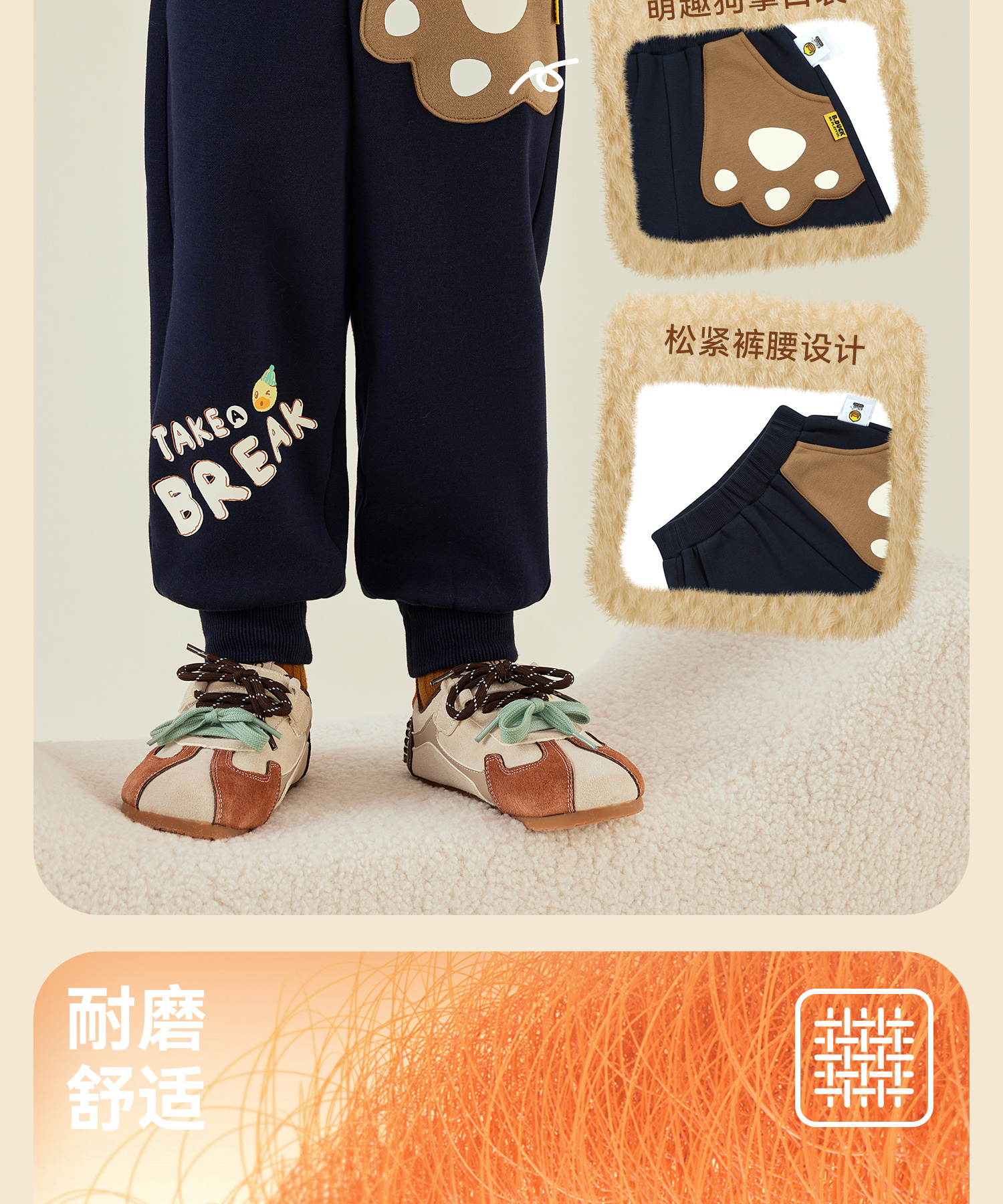 【加绒抗菌】B.Duck小黄鸭童装冬季针织长裤90-130 BF5673002