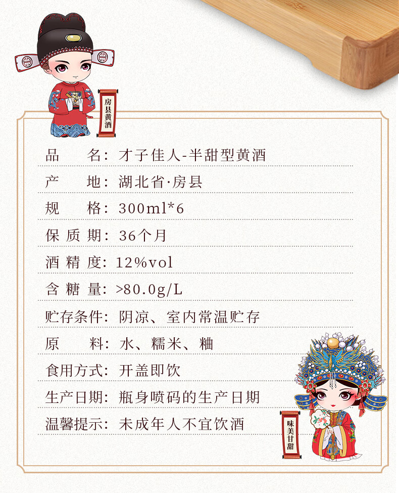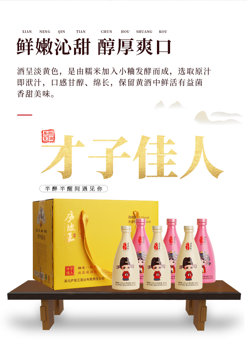 十堰 庐陵王才子佳人鲜黄酒300ml*6
