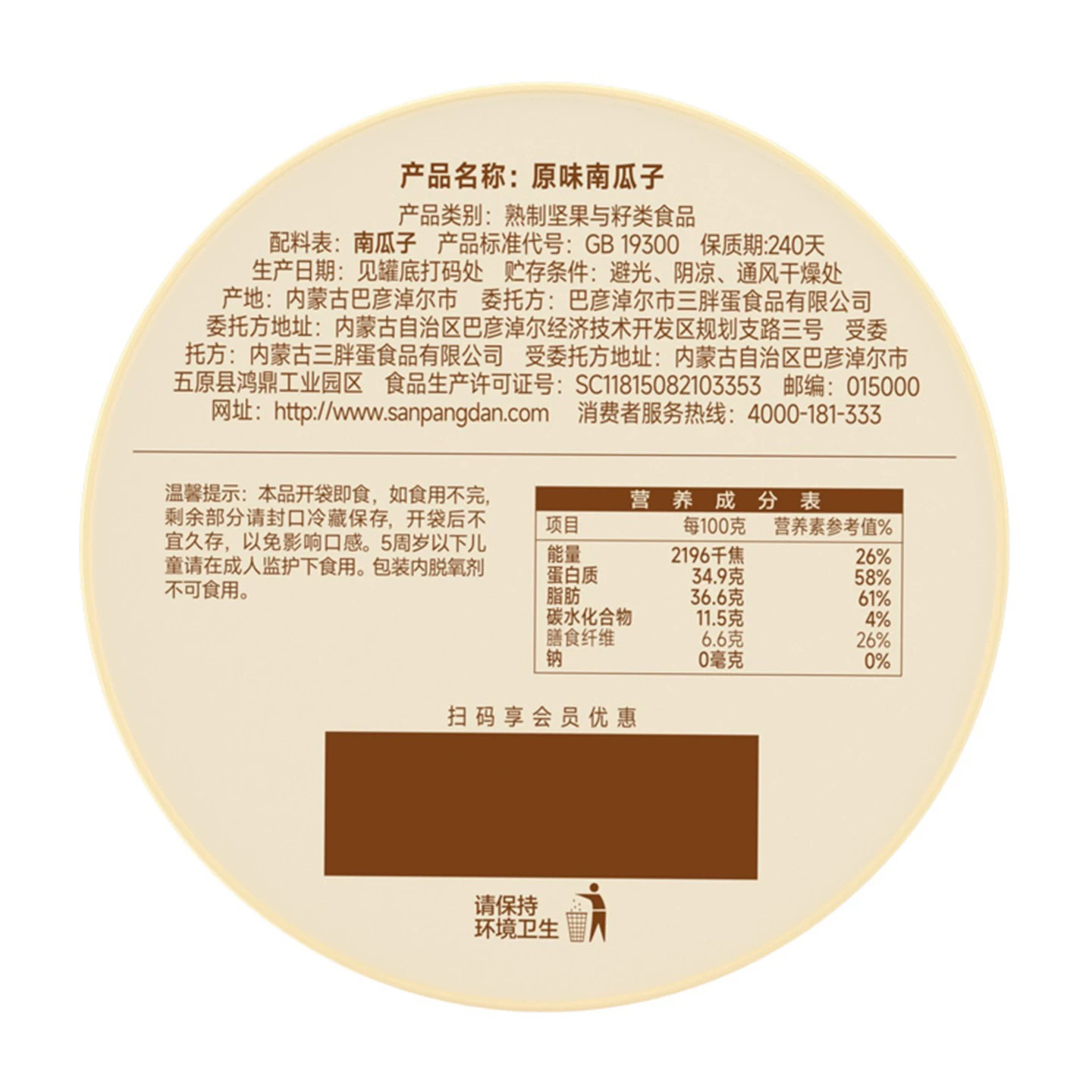 三胖蛋原味南瓜子180g
