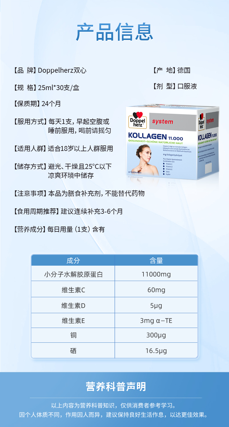 【德国双心】 水解胶原蛋白口服液锁水保湿25ml*30支 3盒装