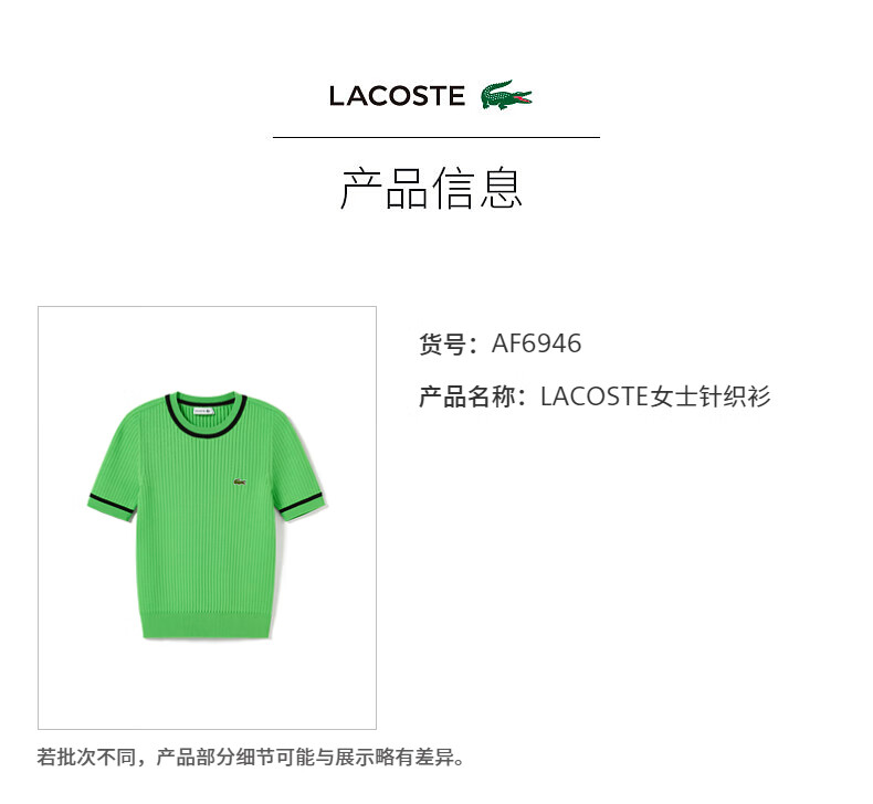 【海南专供价】Lacoste法国鳄鱼女装新款短袖时尚舒适百搭针织衫AF6946-10