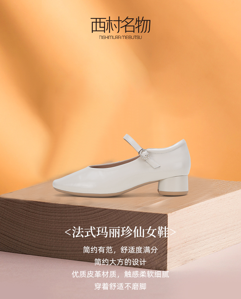 西村名物2024春季新款软底舒适法式气质真皮玛丽珍鞋仙女鞋X24AE10521