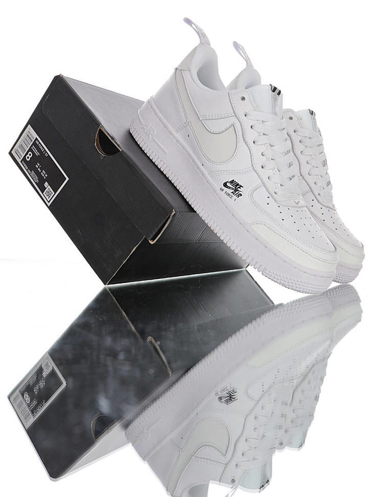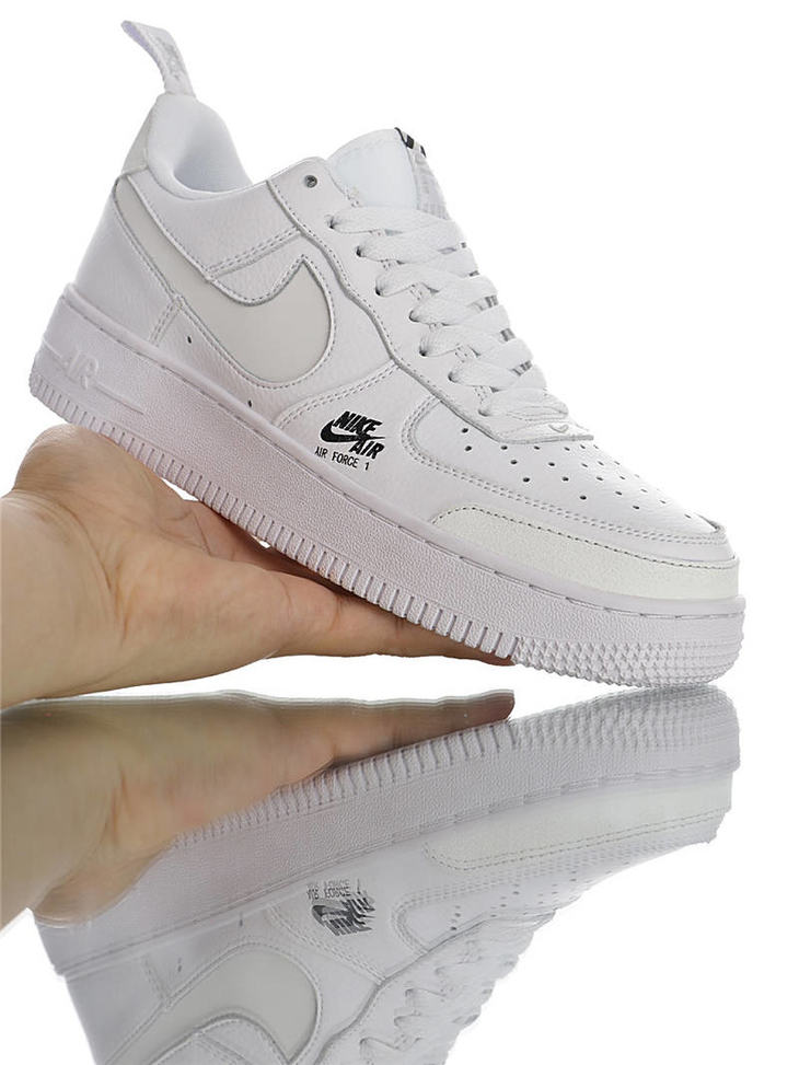 耐克 Nike Air Force 1 ´07 Low Premium 镂空钩子 荔枝纹牛移膜革 内置全掌air sole气垫 空军一号 皮革白黑3M钩配色