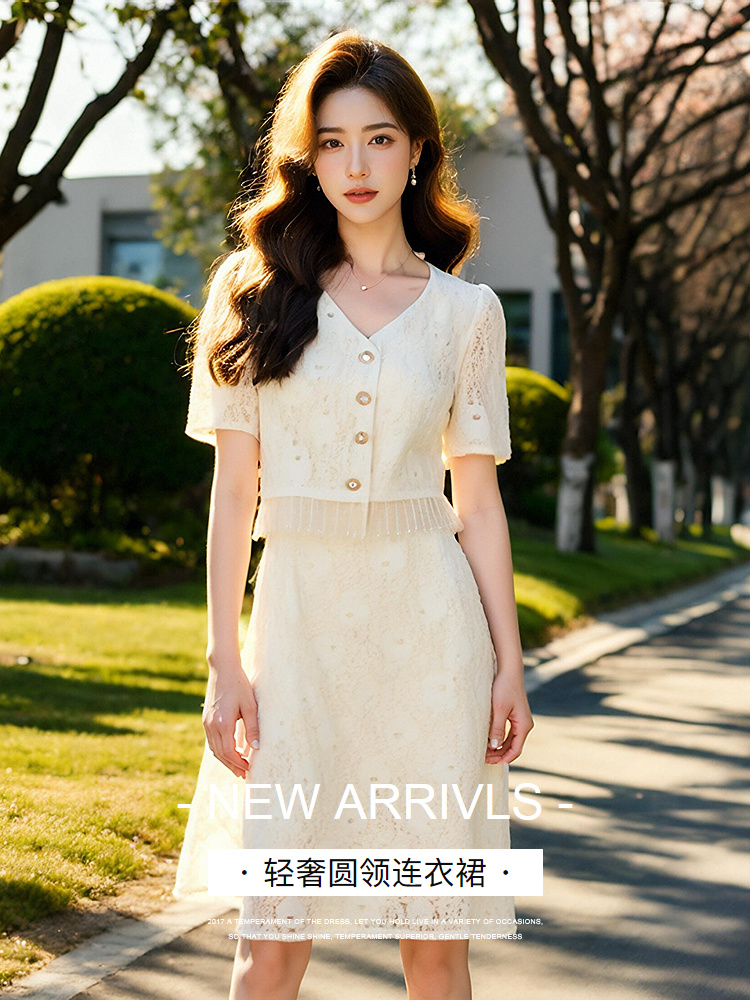 奢姿大码女装2026夏季新款胖妹妹轻奢休闲假两件拼接V领连衣裙9952890326