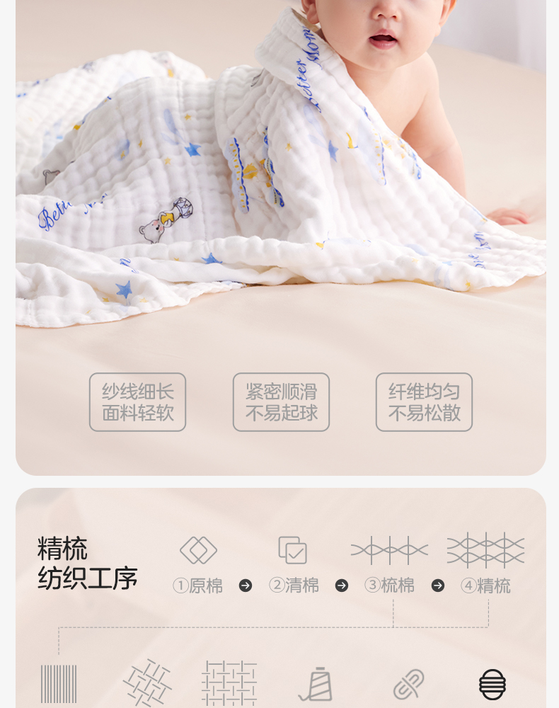 婴儿纱布浴巾新生超软全棉洗澡专用初生宝宝大毛巾速干