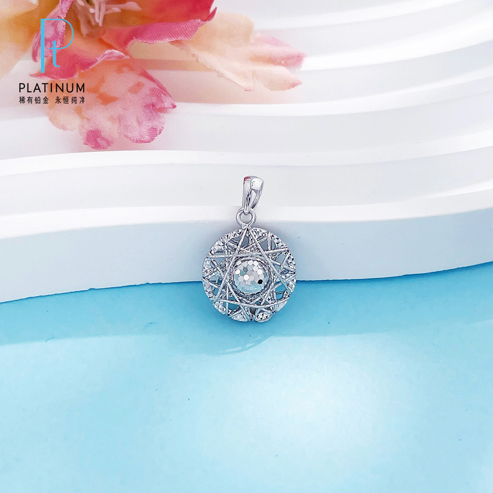 【限时8.8折】PT950 #绕线 #CNC 【国际铂金协会 精品】铂金镂空绕线鱼鳞金珠圆盘吊坠(BDZ00234))预售产品下单后不退款不退货不换货不补差价