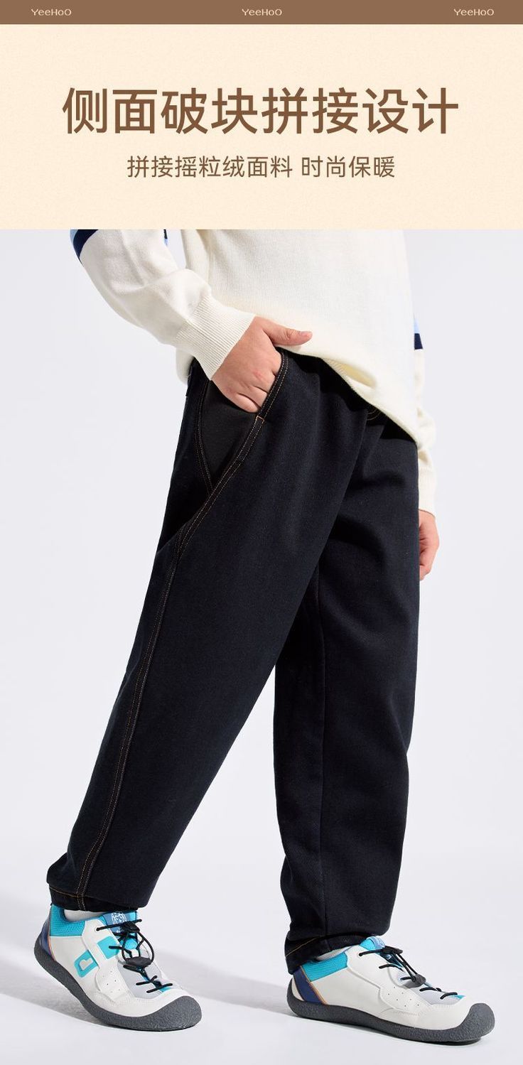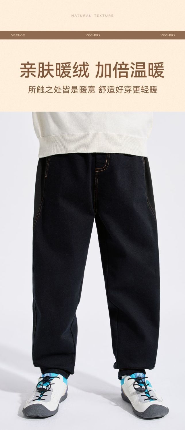 【英氏】【加绒】【110-160】男童加绒保暖牛仔裤
