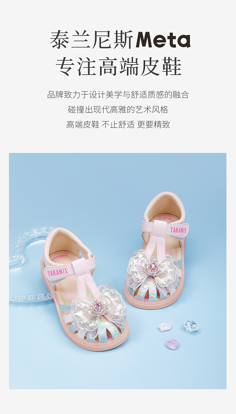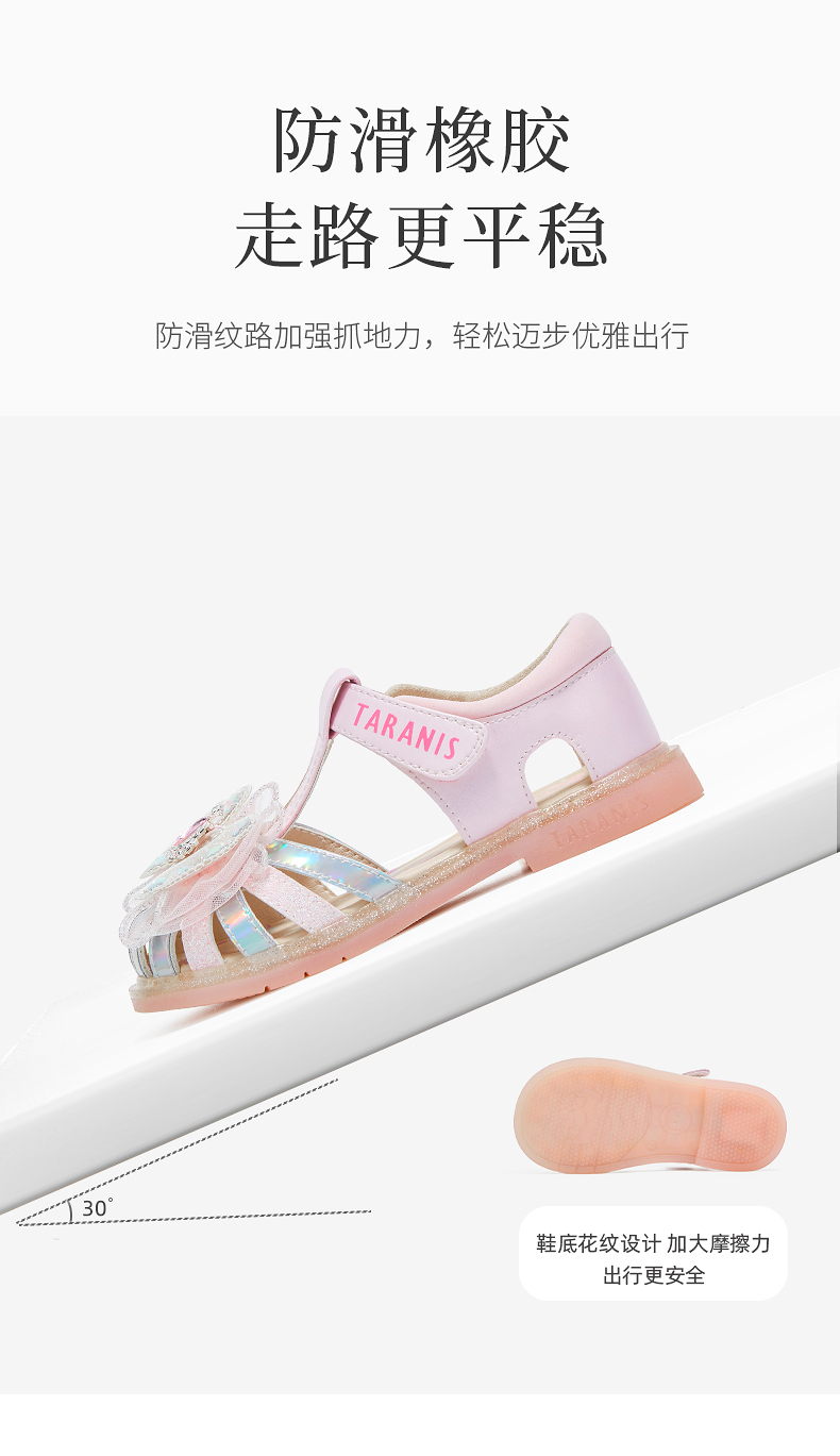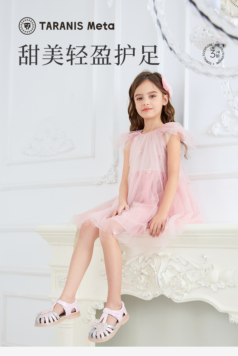泰兰尼斯meta夏季新款女童凉鞋防滑软底公主鞋小女孩时尚轻便单鞋 M07X5B6238