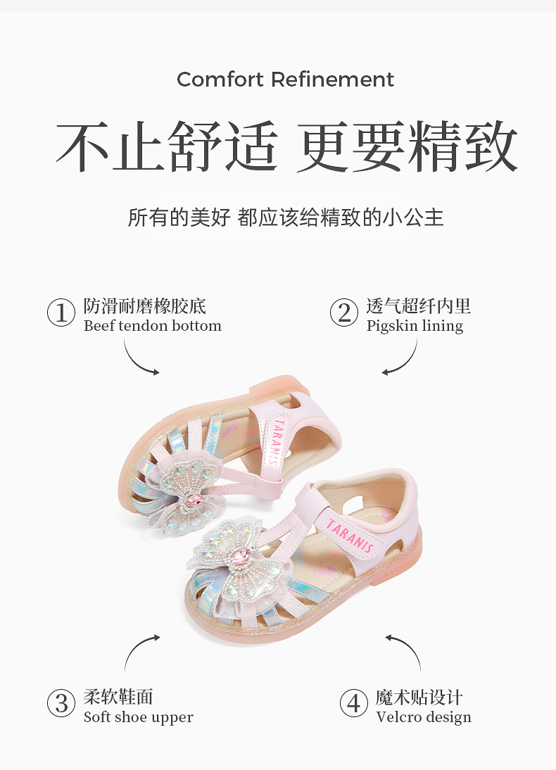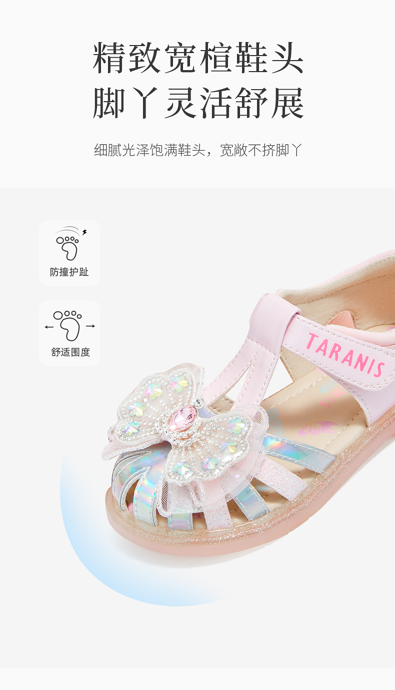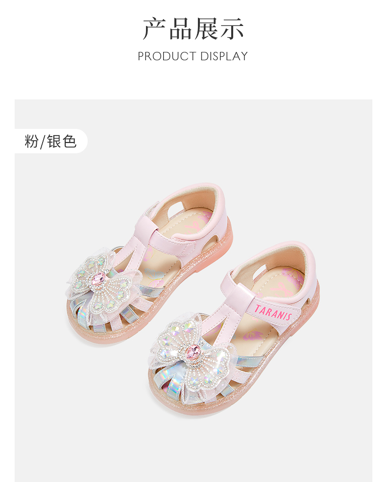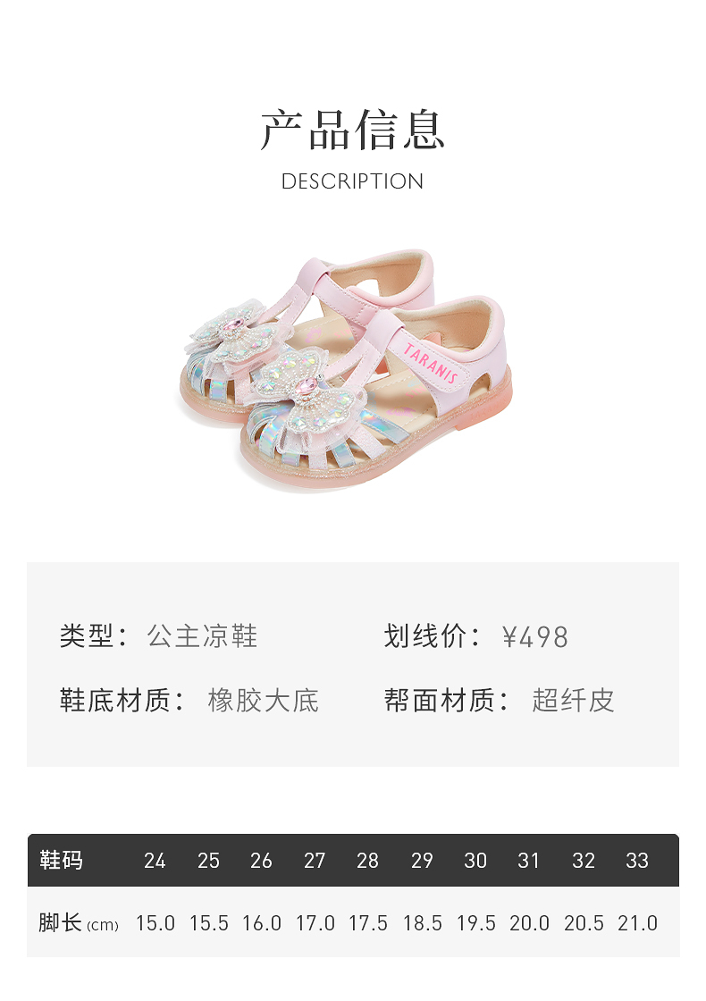 泰兰尼斯meta夏季新款女童凉鞋防滑软底公主鞋小女孩时尚轻便单鞋 M07X5B6238