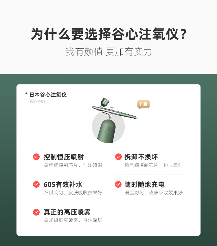 【日本谷心注氧仪GX-P01】家用便携式手持喷雾补水仪面部美容院