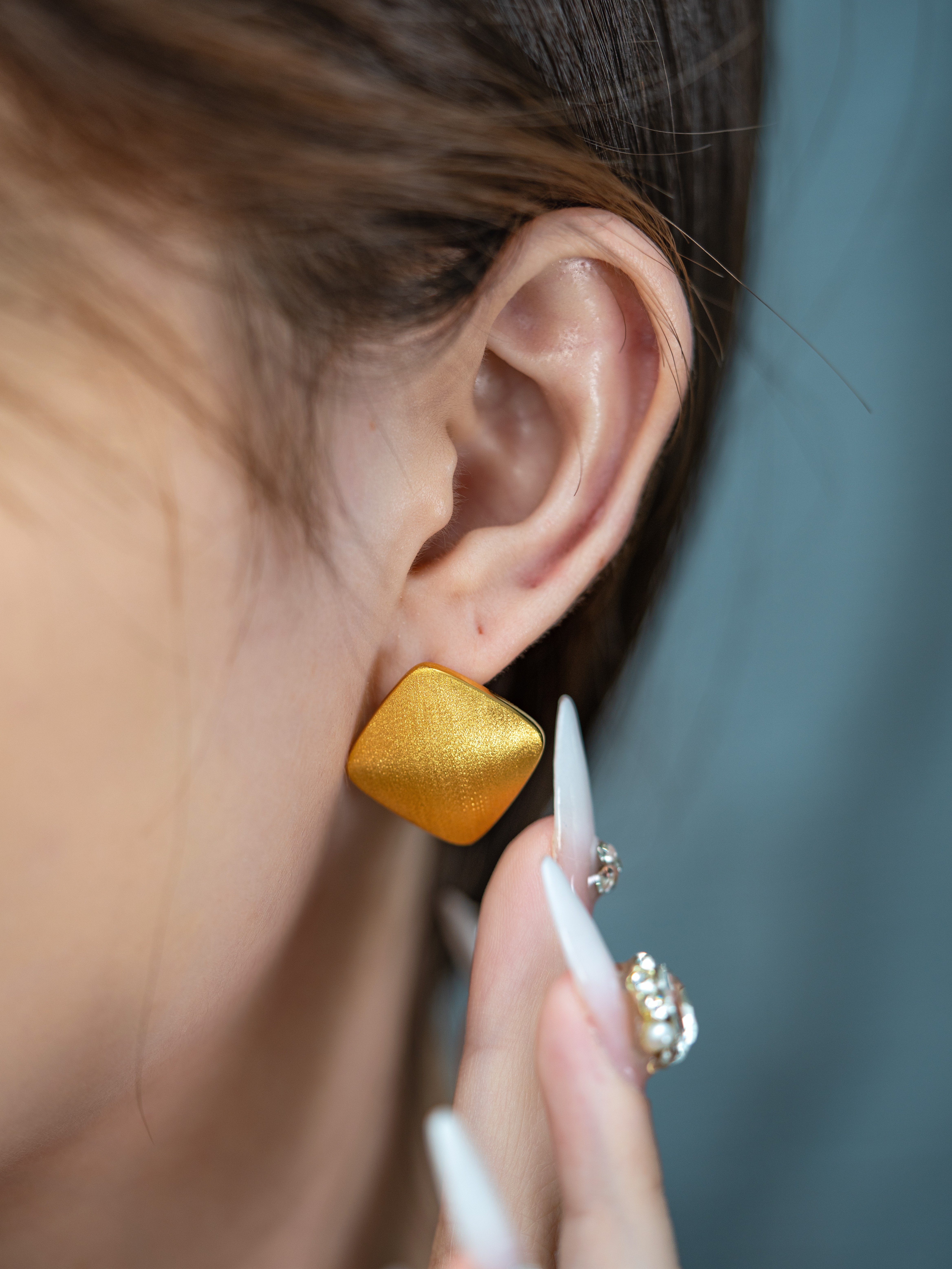 【推荐款】方形磨砂黄金耳饰999足金克重4.52(单个2.25)