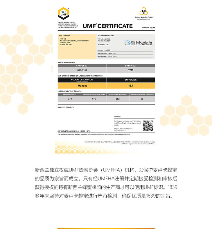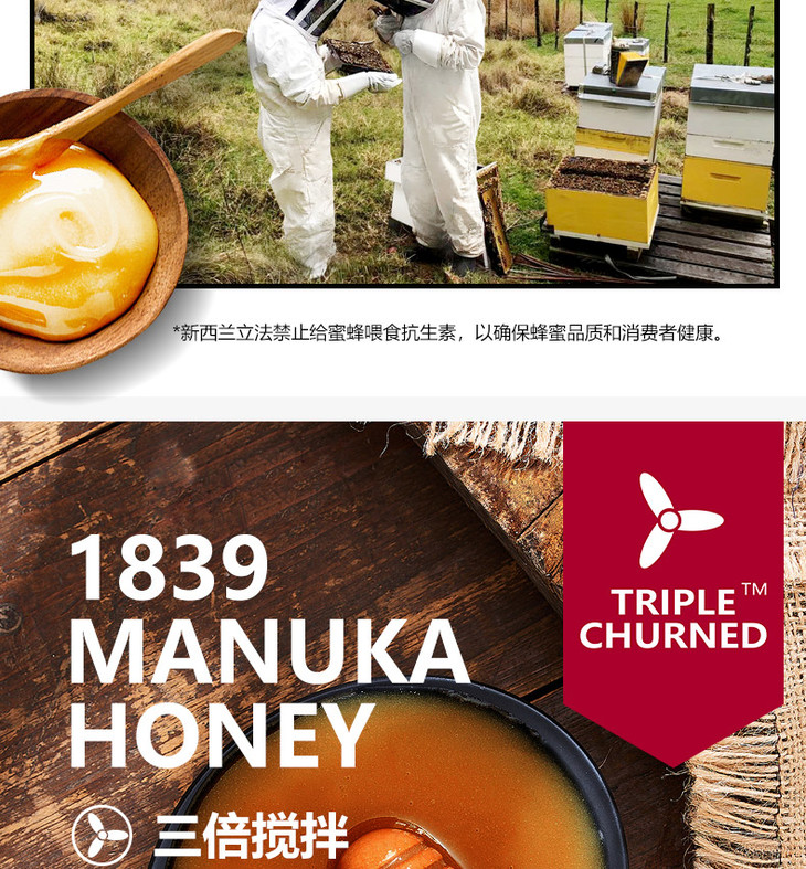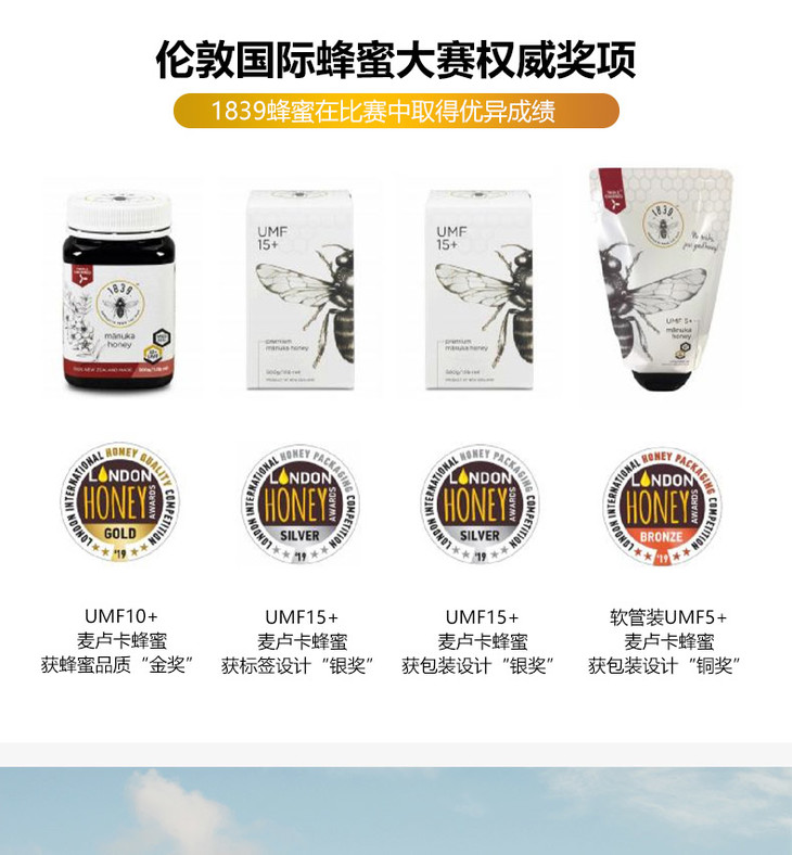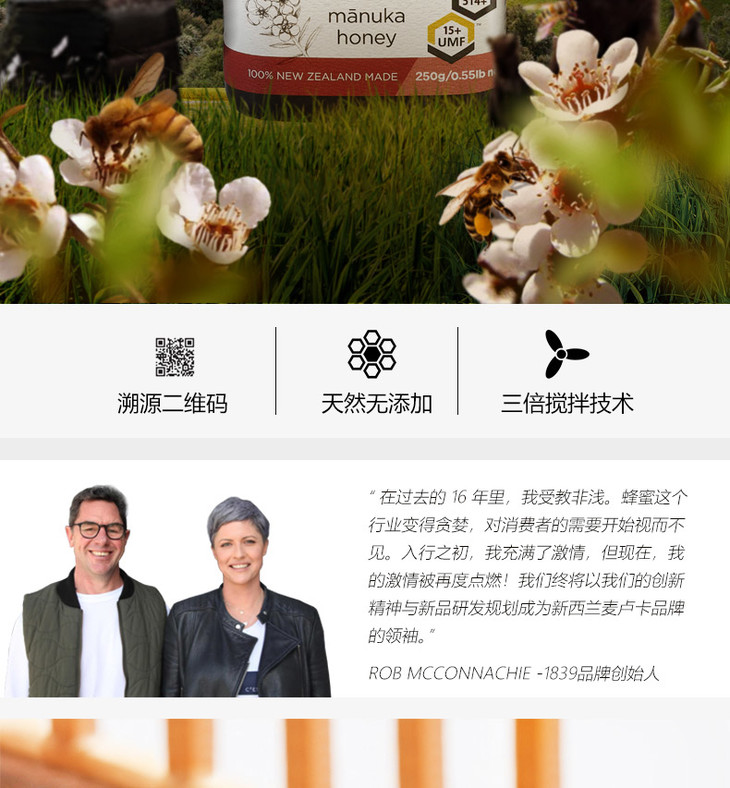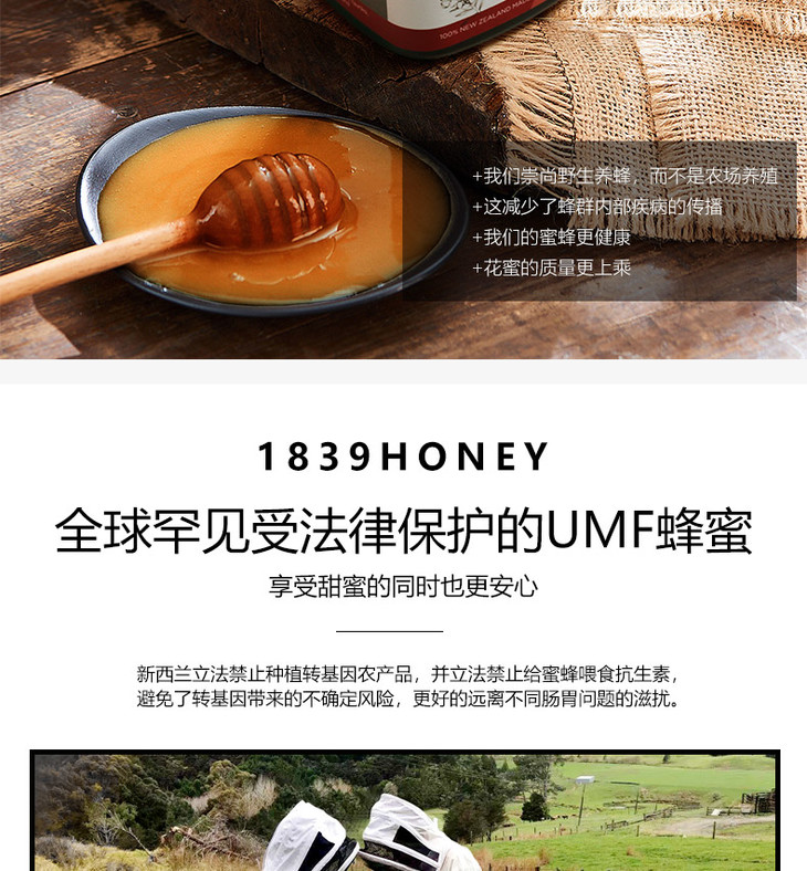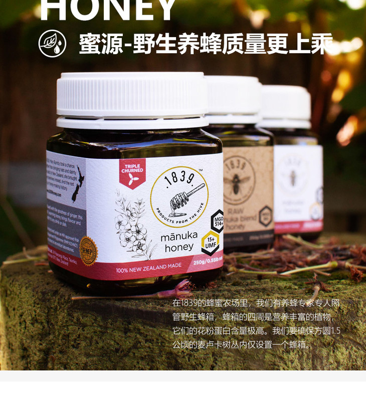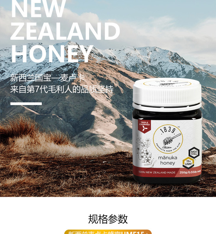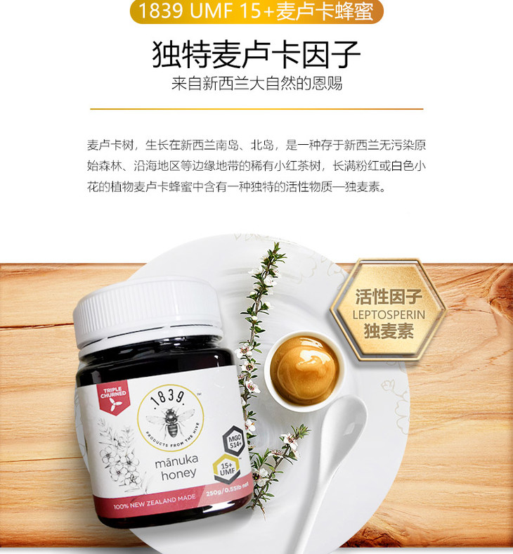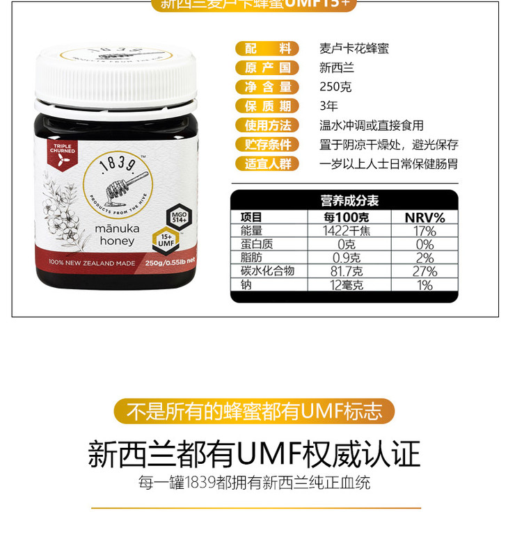 新西兰原装1839 UMF15+麦卢卡花蜂蜜250g