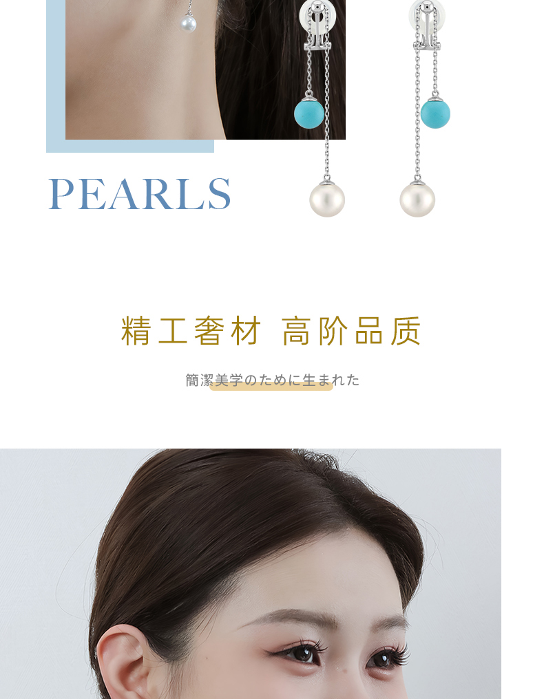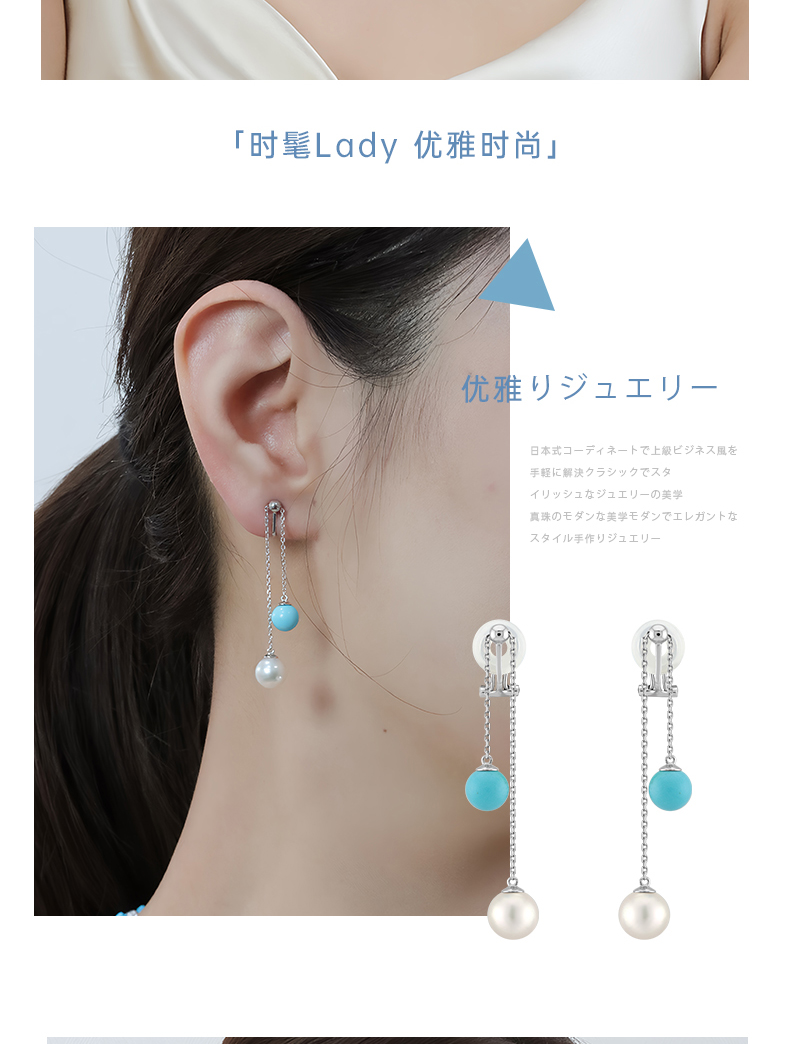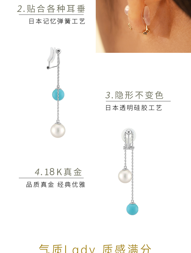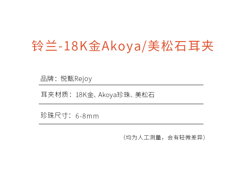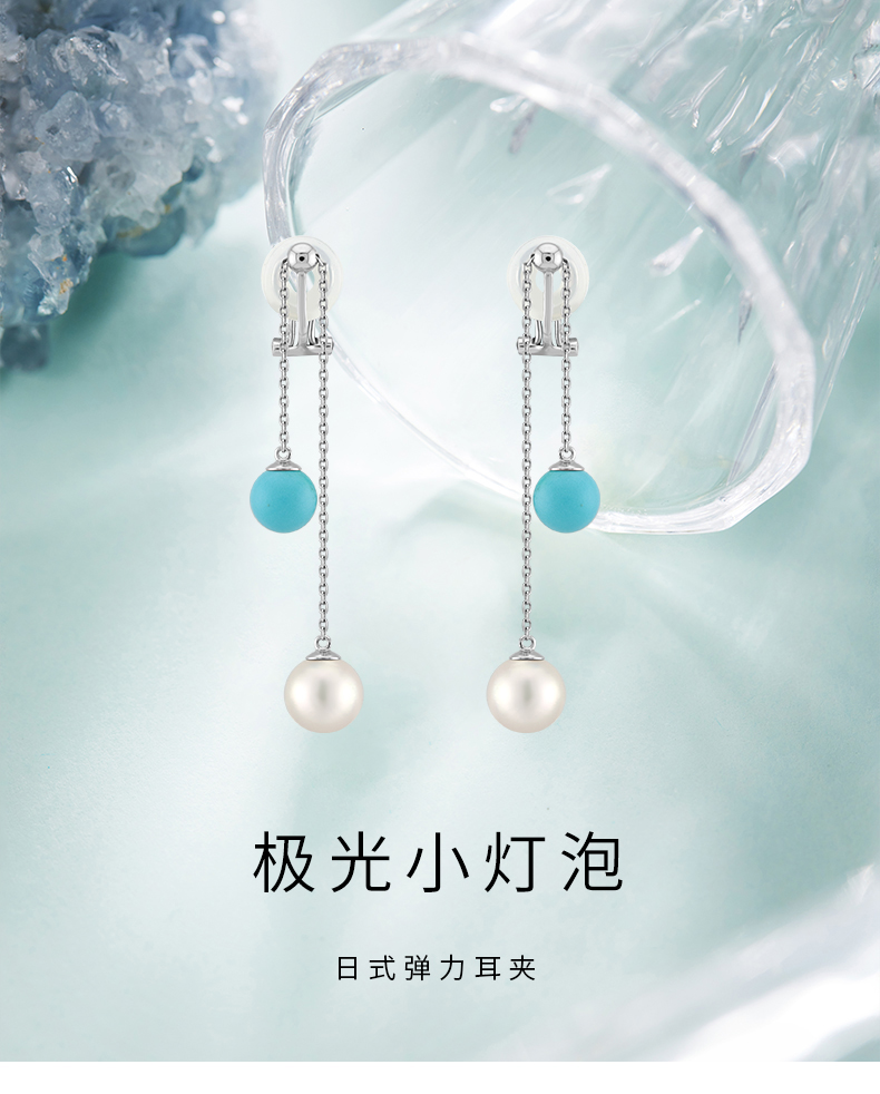 【天猫同款】铃兰-18K金akoya珍珠/美松石耳夹 6-8mm