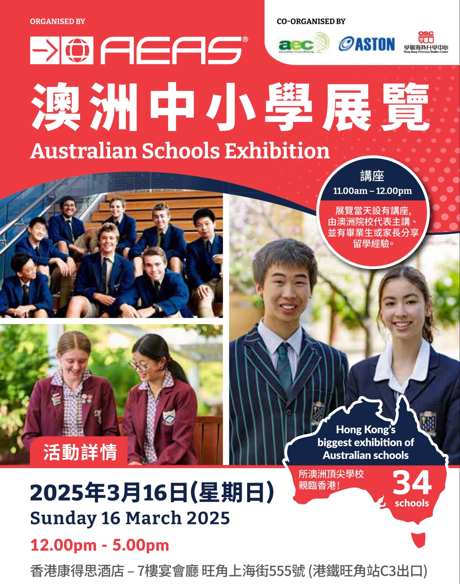 AEAS澳洲中小学展览🇦🇺,英伦云学香港公司Aston Education携手澳洲AEAS协会及34间澳大利亚中小学亲临香港举办!