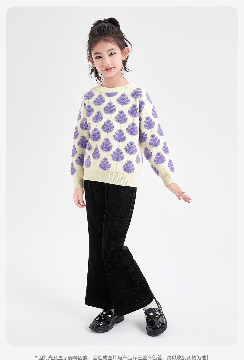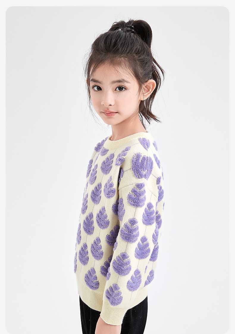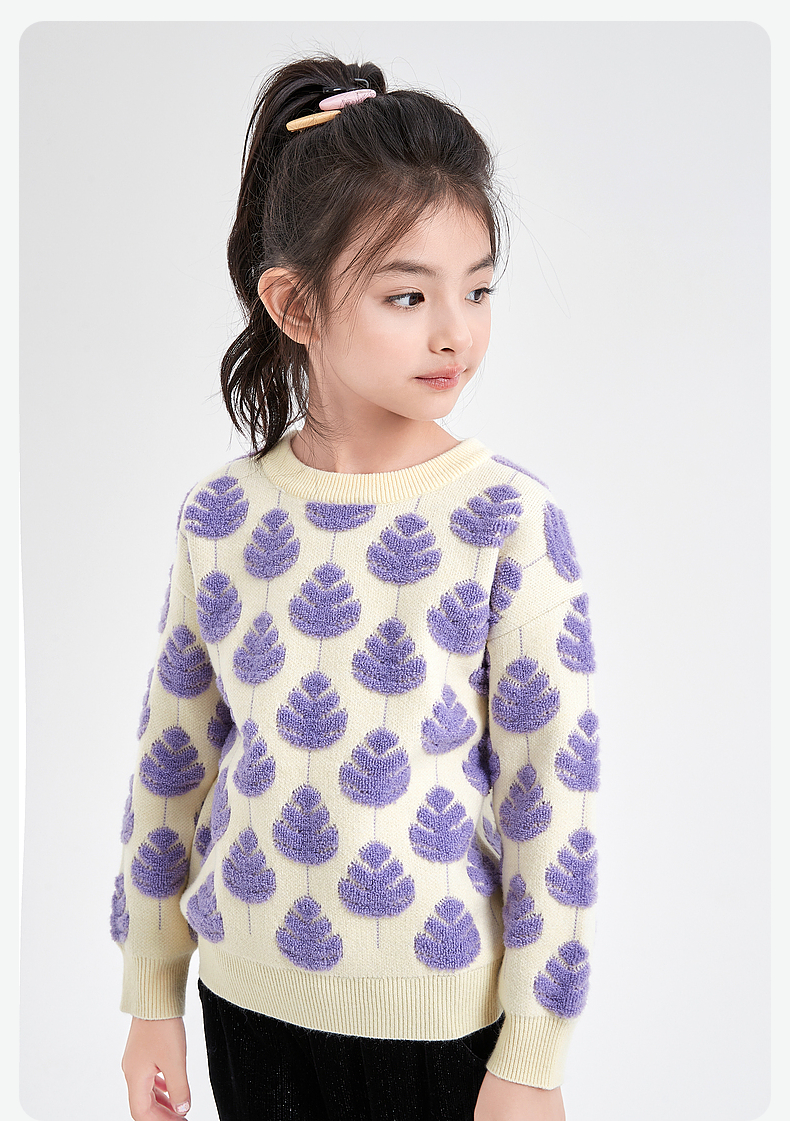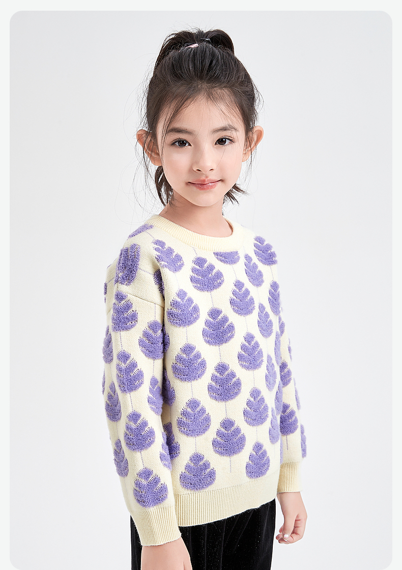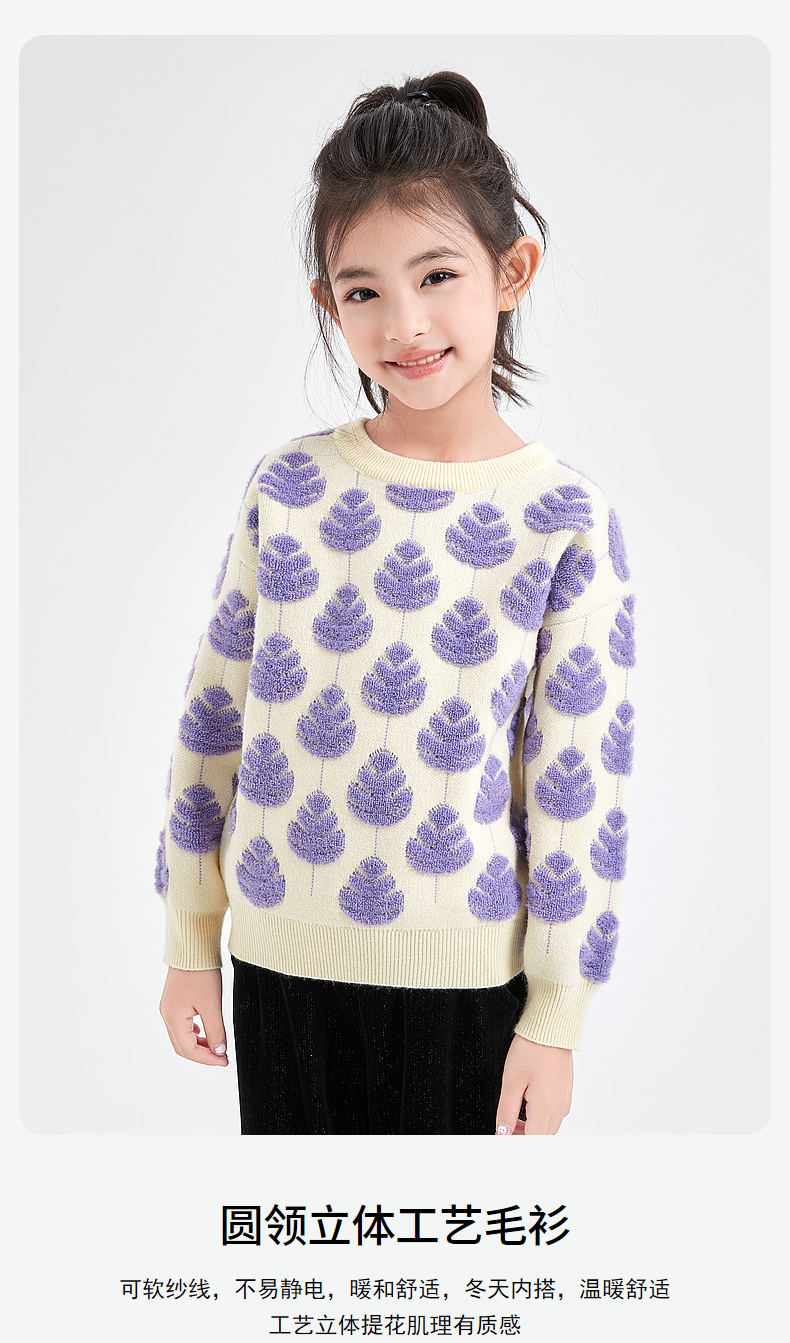 笛莎Deesha 童装女童针织衫2023冬新款圆领立体工艺毛衫