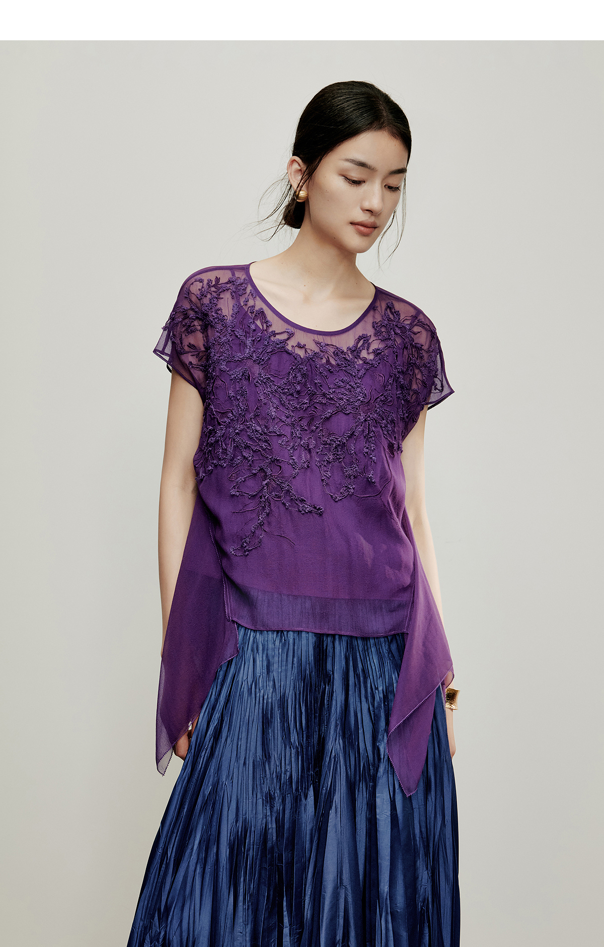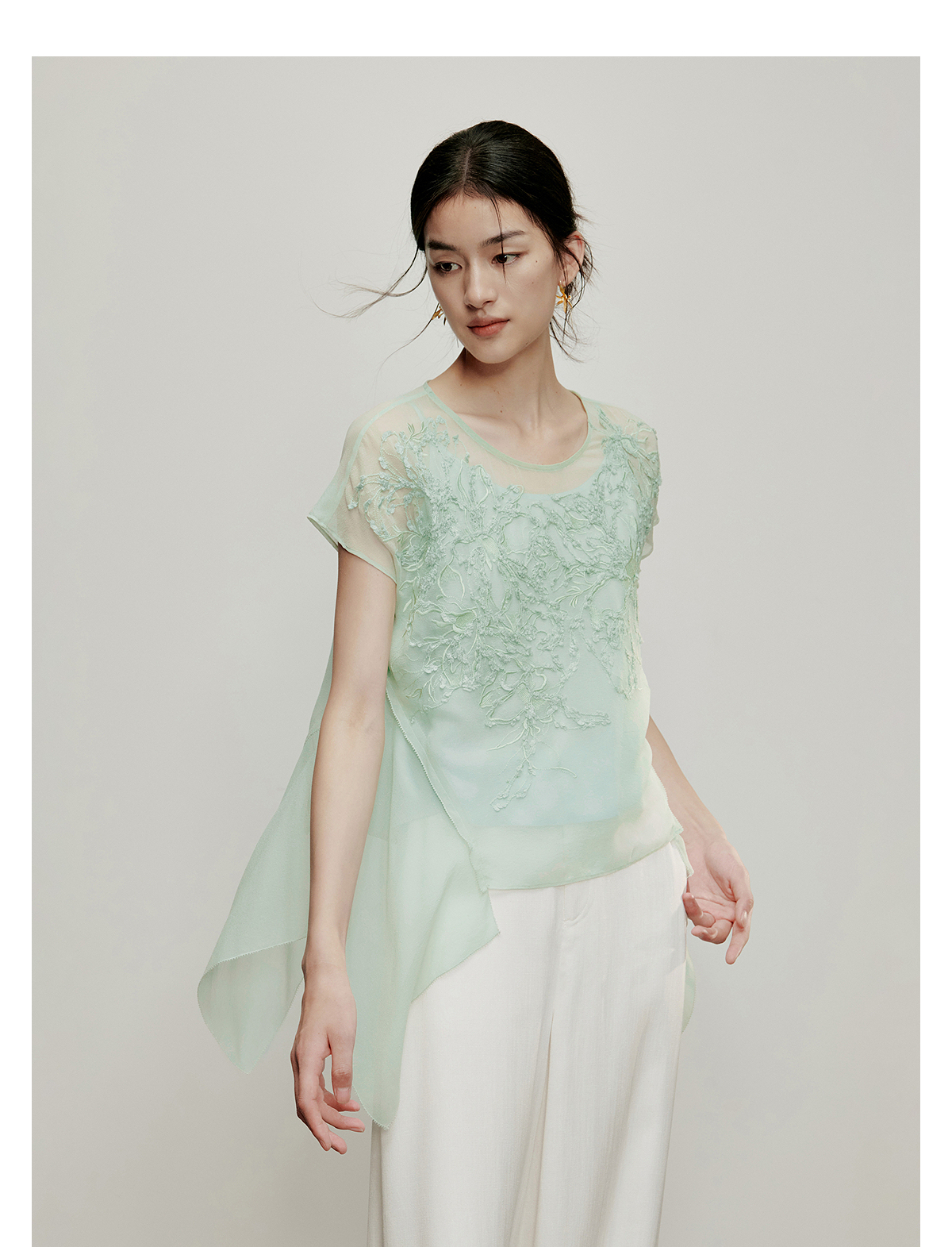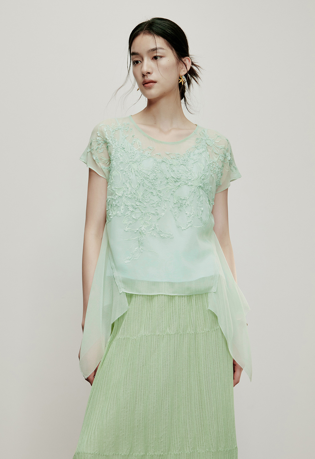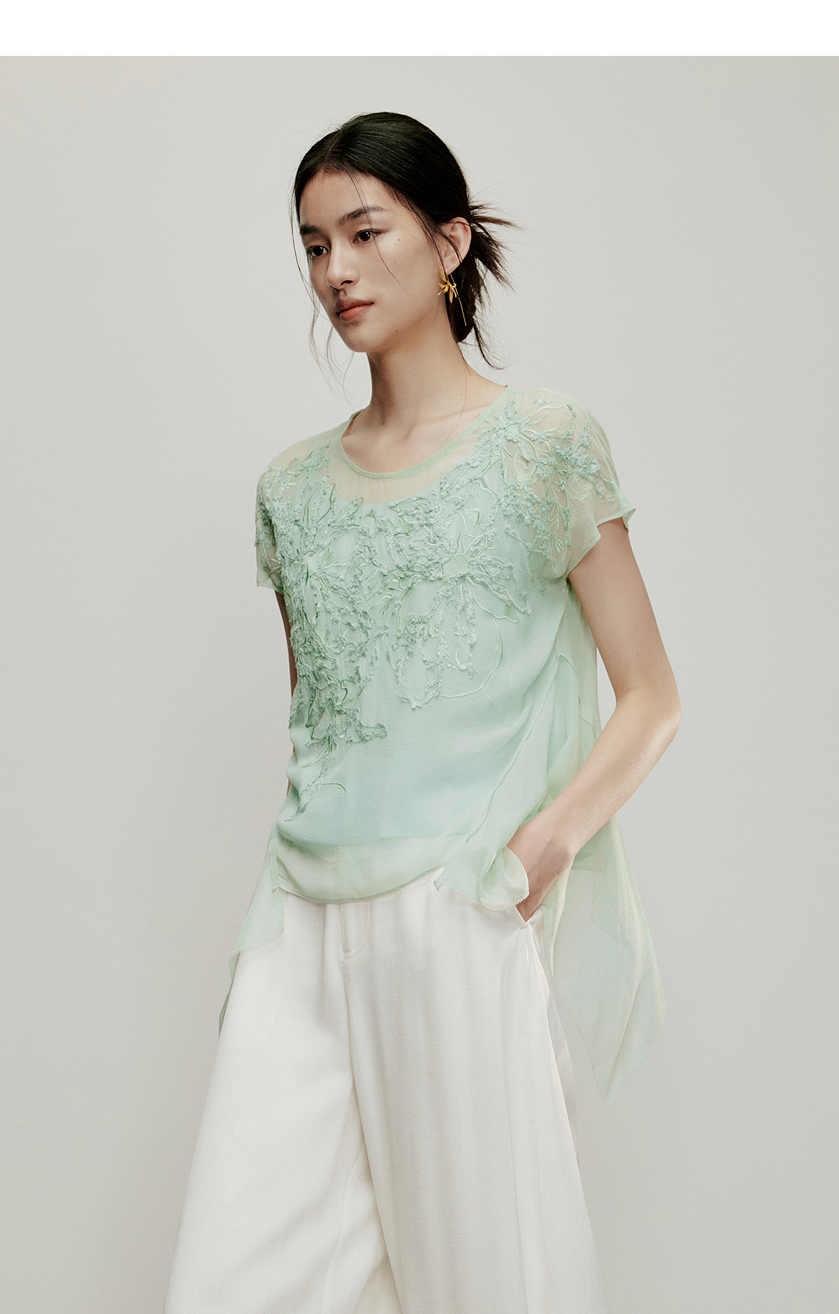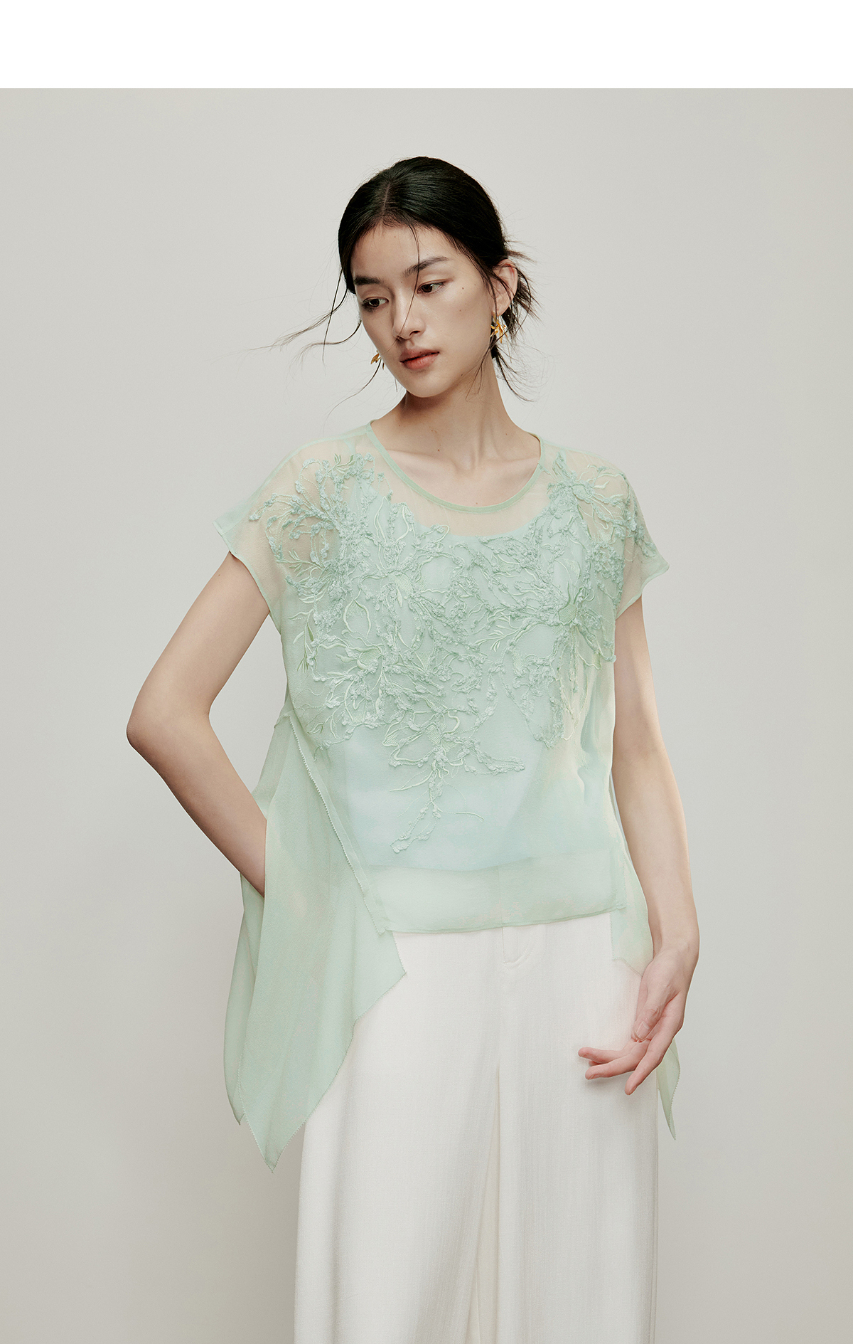 【林栖设计小店】拥花入怀|百搭多色优雅盘绳绣2026夏新款真丝衫两件套1962153