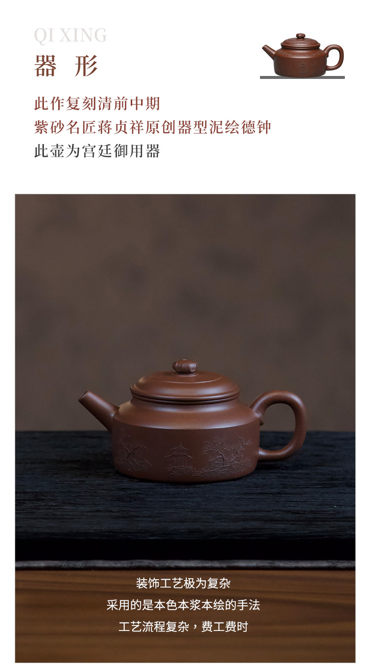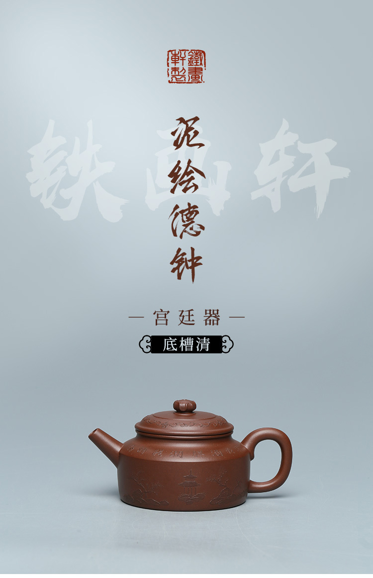 百年紫砂品牌铁画轩出品 底槽清 泥绘德钟 宫廷器紫砂壶160ml