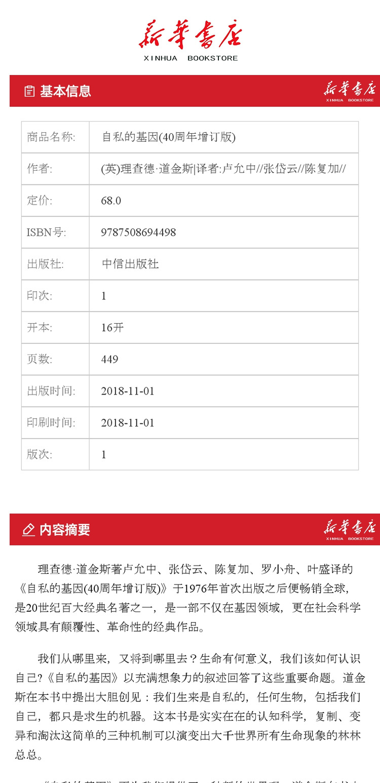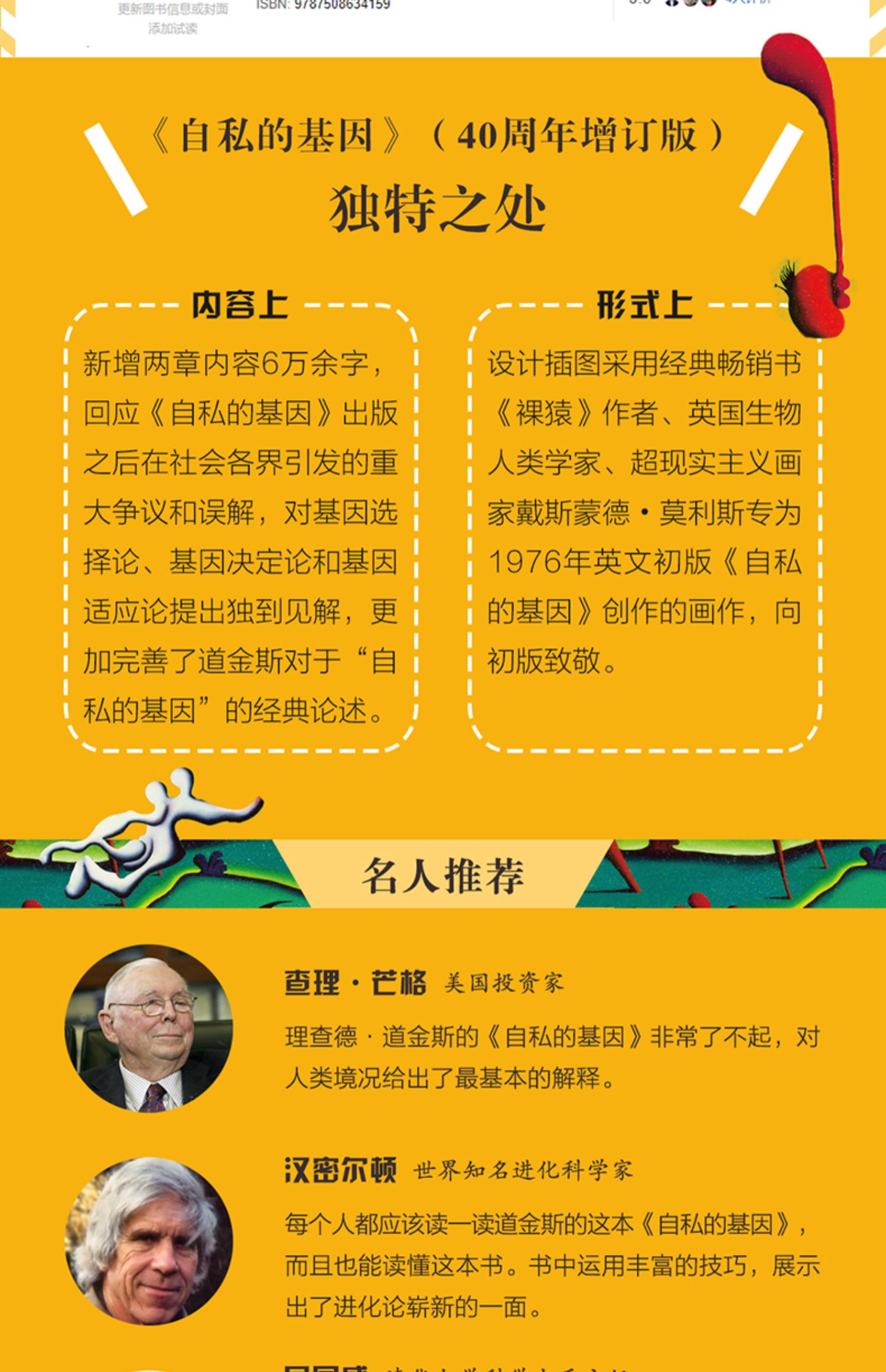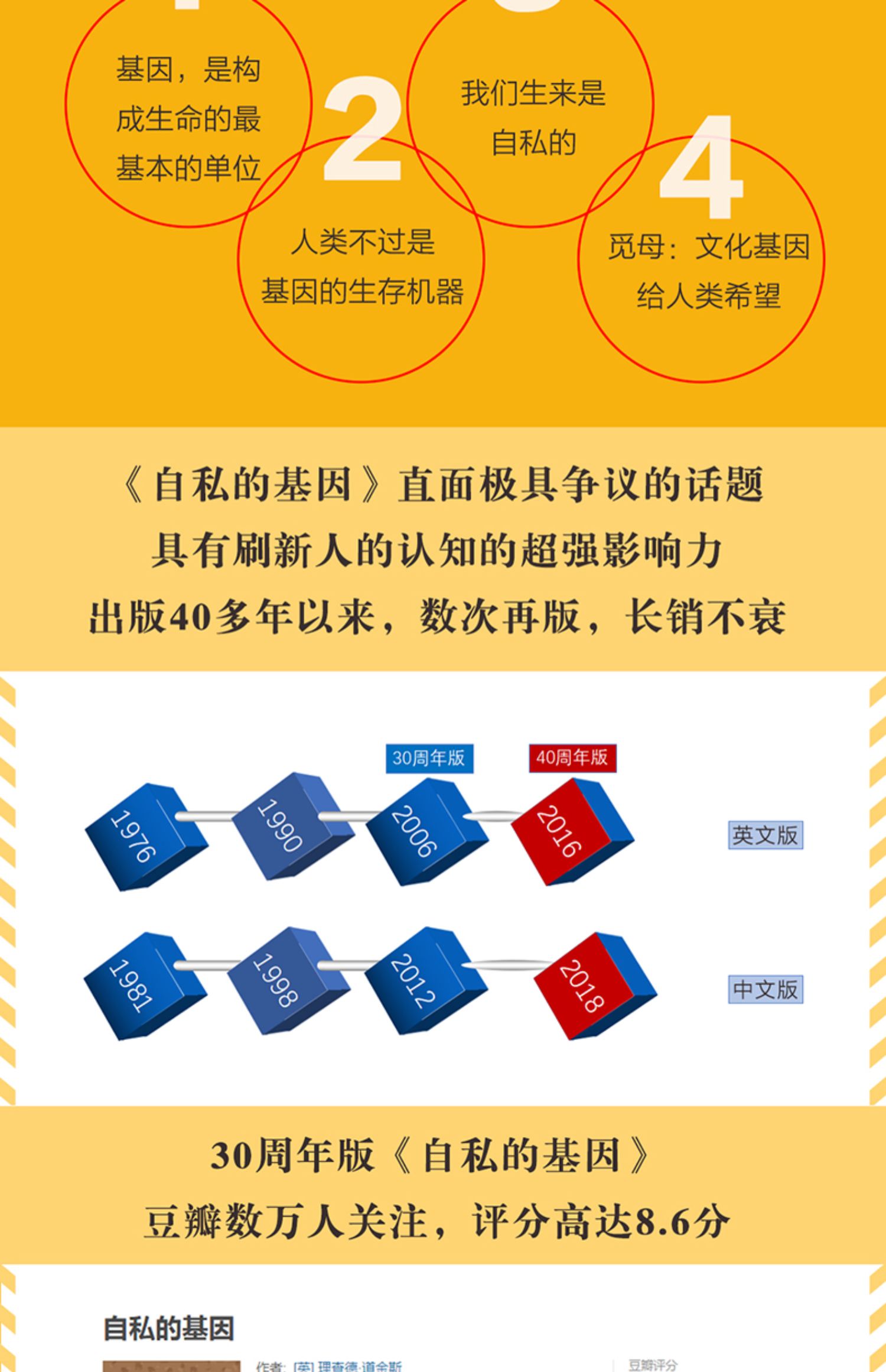 正版现货 自私的基因40周年增订版 理查德道金斯 颠覆你的世界观阿北财富灵性法则进化心理学畅销书排行榜